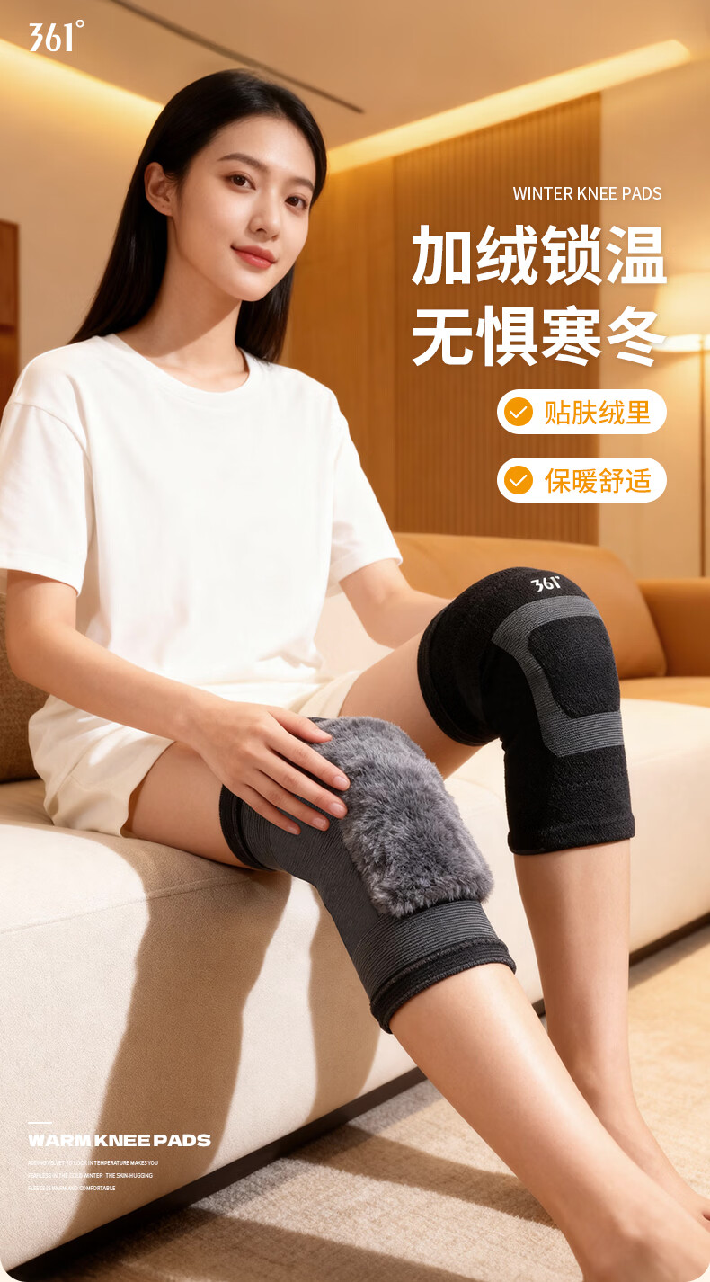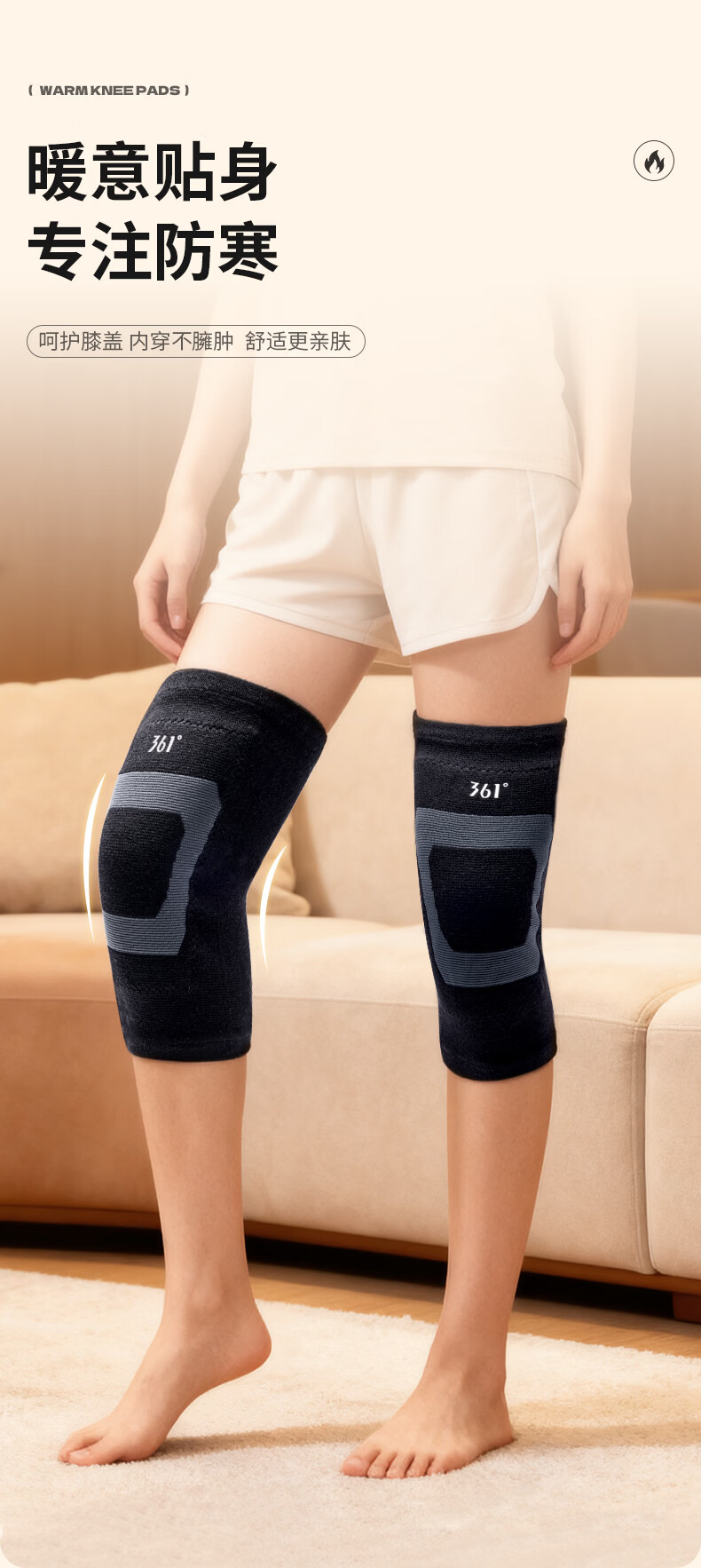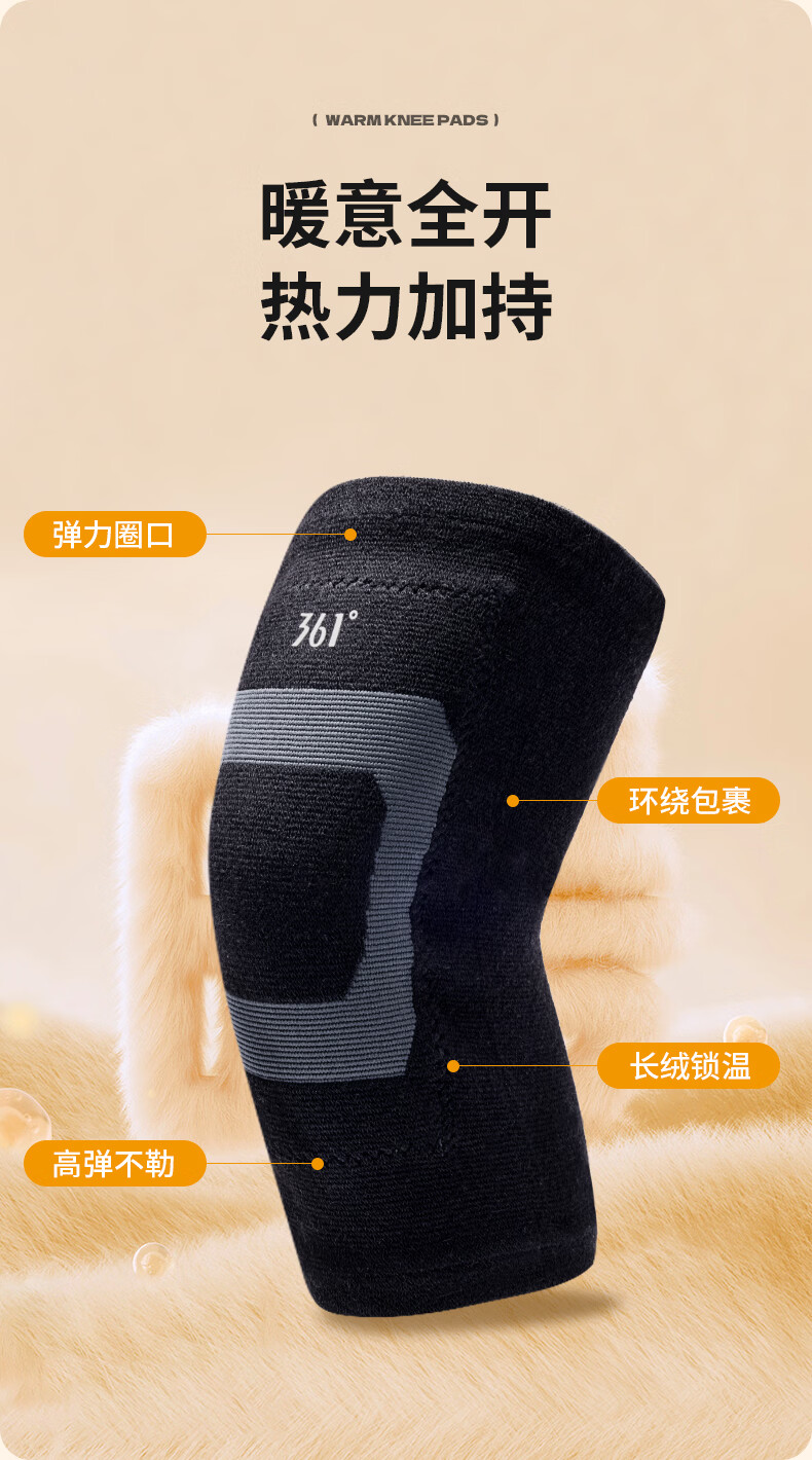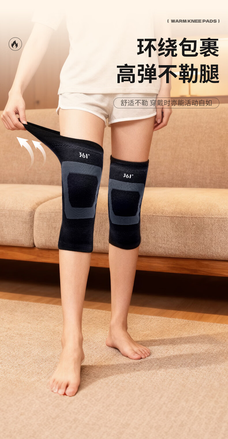 361°护膝保暖老寒腿关节炎发热秋冬加绒加厚骑车防风男女防寒护膝 黑色 S码(适合70-100斤)2只装
