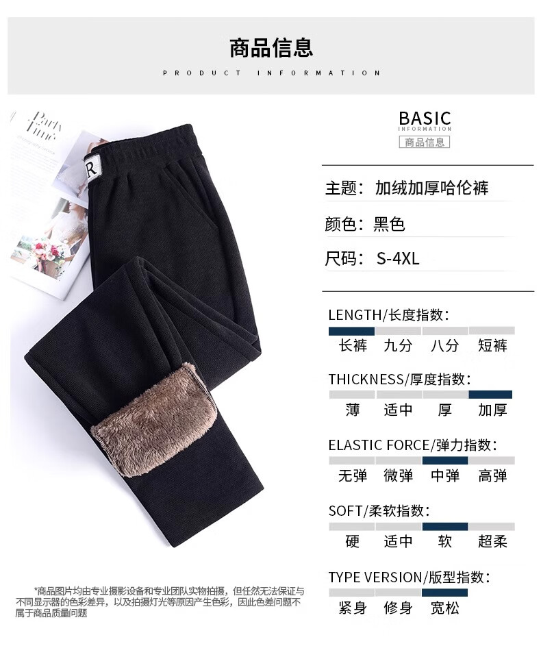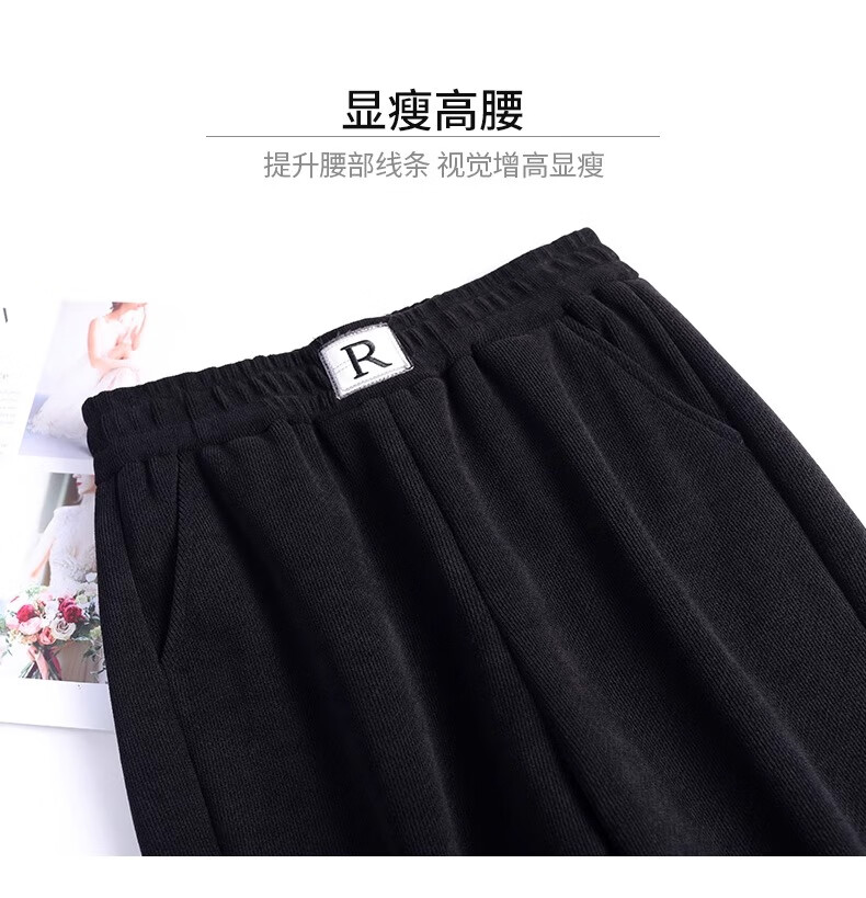 浪莎加绒休闲裤女秋冬宽松型显瘦束脚卫裤外穿百搭抽绳阔腿保暖运动裤 黑色侧边双线-加绒 L (111-120斤)