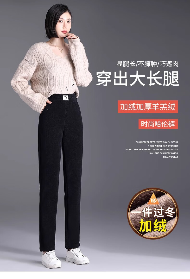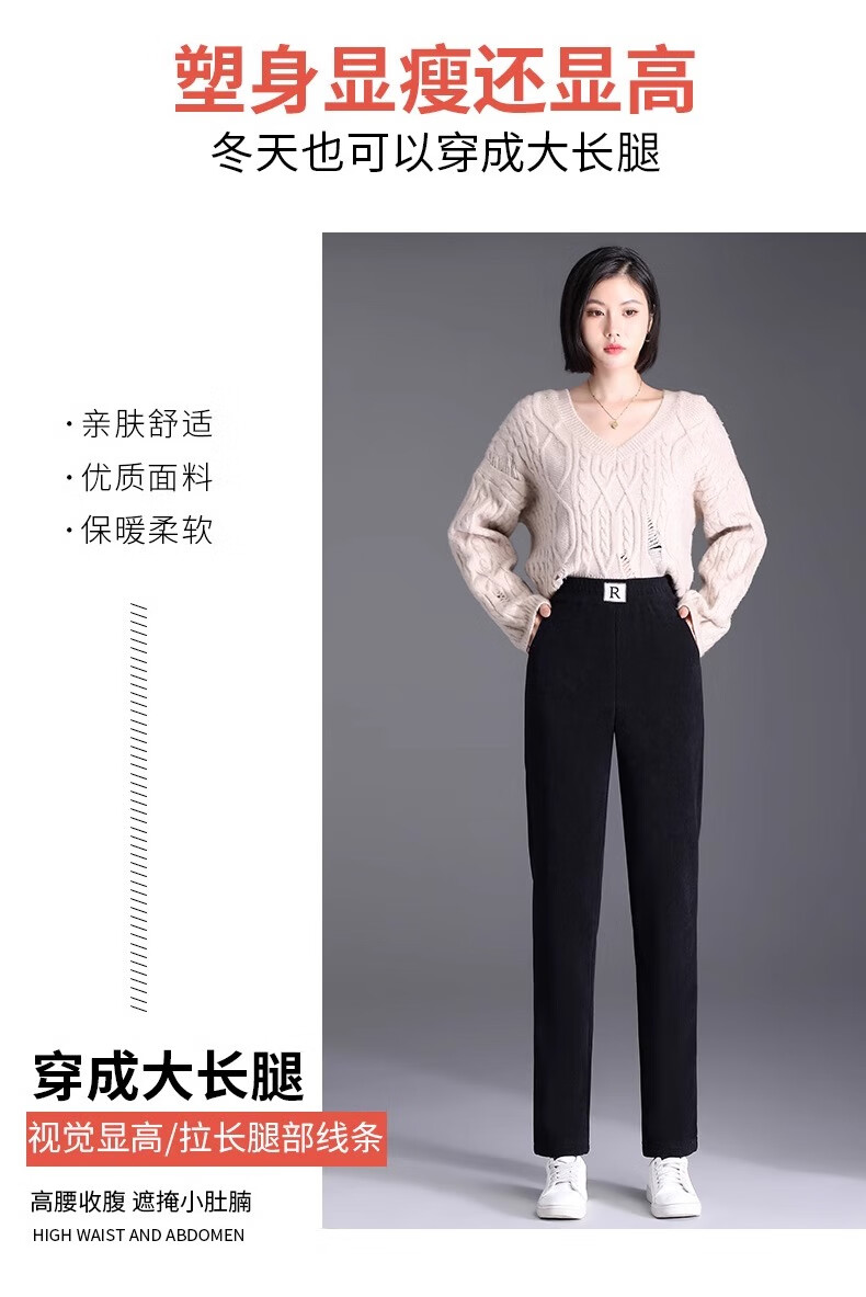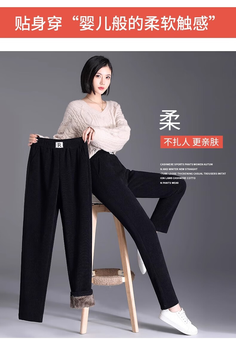 浪莎加绒裤女棉裤外穿2025冬季加厚灯芯绒妈妈裤直筒雪尼尔防风保暖裤 黑色【超厚北极一体绒】 2XL 【105-120斤】