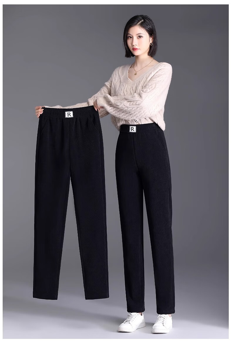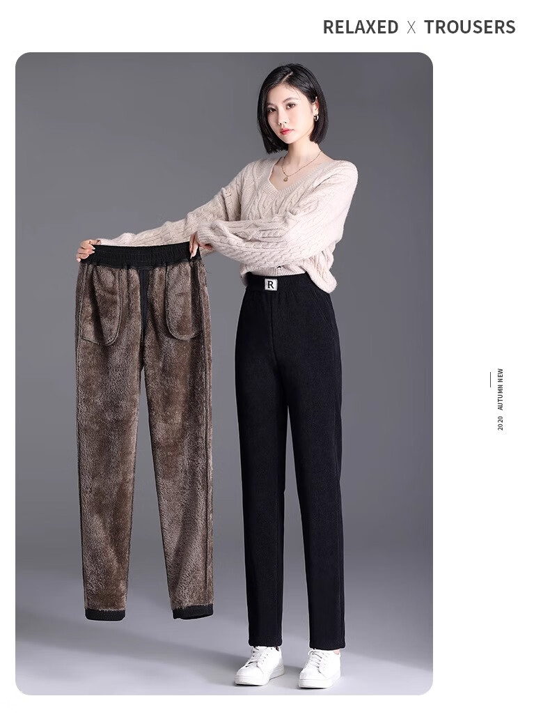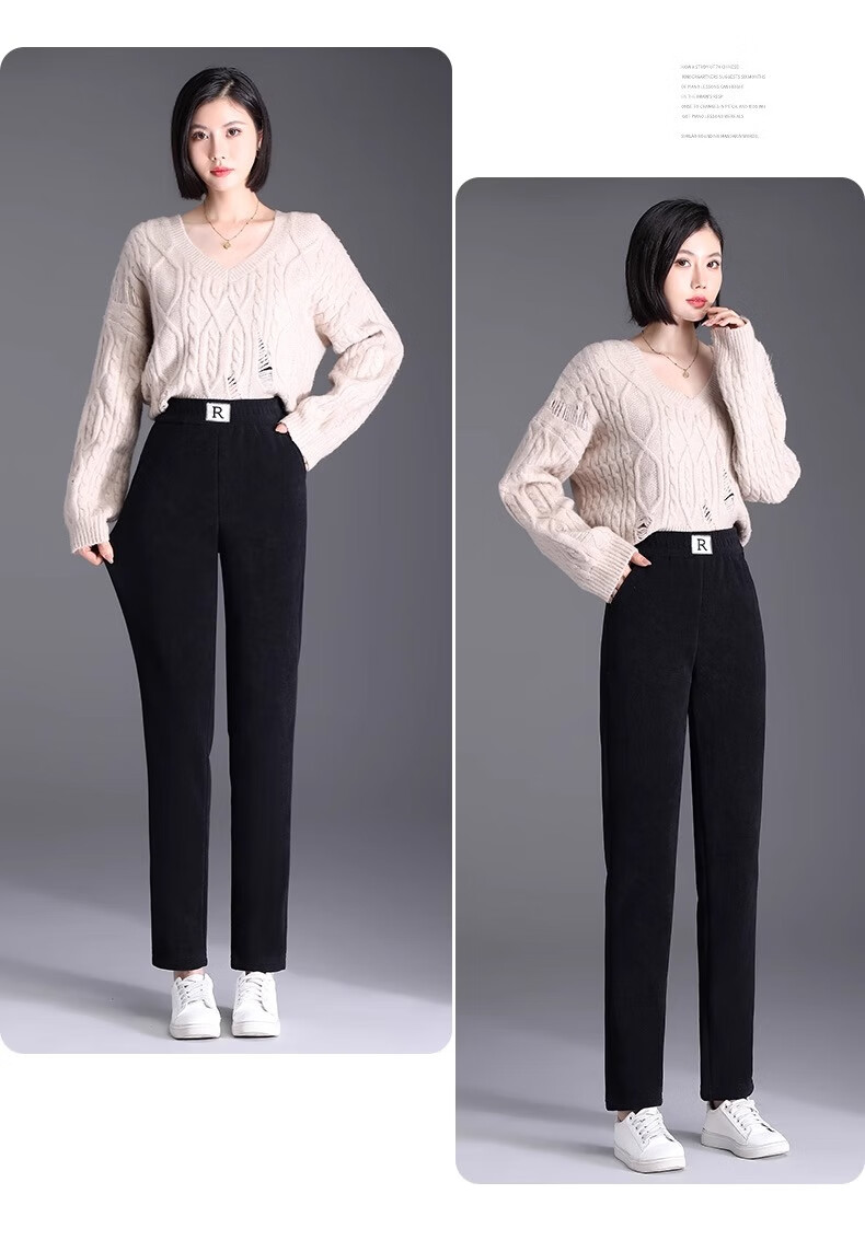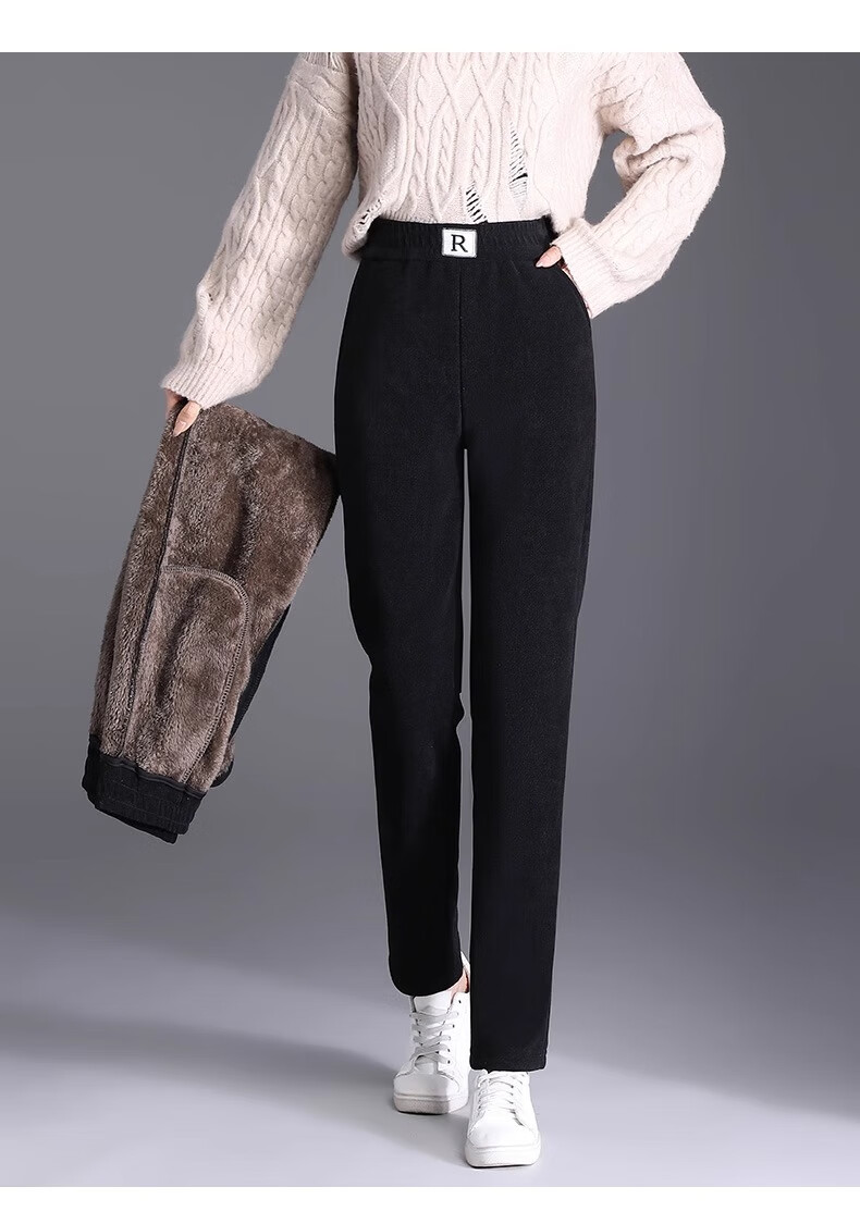 浪莎加绒裤女棉裤外穿2025冬季加厚灯芯绒妈妈裤直筒雪尼尔防风保暖裤 黑色【超厚北极一体绒】 2XL 【105-120斤】