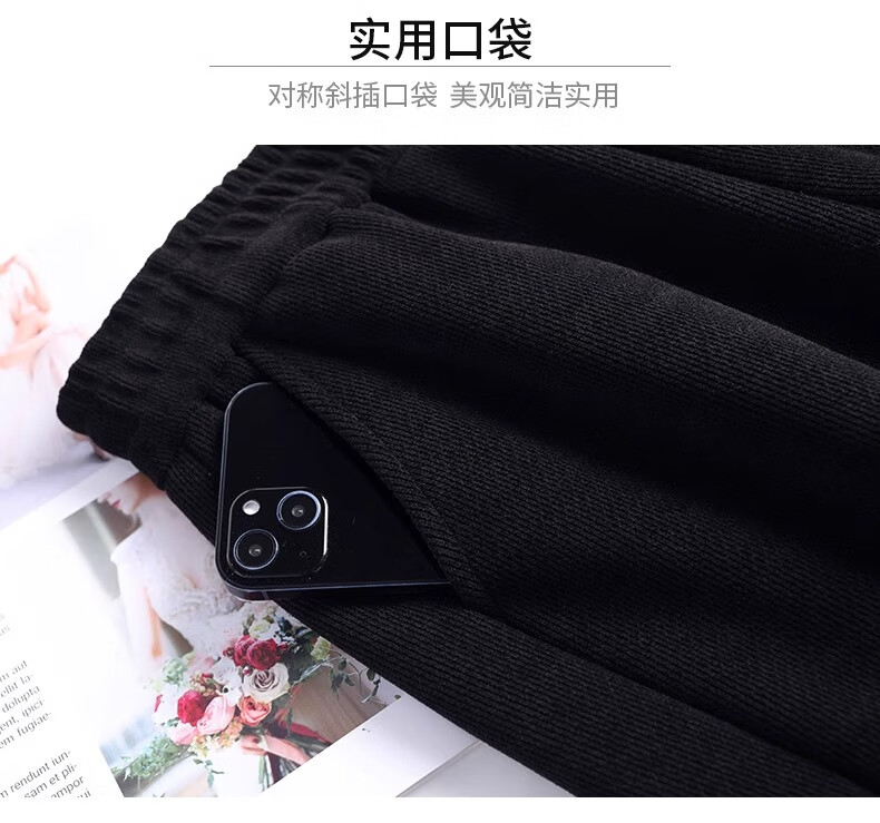 浪莎(LangSha)加绒休闲裤女2025冬季新款保暖高腰垂感欧棉绒百搭显瘦休闲阔腿裤 【加绒】黑色 L 116-130斤