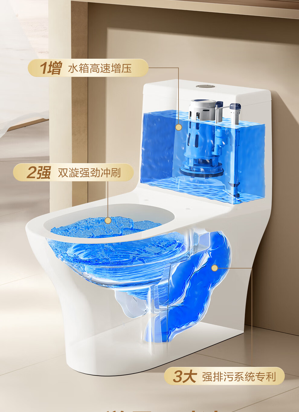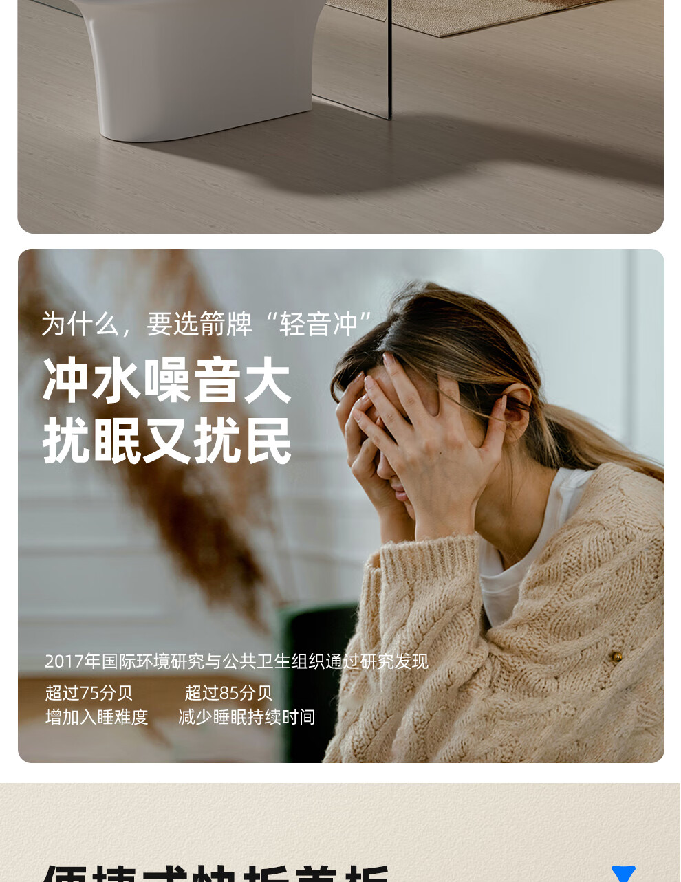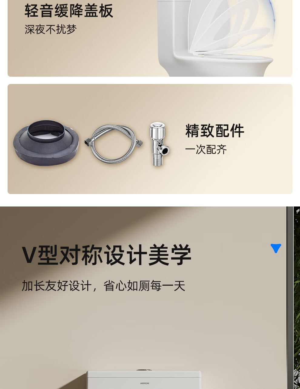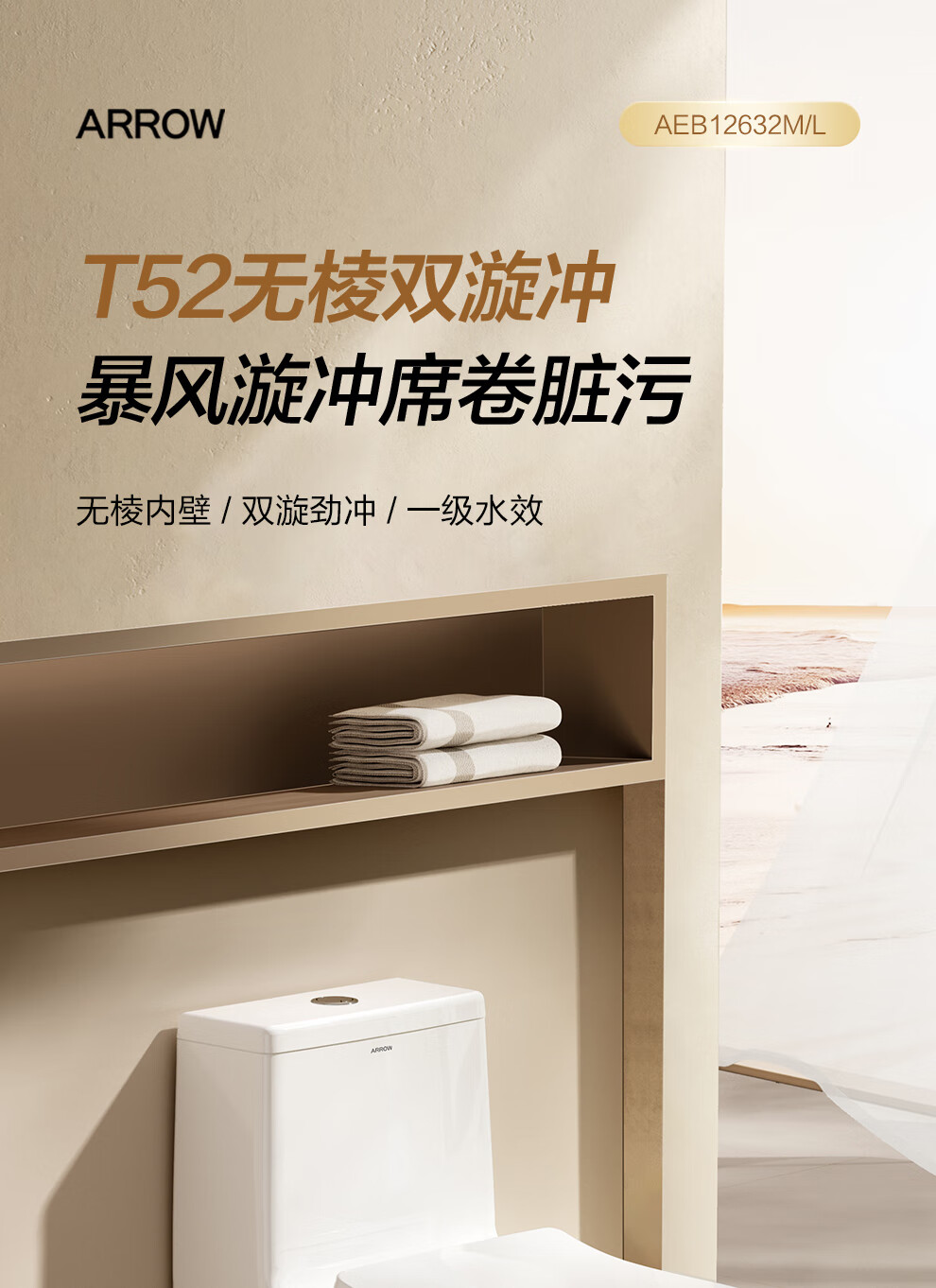 箭牌(ARROW)抽水马桶虹吸坐便器节水防臭双旋暴风冲刷大冲力大管径家用马桶 【轻音款】大管径大冲力1205U 305/300mm