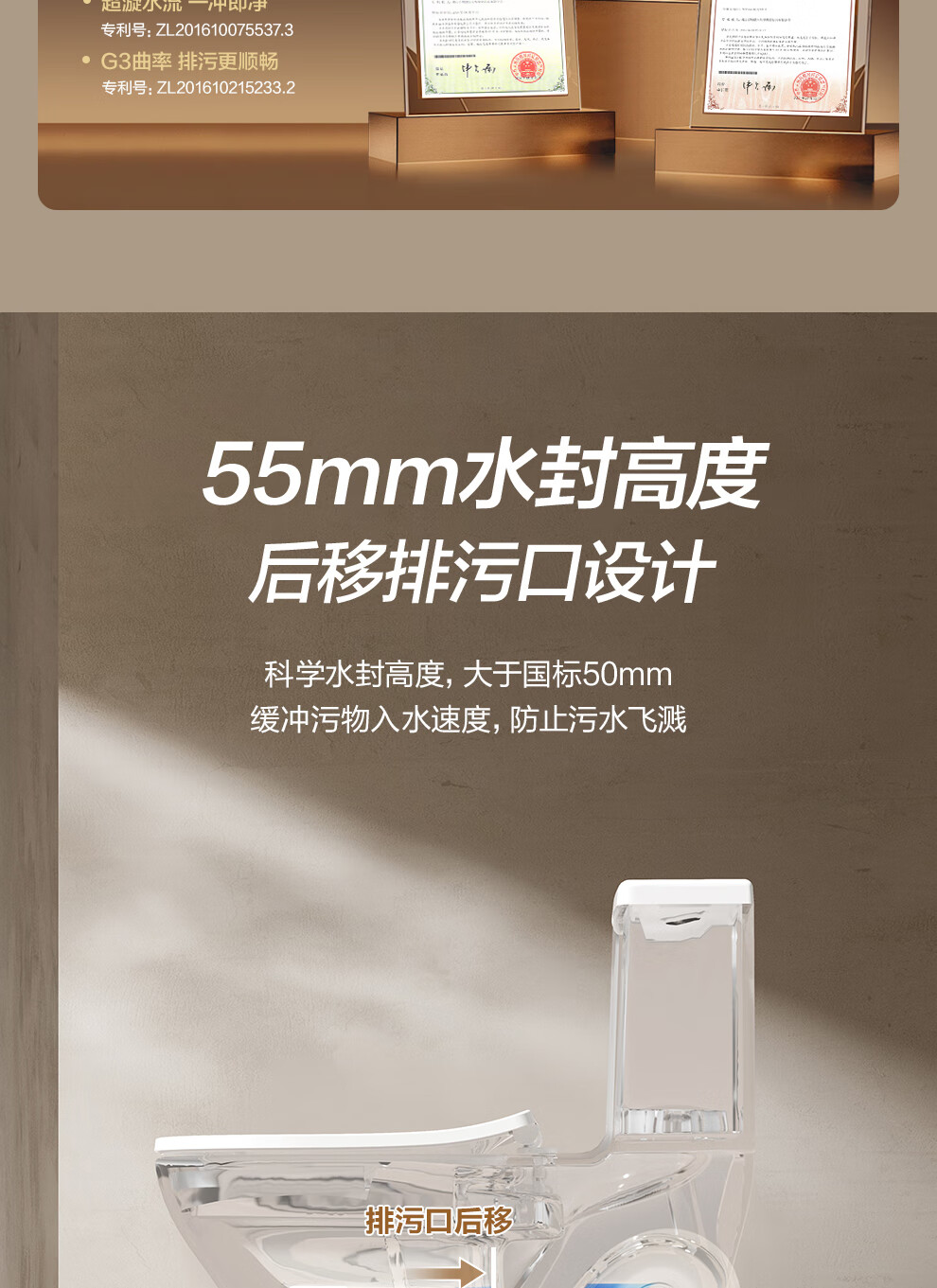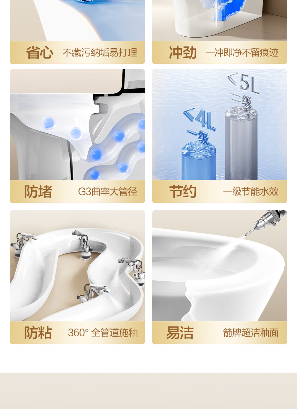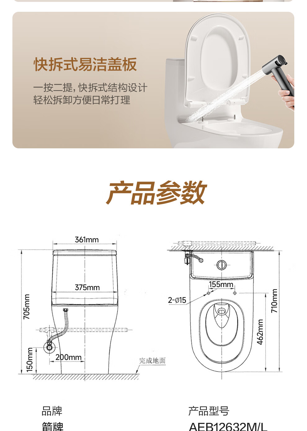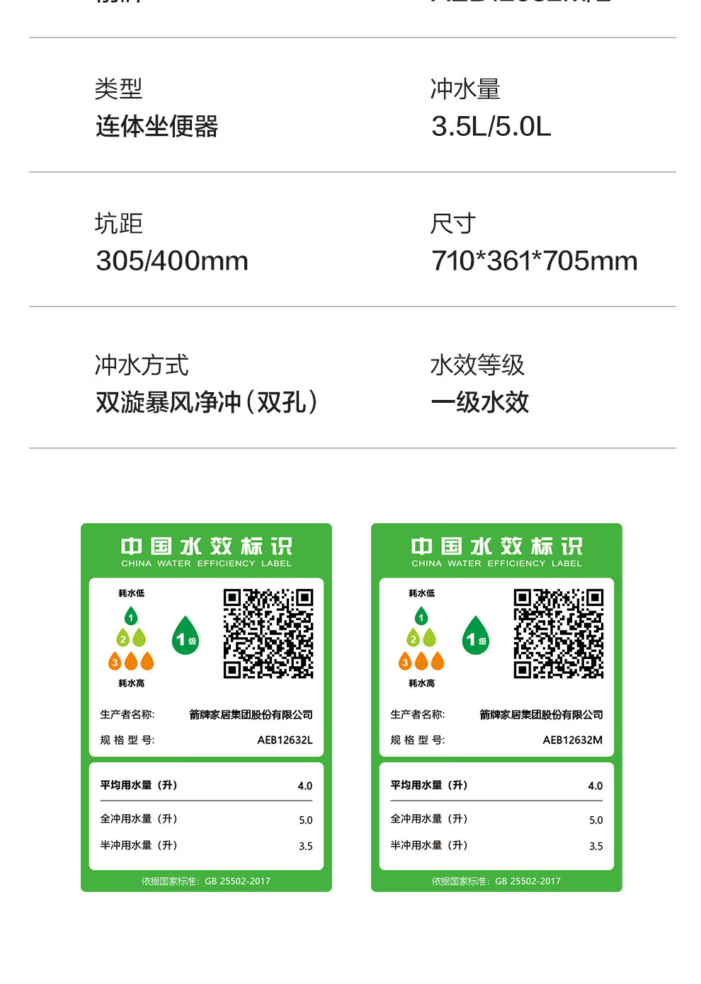 箭牌(ARROW)抽水马桶虹吸坐便器节水防臭双旋暴风冲刷大冲力大管径家用马桶 【轻音款】大管径大冲力1205U 305/300mm