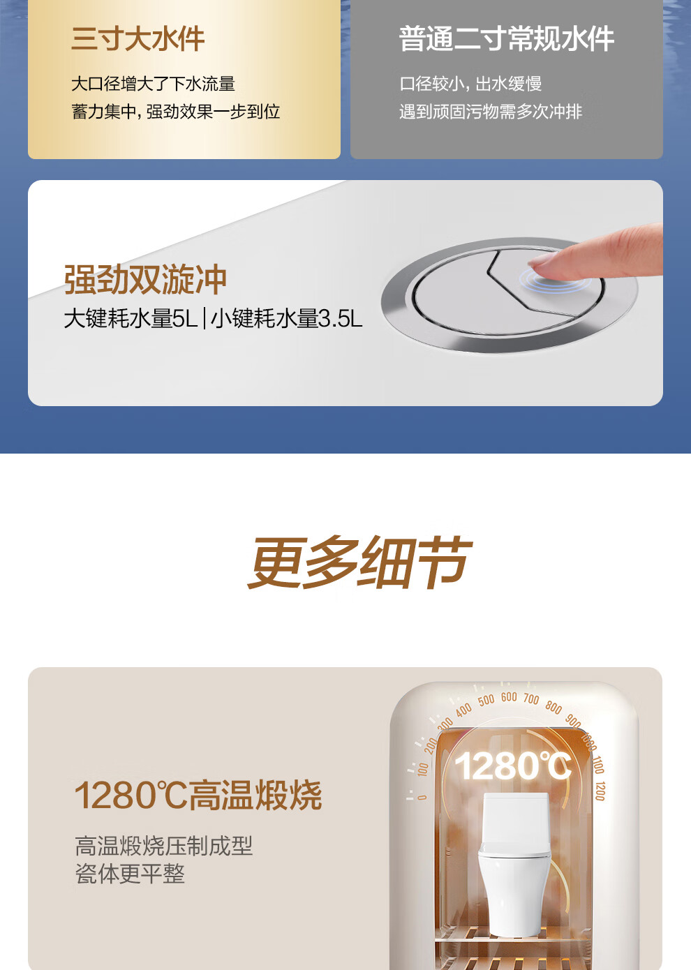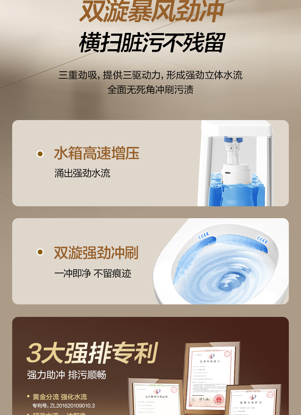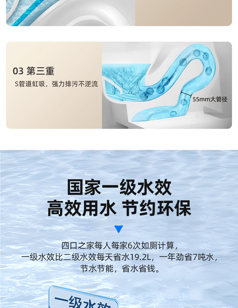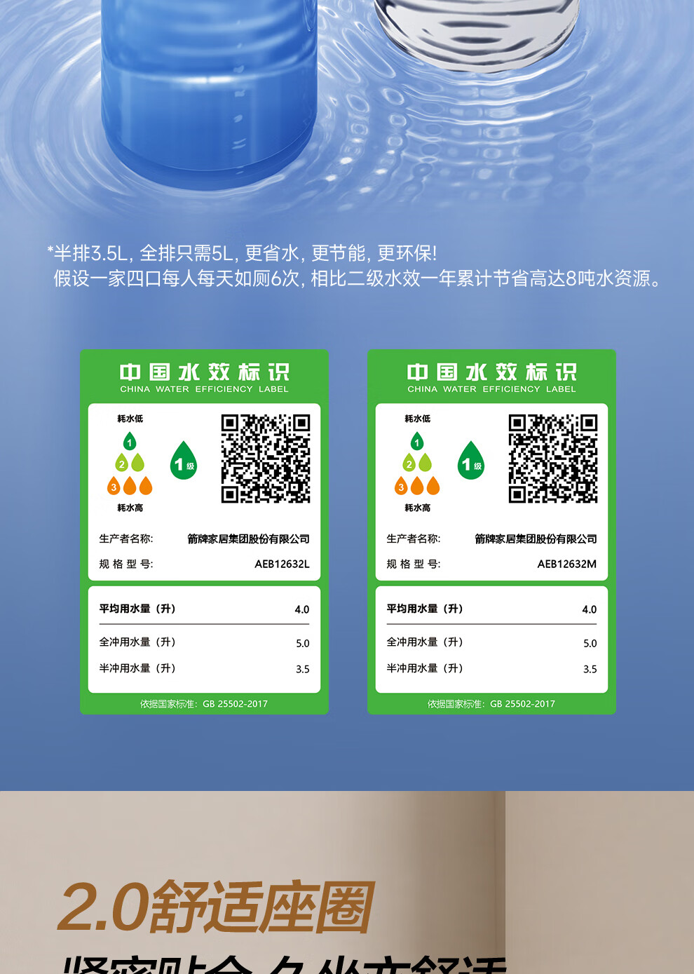 箭牌(ARROW)抽水马桶虹吸坐便器节水防臭双旋暴风冲刷大冲力大管径家用马桶 【轻音款】大管径大冲力1205U 305/300mm