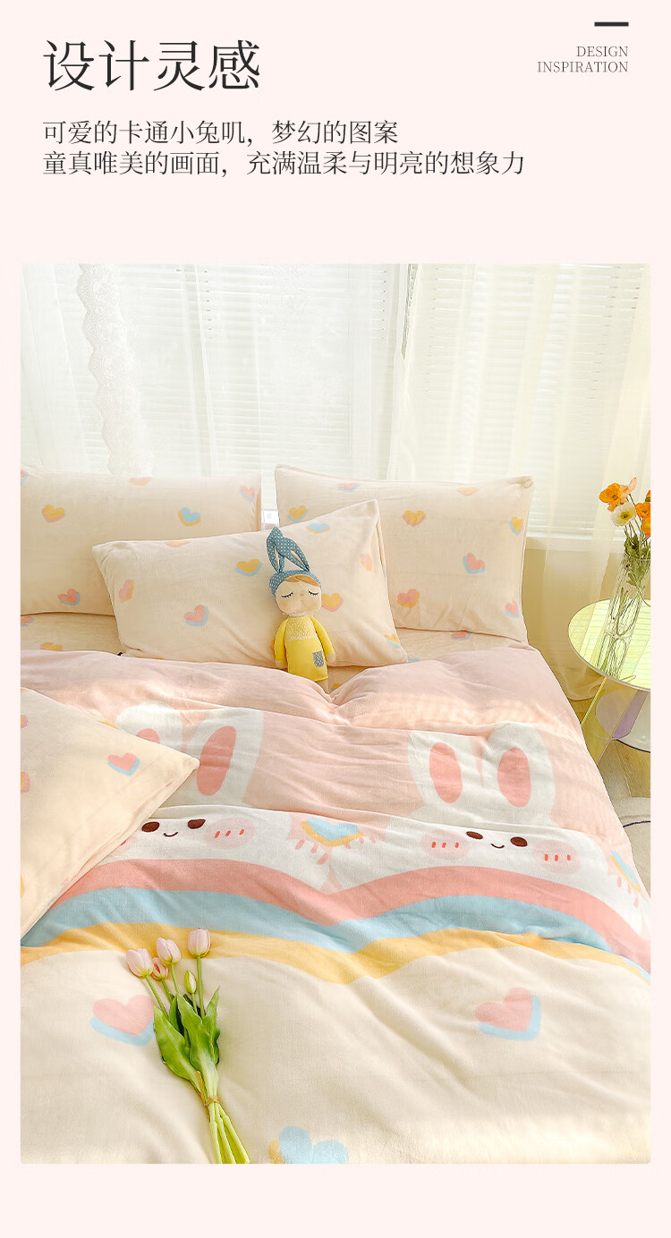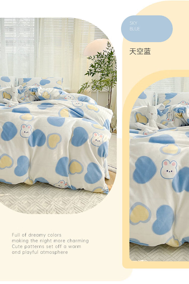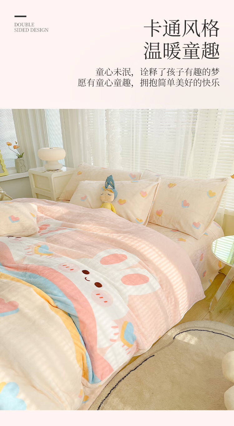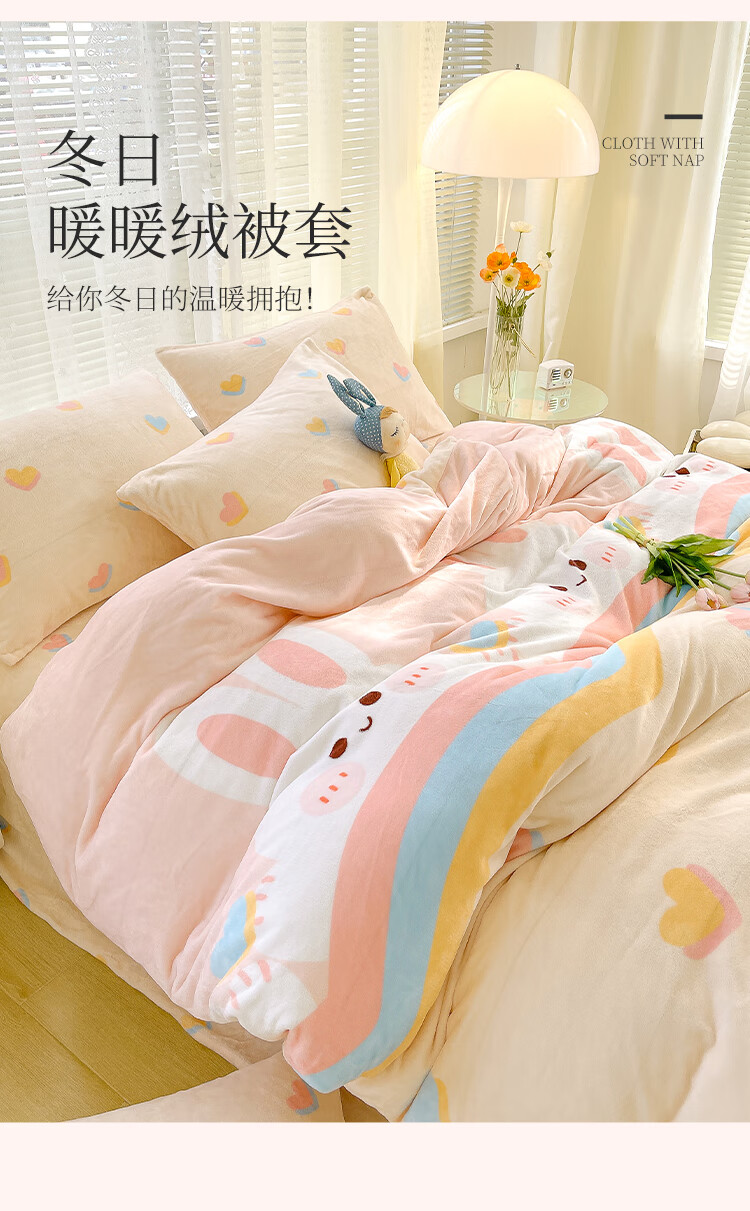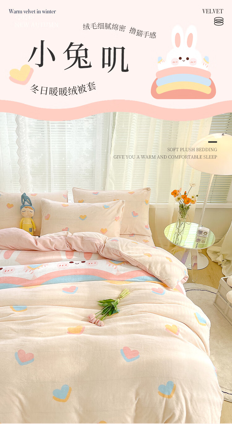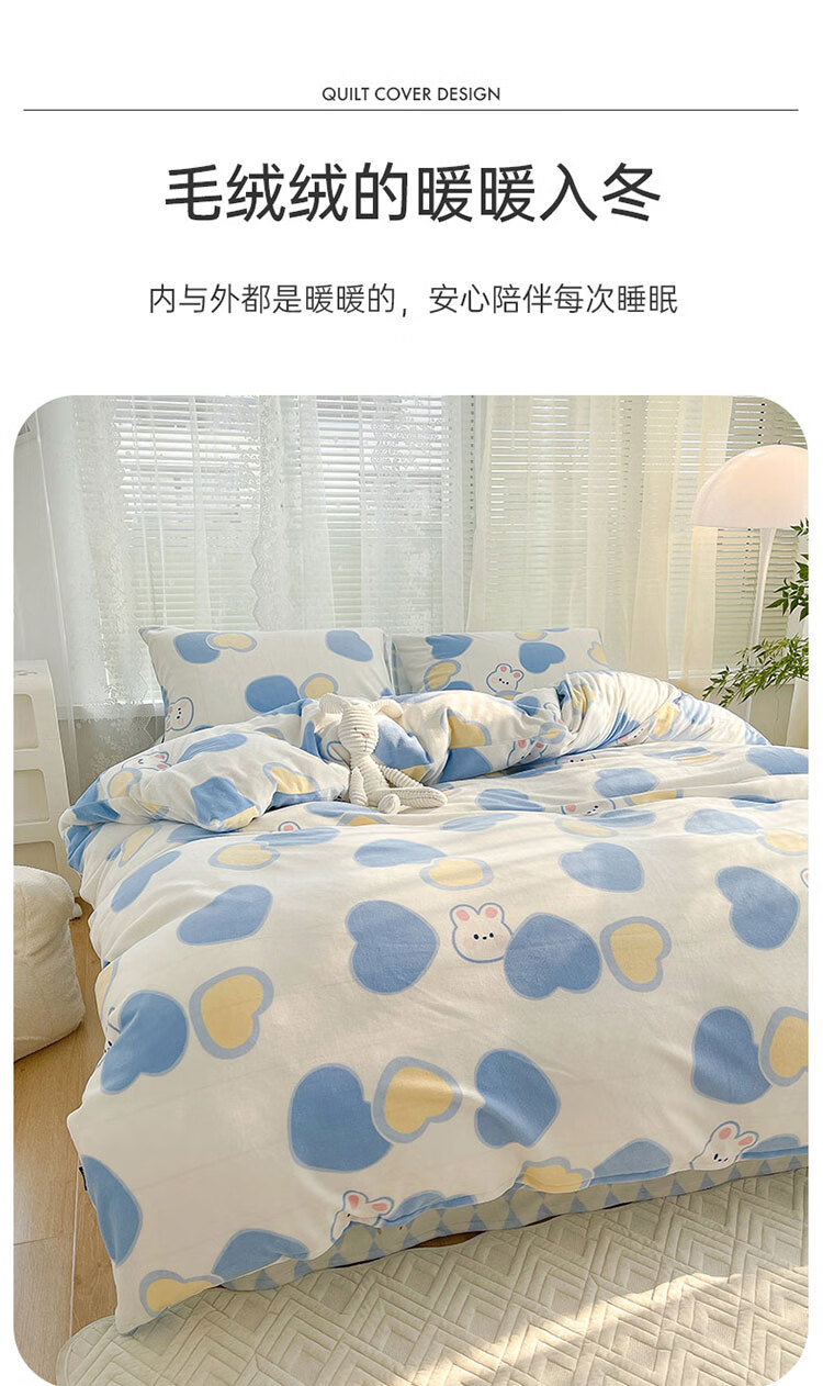 多喜爱家纺牛奶绒被套 单件法兰绒被套秋冬加厚被套学生宿舍单件绒被罩 小兔叽绒被套 1.2米床 152cm*218cm