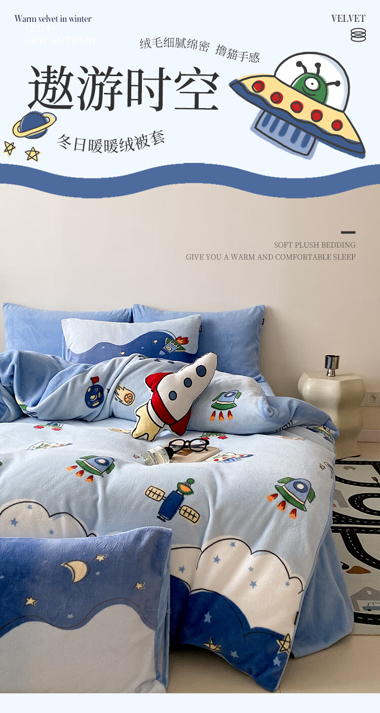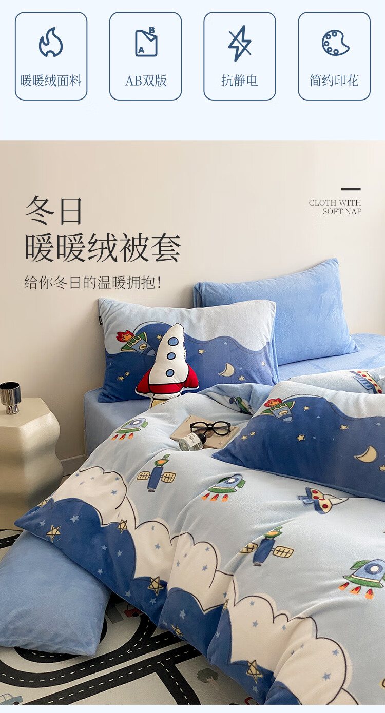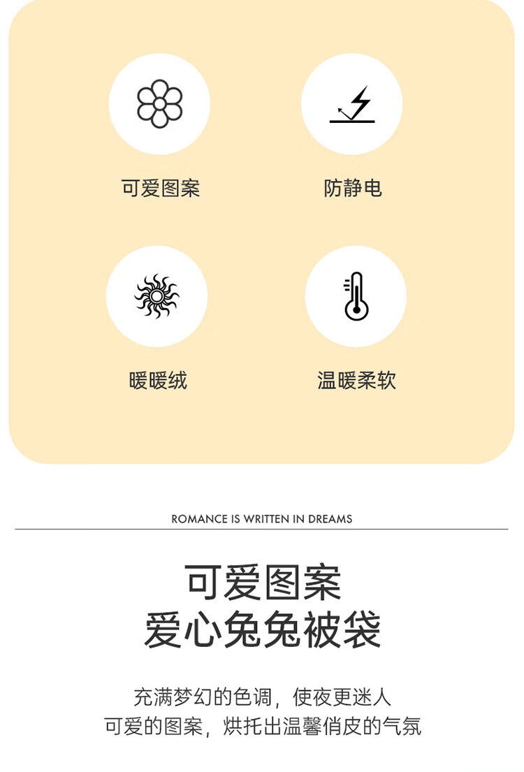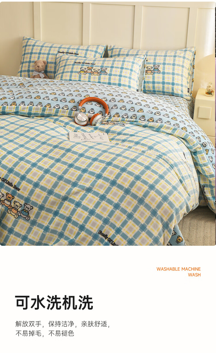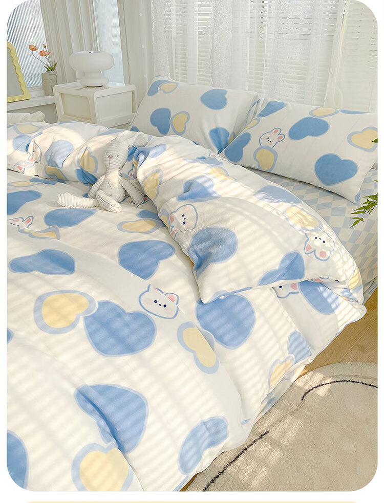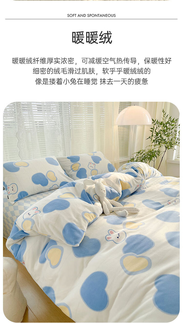 多喜爱家纺牛奶绒被套 单件法兰绒被套秋冬加厚被套学生宿舍单件绒被罩 小兔叽绒被套 1.2米床 152cm*218cm