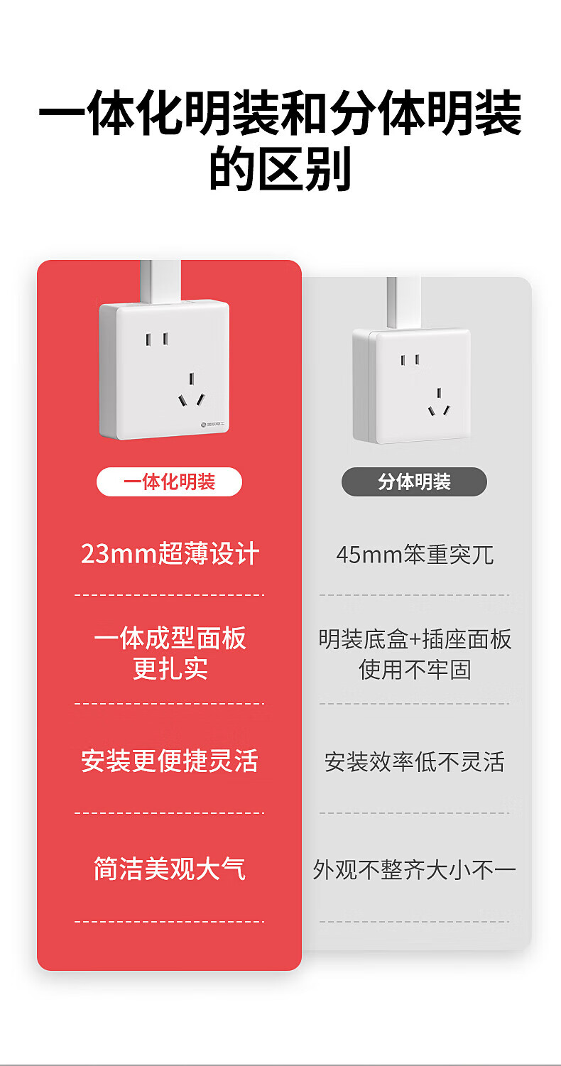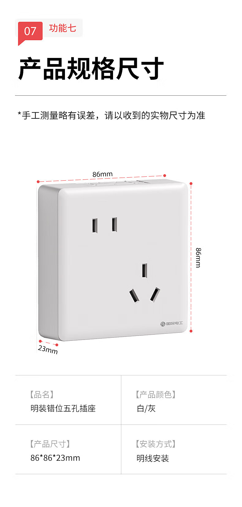 国际电工明装超薄错位五孔面板家用墙壁明线空调斜5孔16A三孔热水器插座 【明装带底盒】白色 错位五孔16A带开关