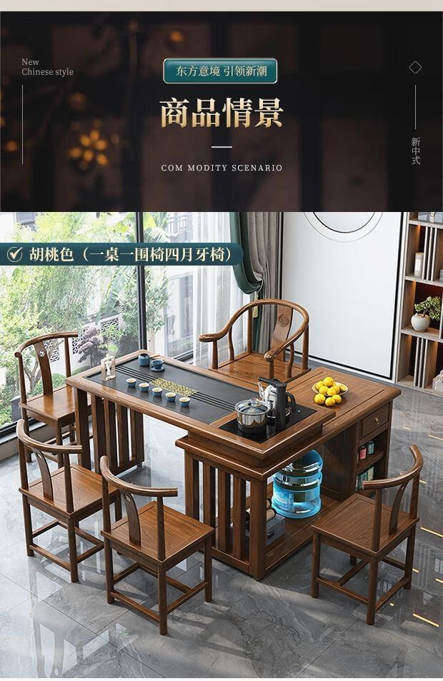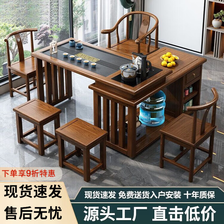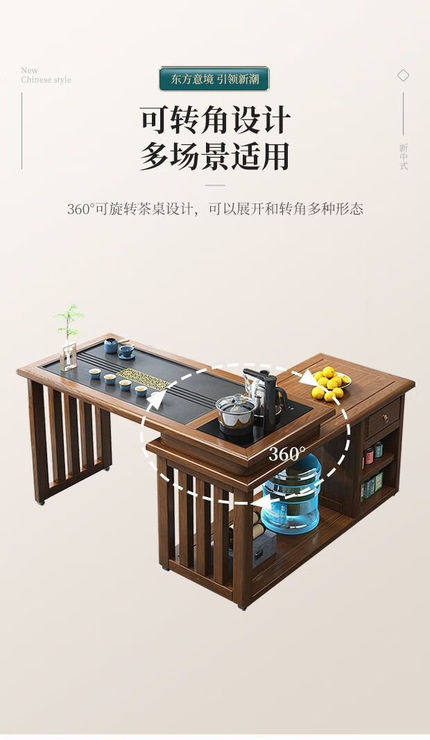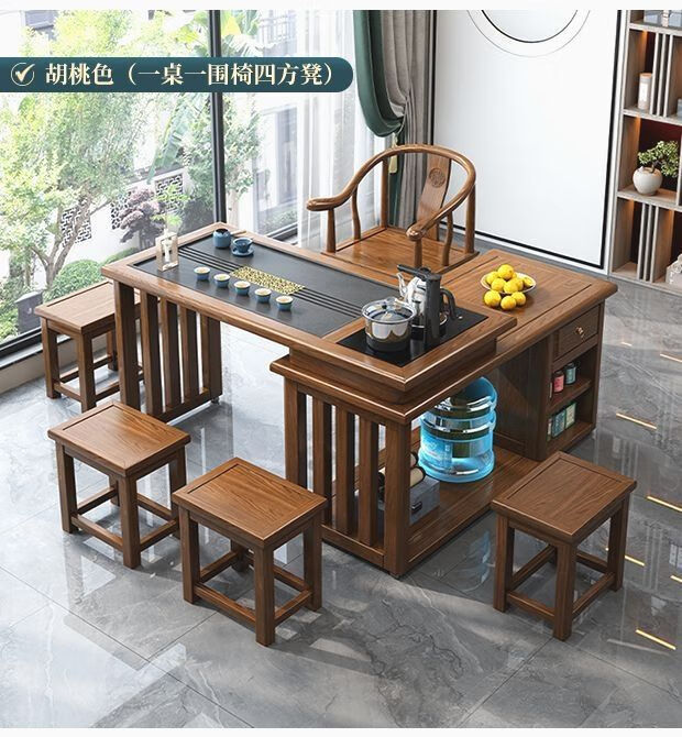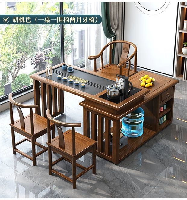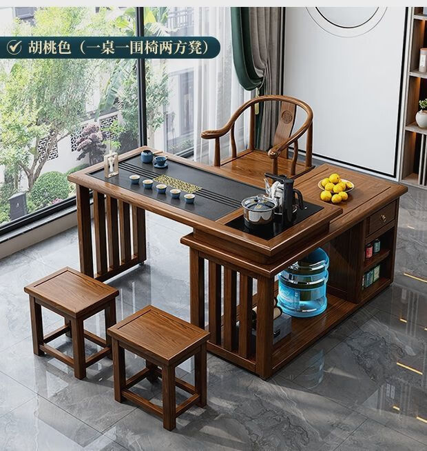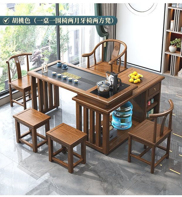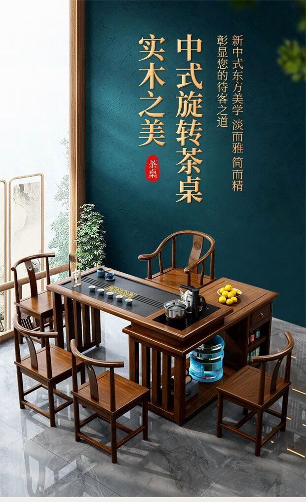 迈途森阳台小户型茶桌椅组合实木旋转岩板家用泡茶几套装一体实木小茶台 无桌+围椅【仅围椅】/1.0米旋转茶台 胡桃色【小户型】送底部上水大礼包