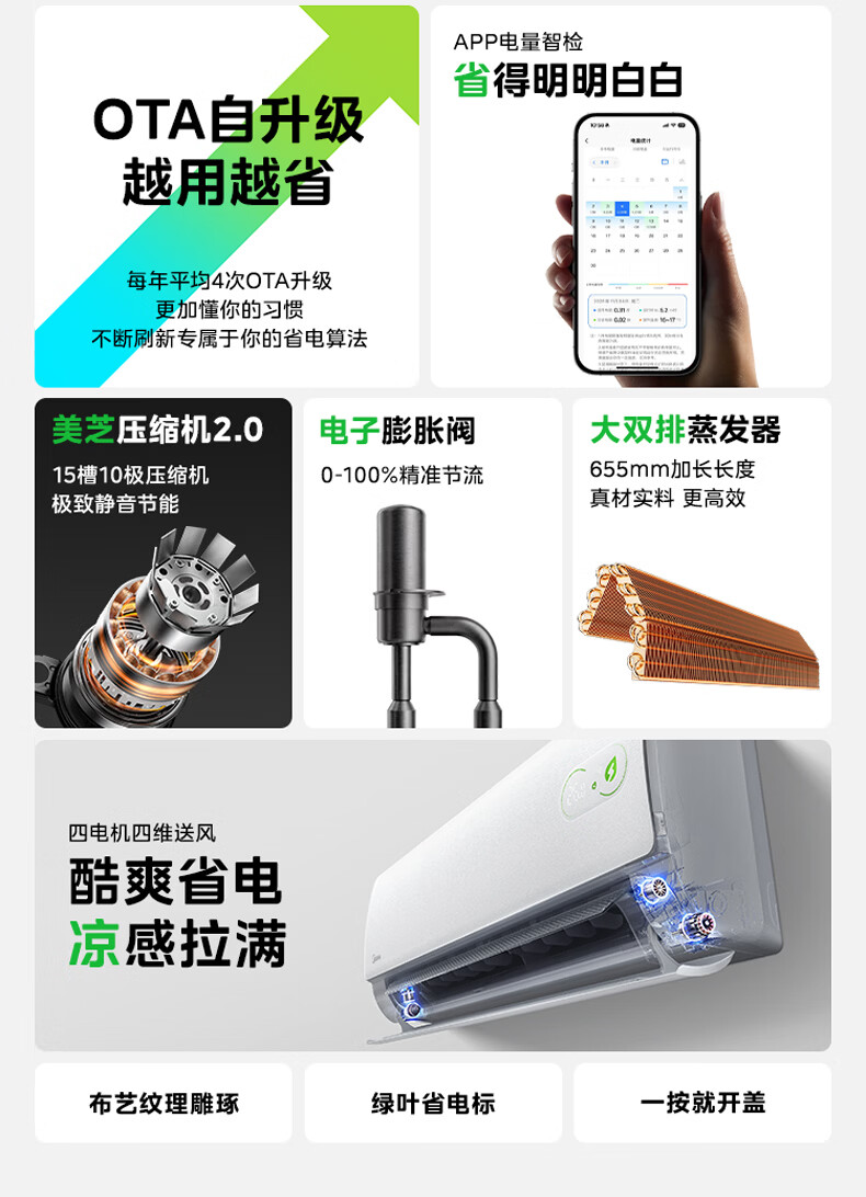 美的(Midea)空调套装酷省电二代2026新款套装家用空调挂机大1.5/1匹 新一级能效变频冷暖空调补贴20% 以旧换新 酷省电二代大1匹*2套【两卧室款】