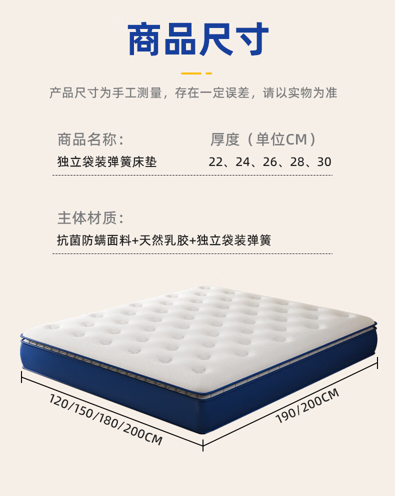 CARL BROWN床垫席梦思希尔顿床垫1.8米x2米独袋弹簧海绵乳胶五星级酒店同款 22CM卷包款【软硬适中】希尔顿五星享睡款 2000mm*2200mm