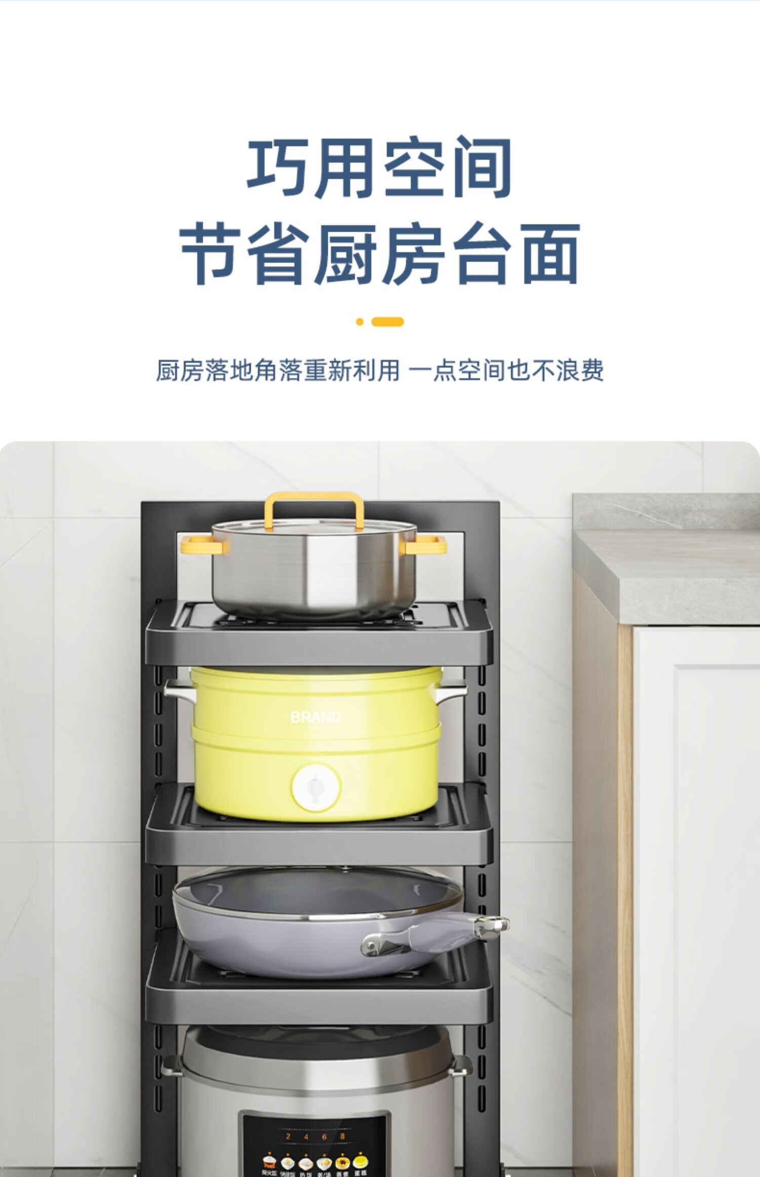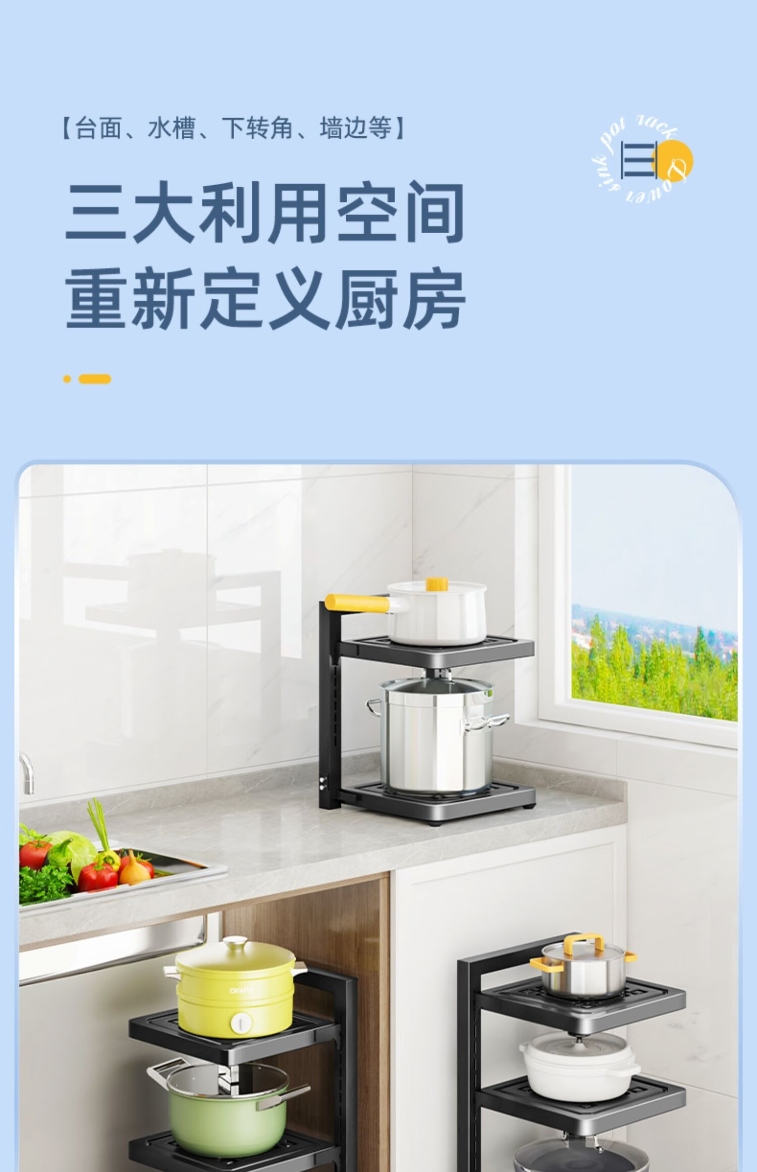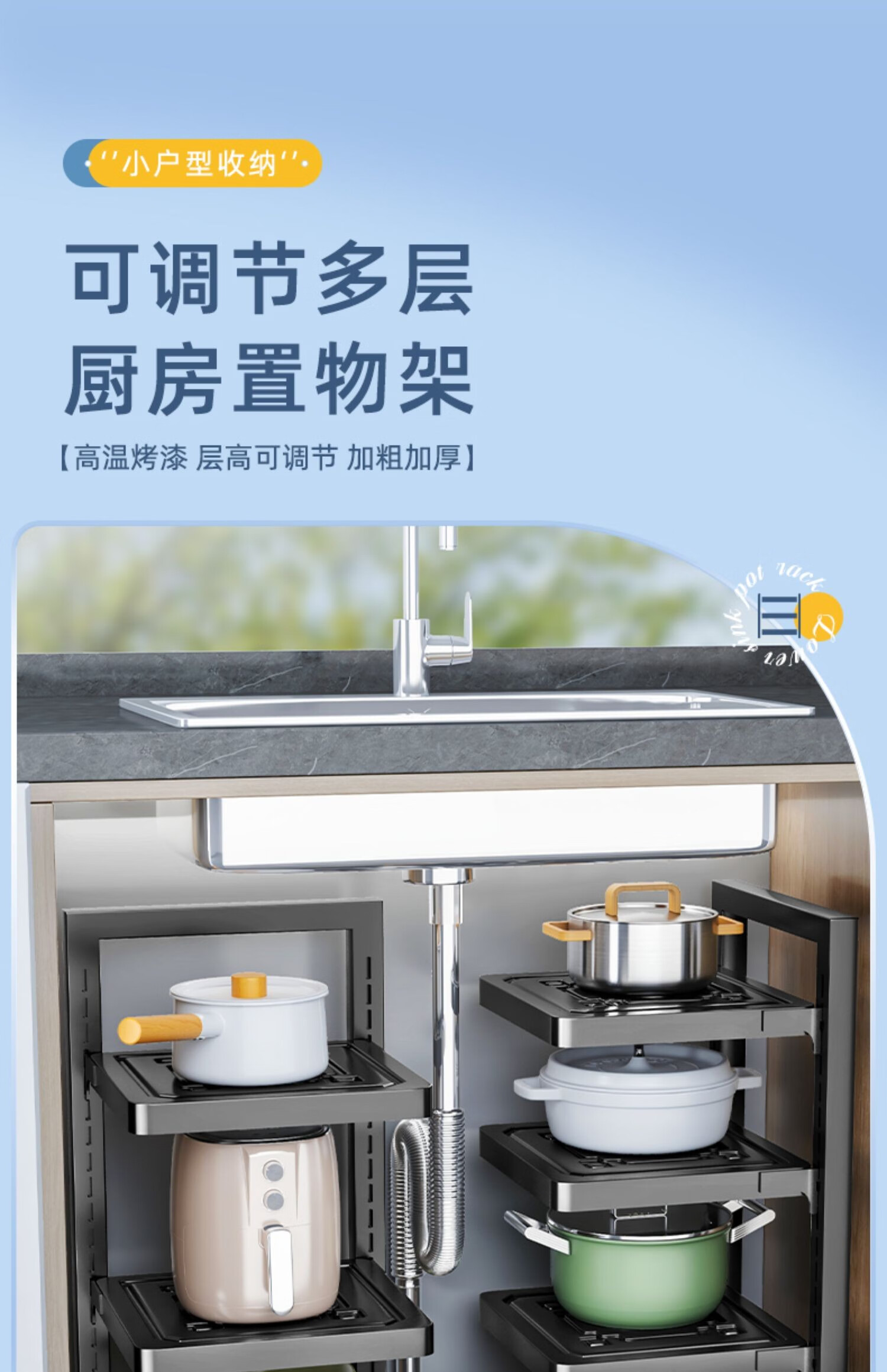居厨厨厨房置物架多层家用多功能橱柜下水槽锅具灶台分层锅架收纳可调节 枪灰色【层距任意调】3层