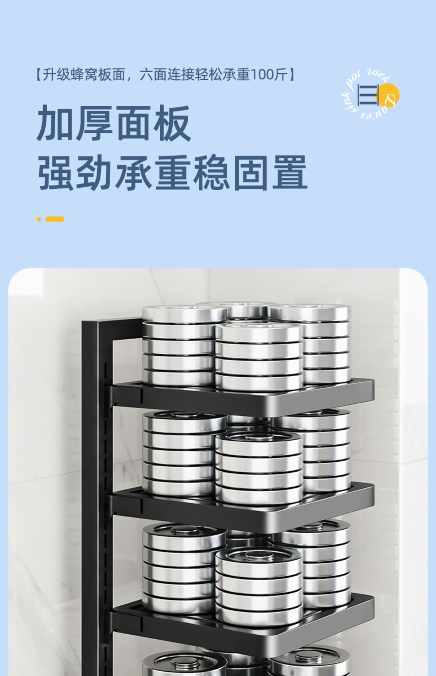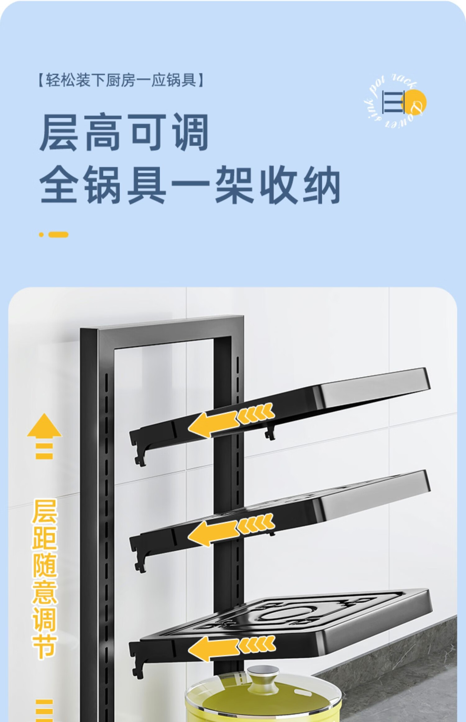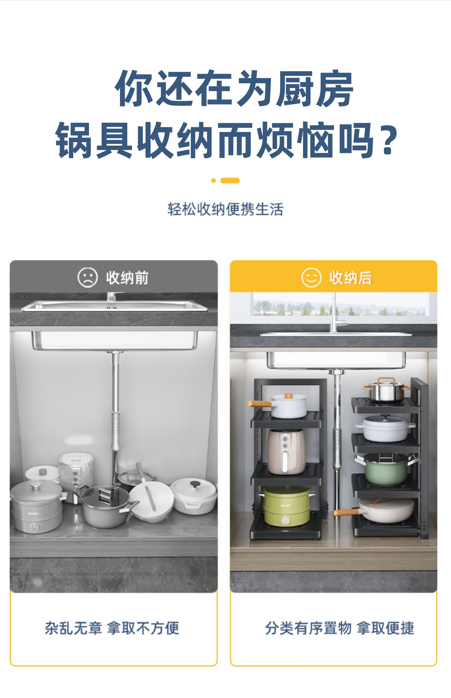 居厨厨厨房置物架多层家用多功能橱柜下水槽锅具灶台分层锅架收纳可调节 枪灰色【层距任意调】3层