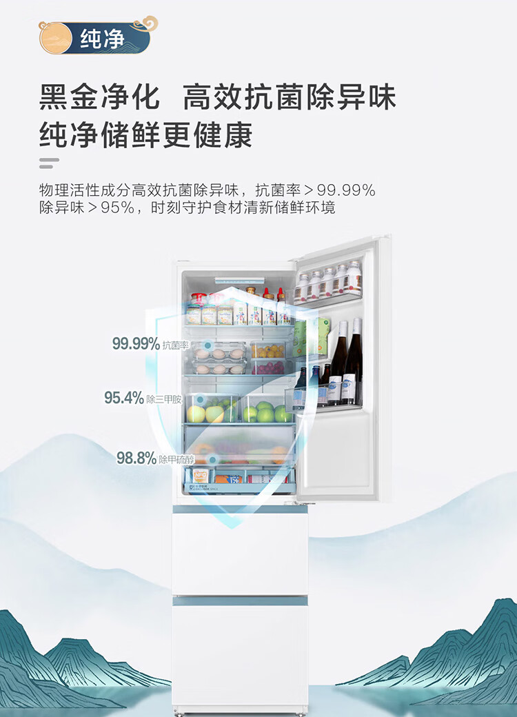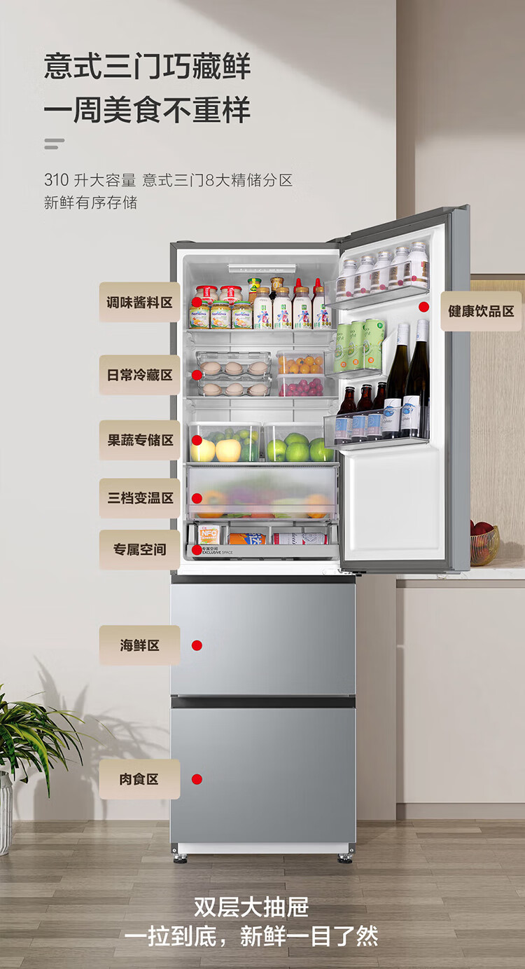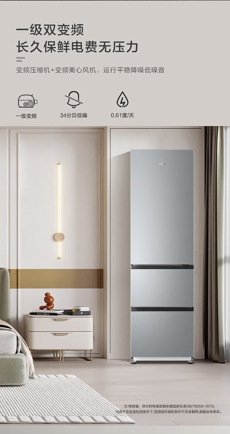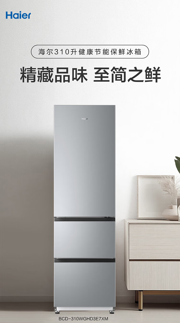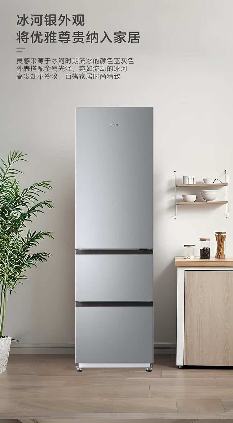海尔(Haier)冰箱310升三门风冷无霜黑金净化三档变温一级能效双变频节能小户型租房家用大容量电冰箱补贴15% 冰河银+三档变温+黑金净化抑菌