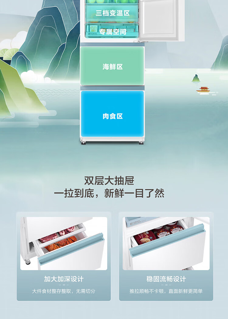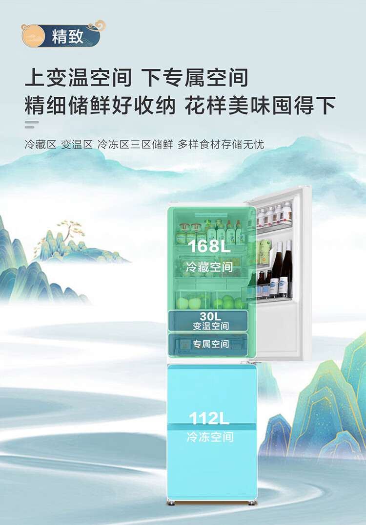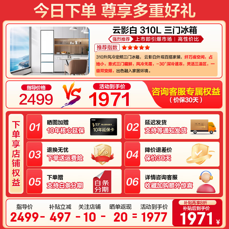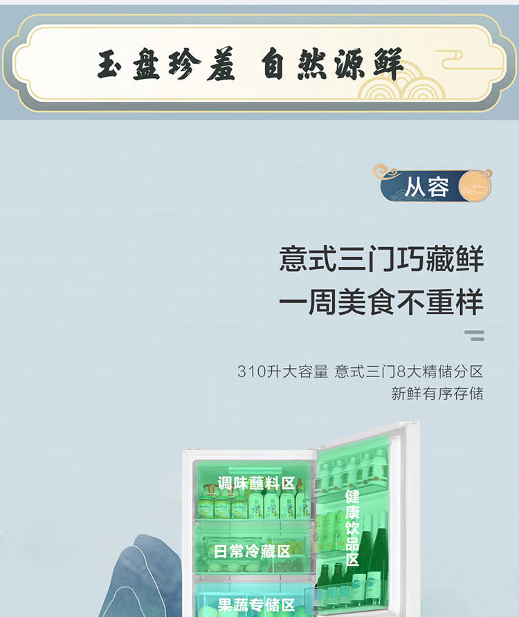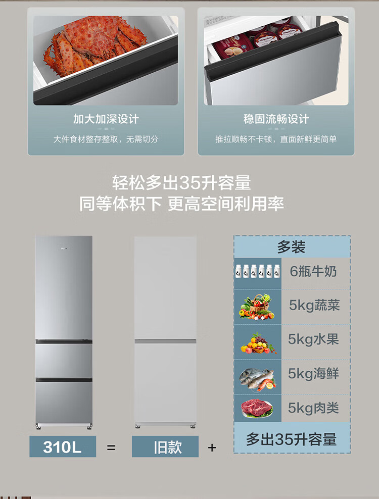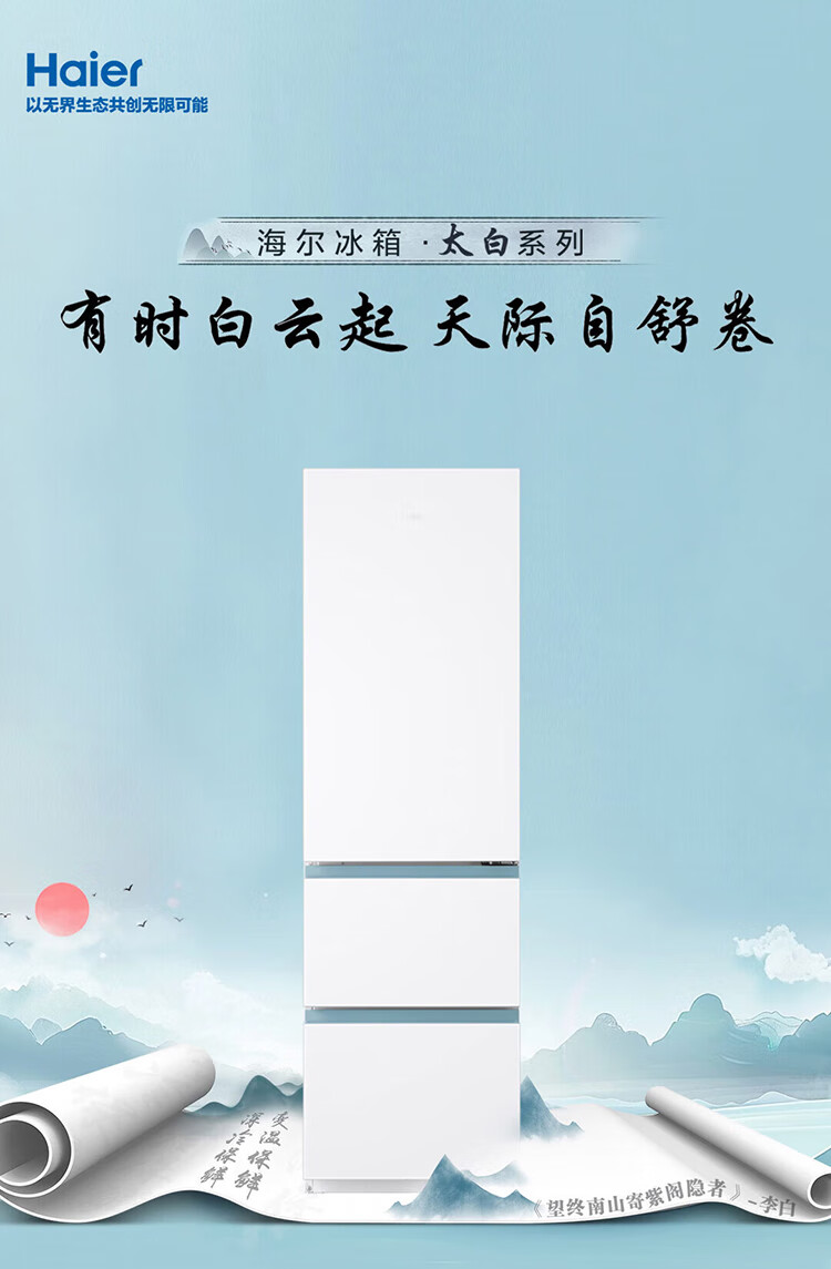 海尔(Haier)冰箱310升三门风冷无霜黑金净化三档变温一级能效双变频节能小户型租房家用大容量电冰箱补贴15% 冰河银+三档变温+黑金净化抑菌