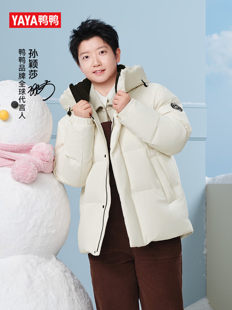 鸭鸭孙颖莎同款时空道宇羽绒服男短款2025冬季新款男女款面包服外套HY 月光白色 L 175/92A(L)