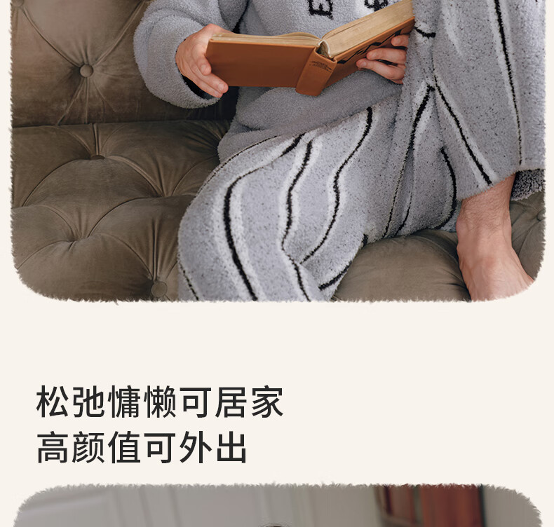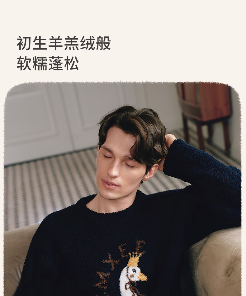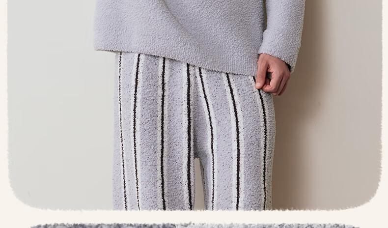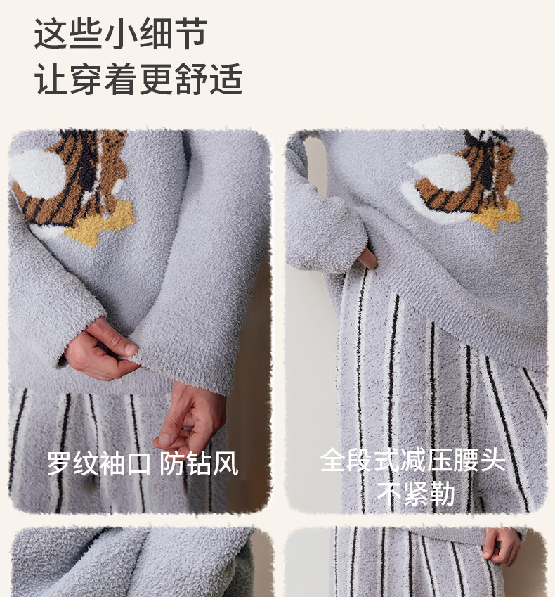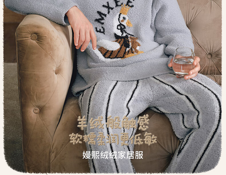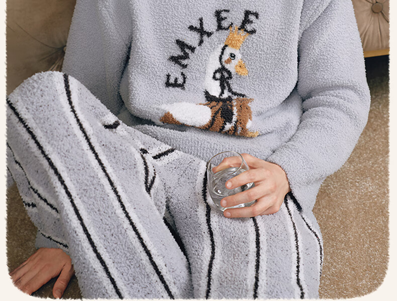 嫚熙(EMXEE)幸运鹅秋冬牛油果半边绒男士睡衣加厚加绒家居服套装2025新款 幸运鹅-冰川灰 XL