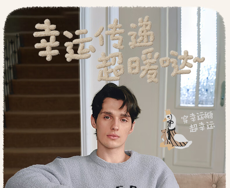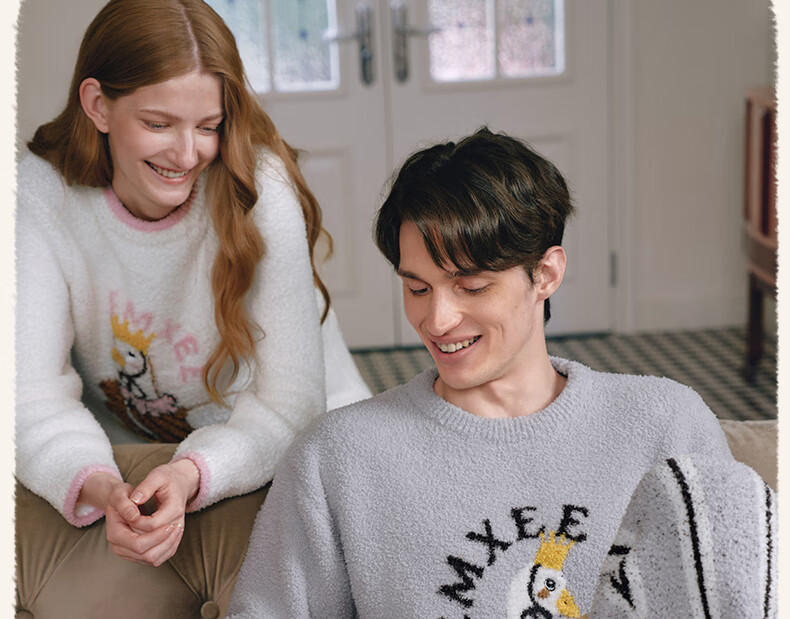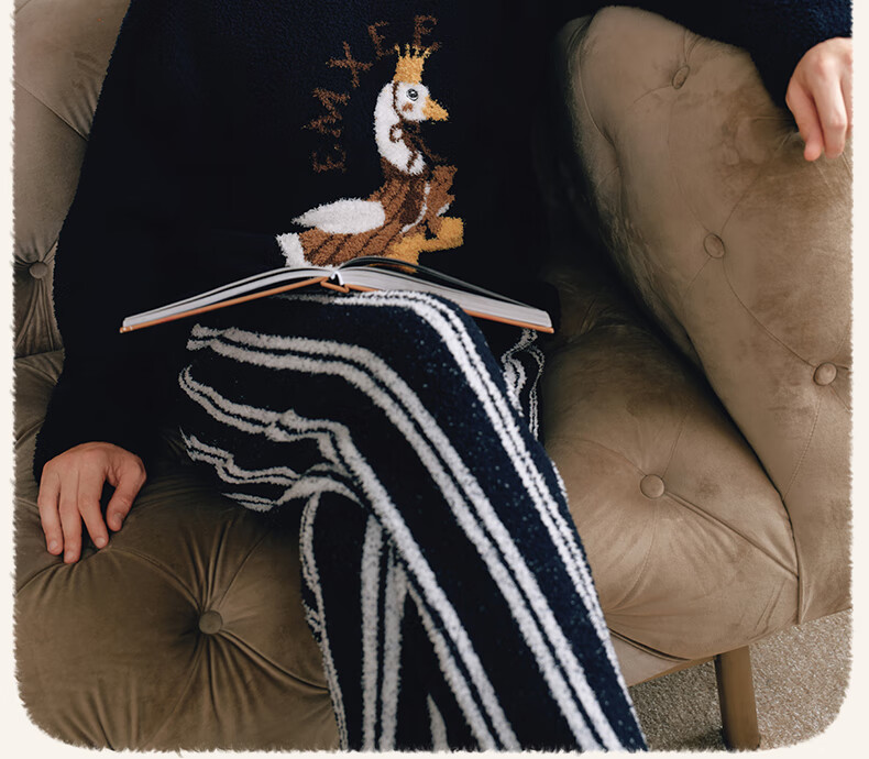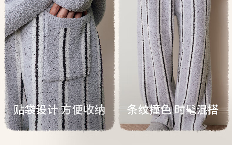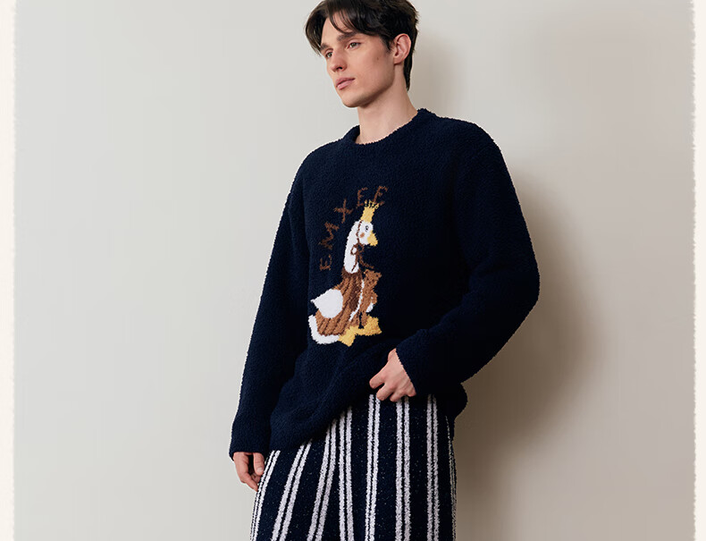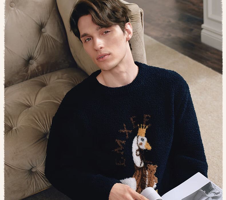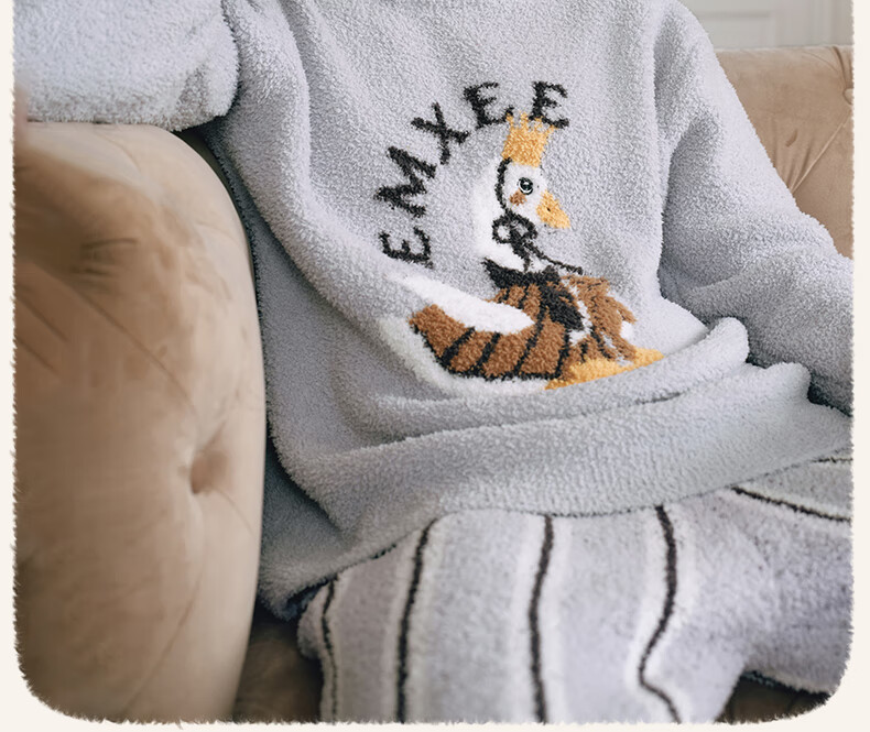 嫚熙(EMXEE)幸运鹅秋冬牛油果半边绒男士睡衣加厚加绒家居服套装2025新款 幸运鹅-冰川灰 XL
