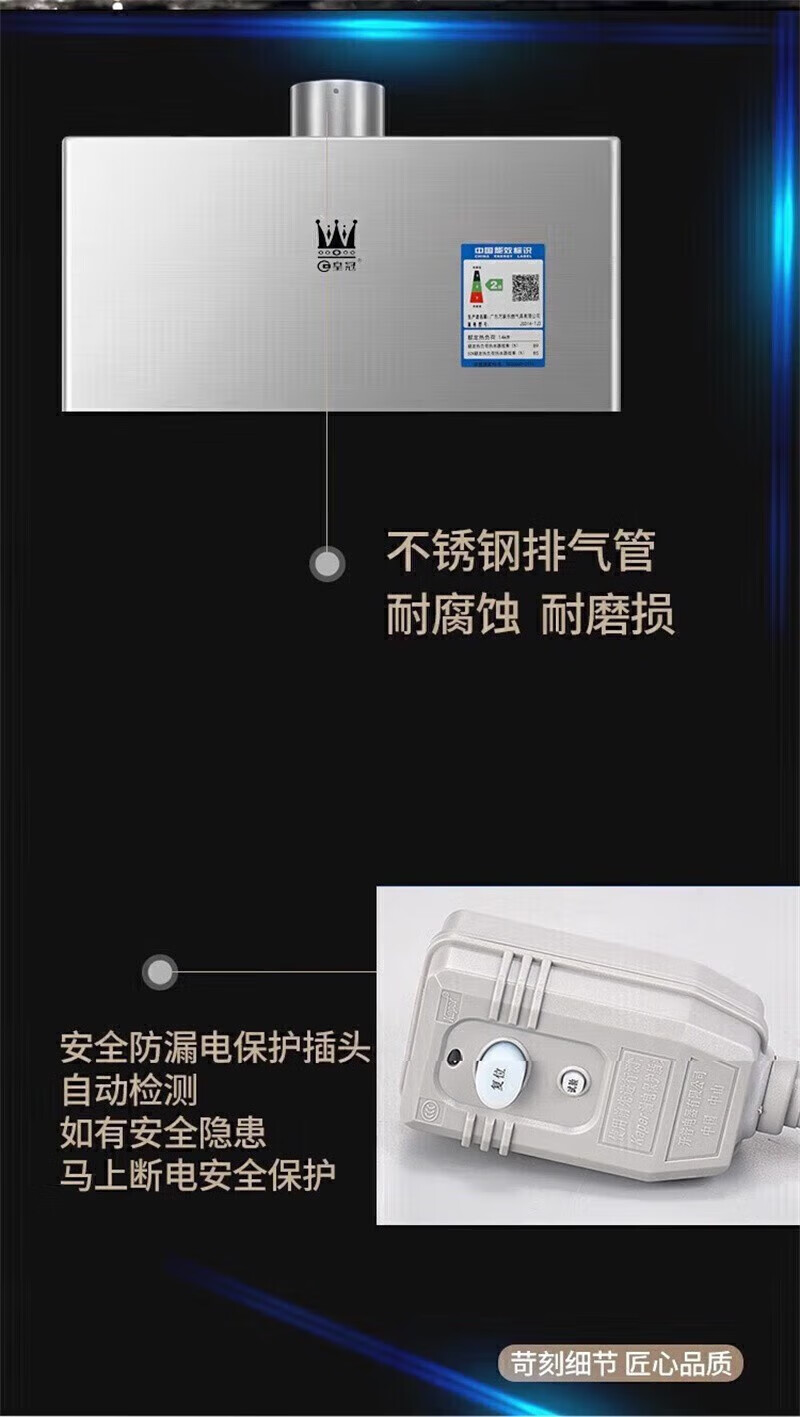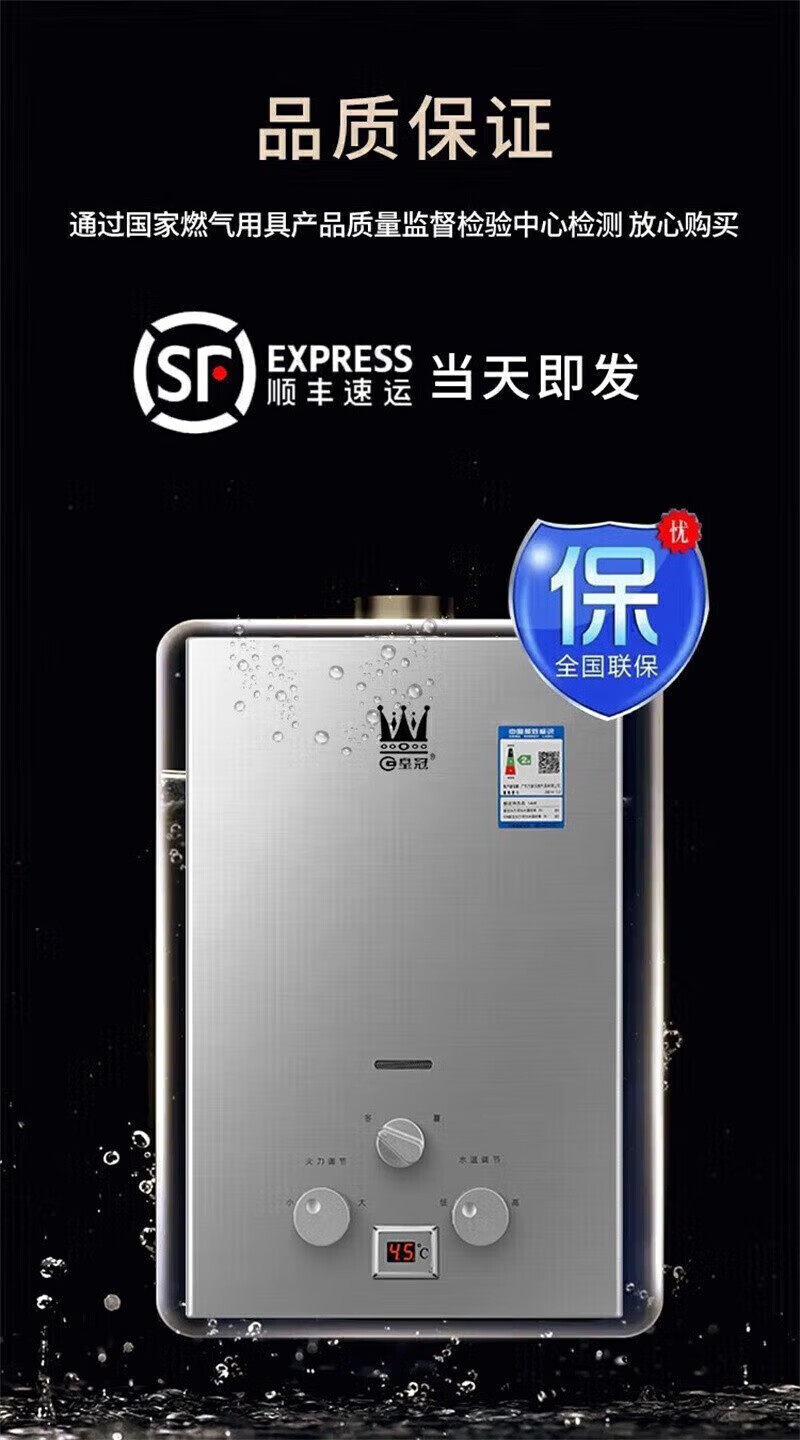 皇冠【顺丰快递】家用燃气热水器煤气天然气液化气电池款强排插电款即 6升电池款铝水箱-不包安装 液化气(罐装煤气)