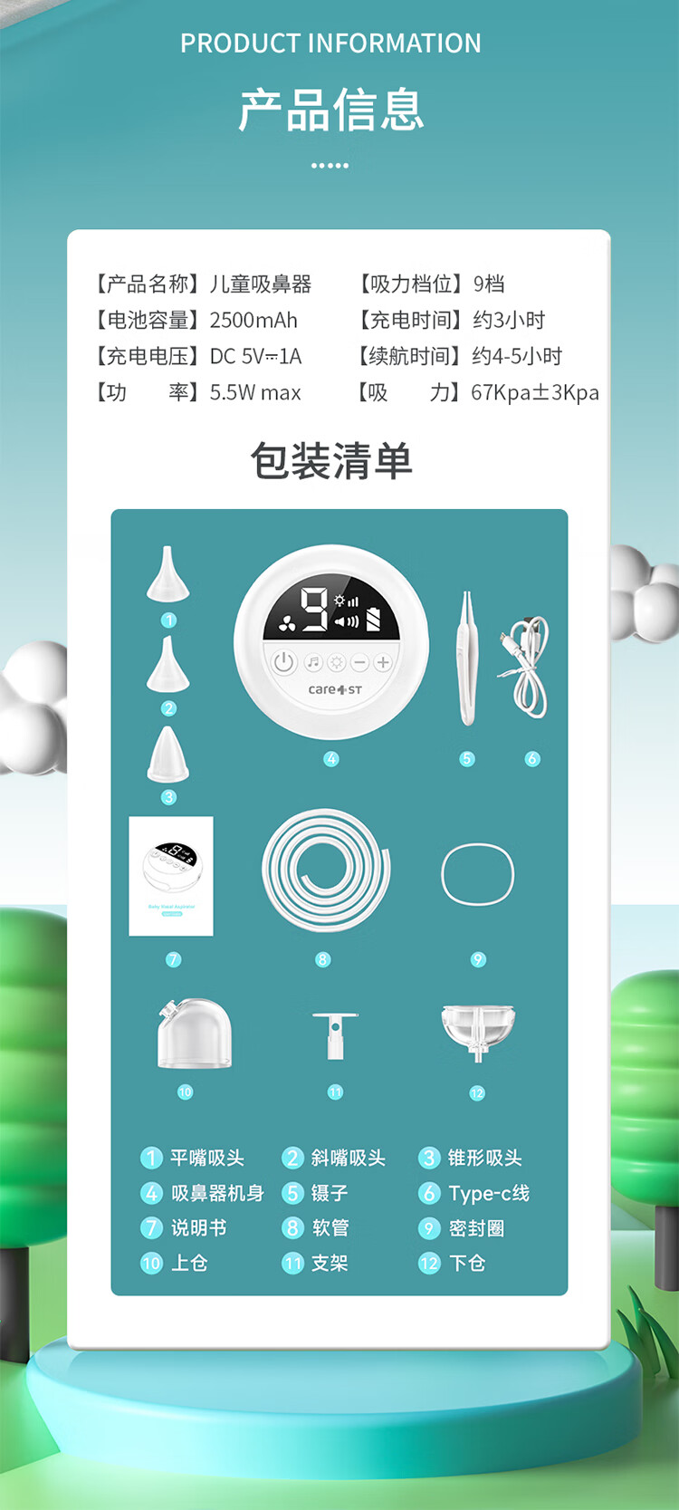 Care1st嘉卫士分体式电动吸鼻器 新生婴幼儿 干湿鼻涕鼻屎清洁洗鼻器 白