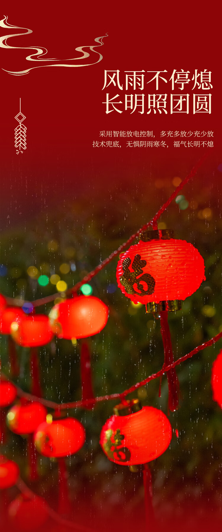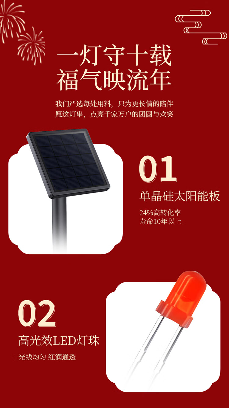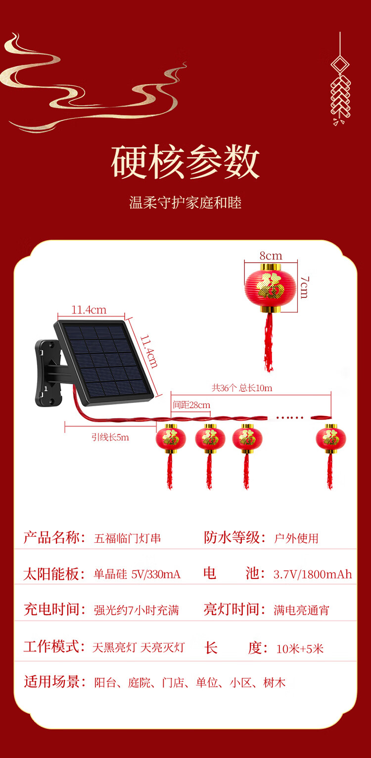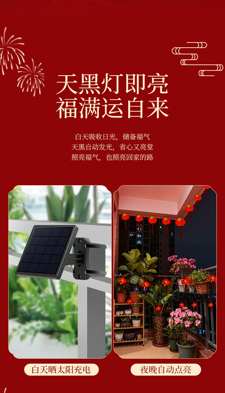 颖朗太阳能灯户外庭院灯农村家用红灯笼露营彩灯院子照明灯景观装饰灯 【五福临门-红灯笼】15米36灯 迎春接福-好运来!