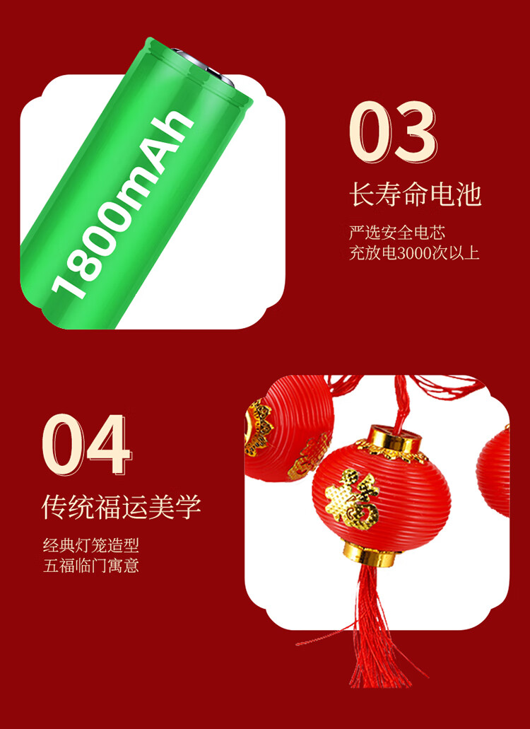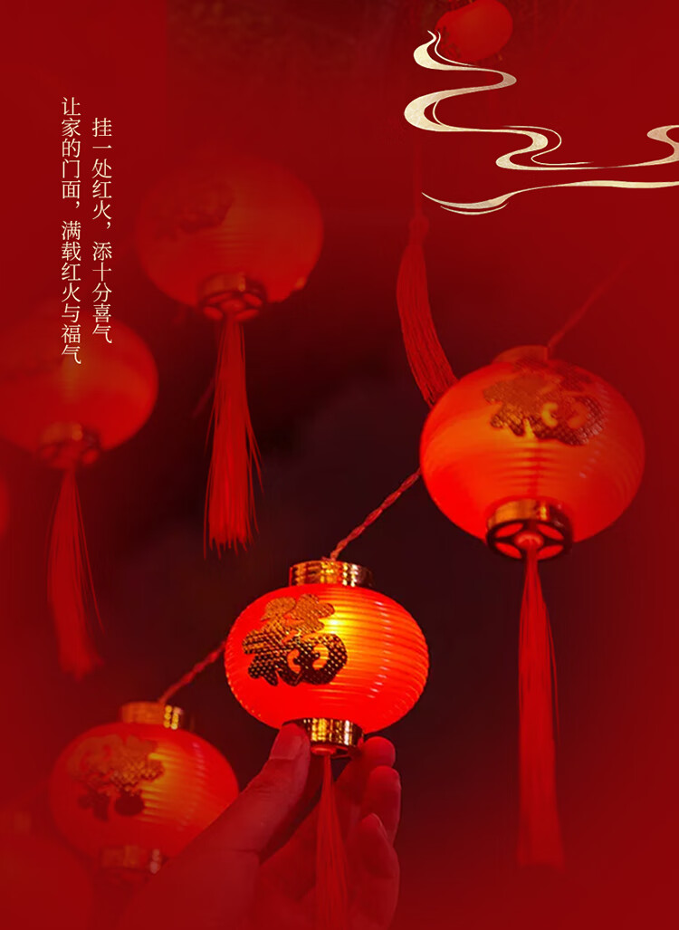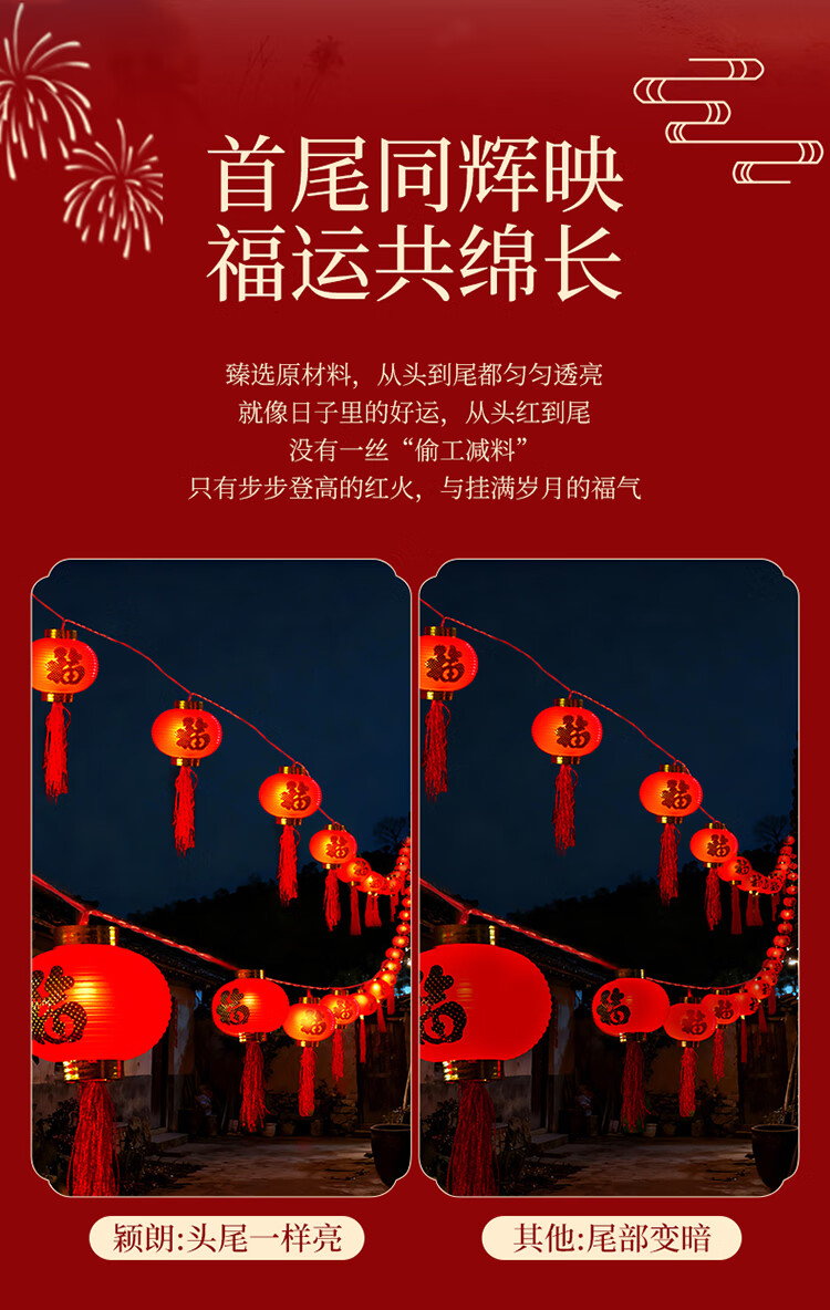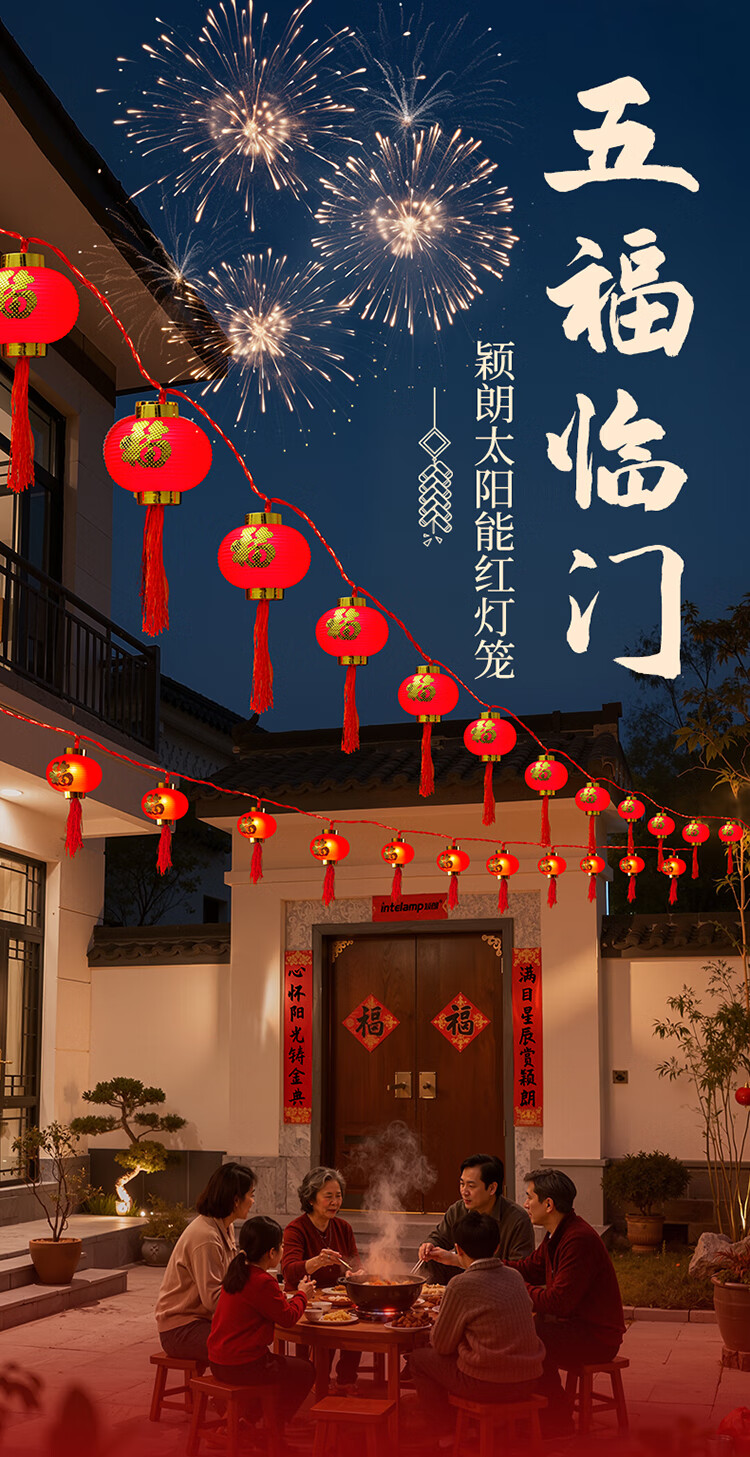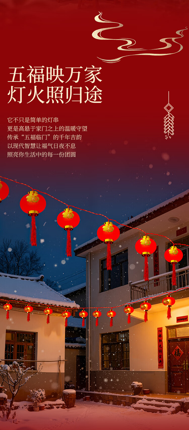 颖朗太阳能灯户外庭院灯农村家用红灯笼露营彩灯院子照明灯景观装饰灯 【五福临门-红灯笼】15米36灯 迎春接福-好运来!