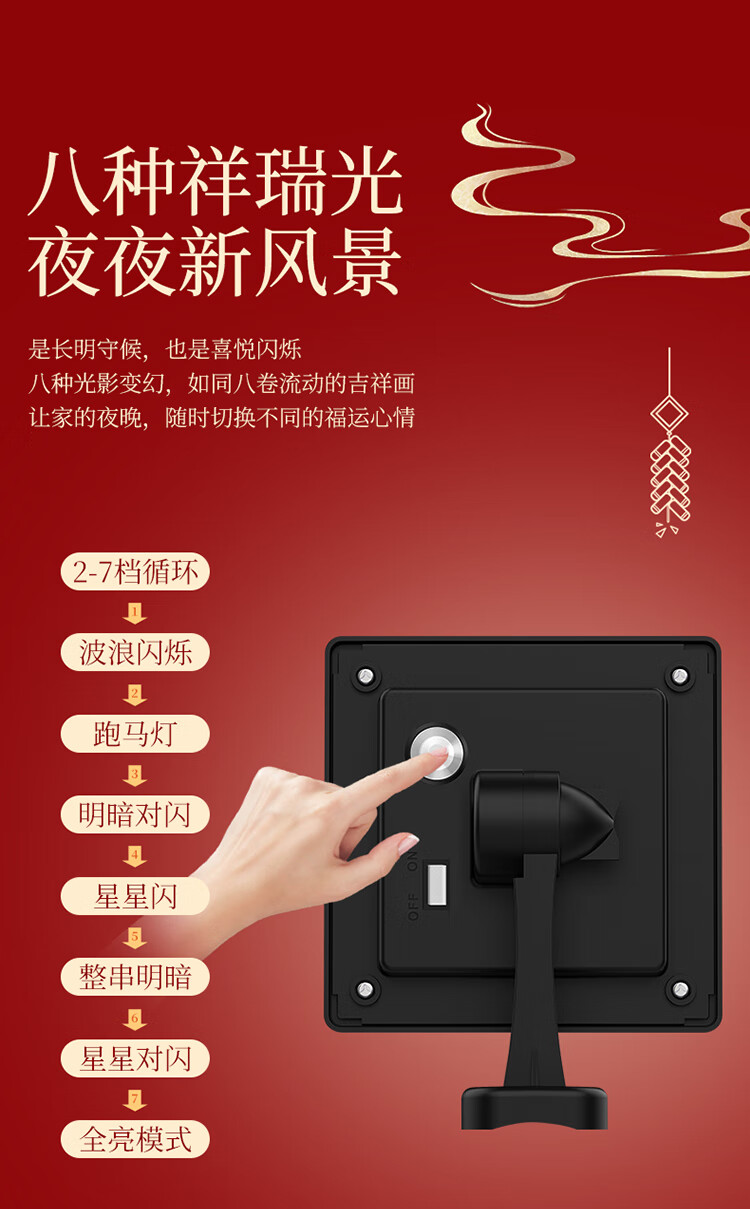OUMIRO春节氛围福字灯泡新年投影灯发财灯福气到家结婚过年喜庆场地布置 万向灯座