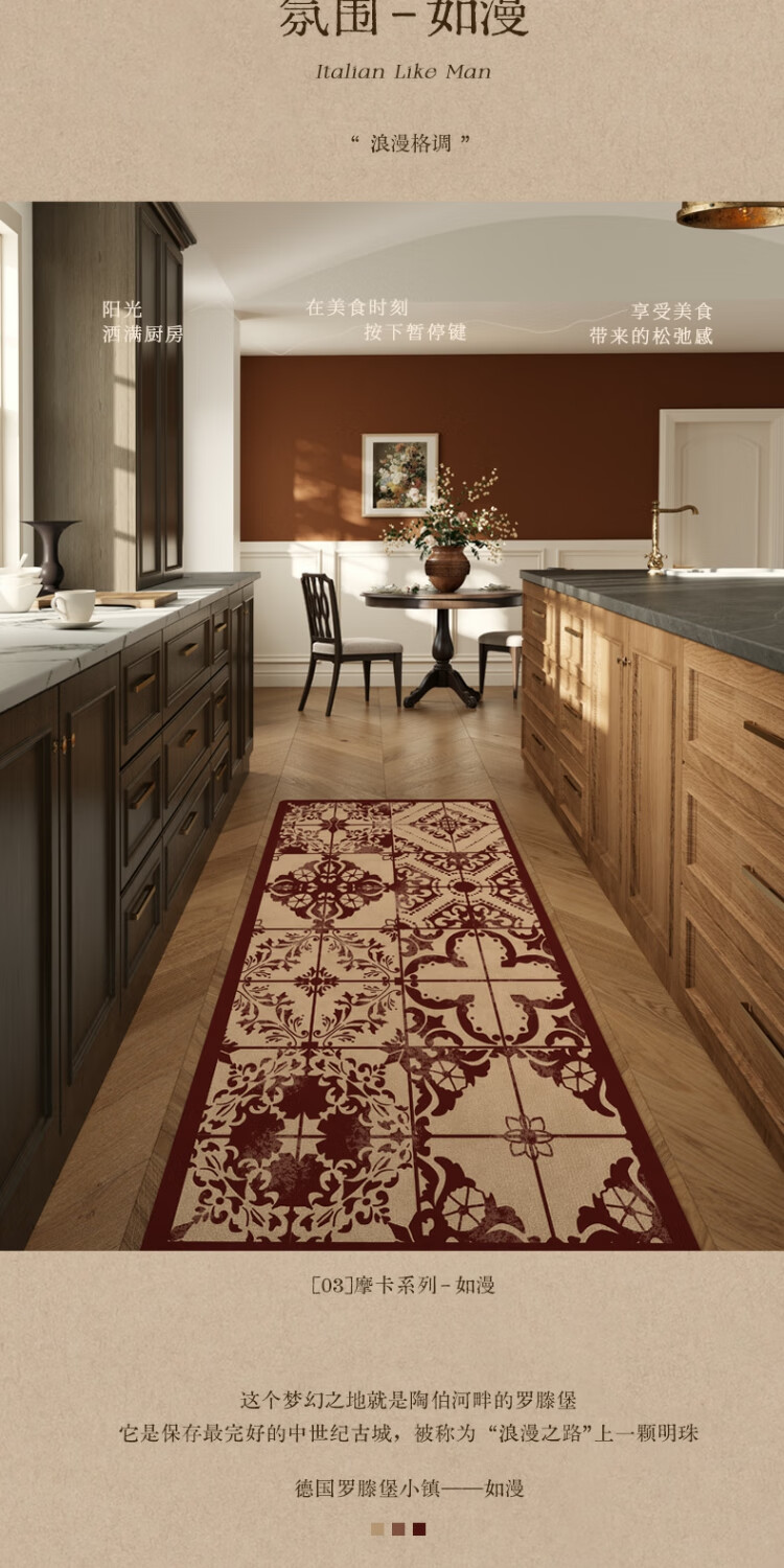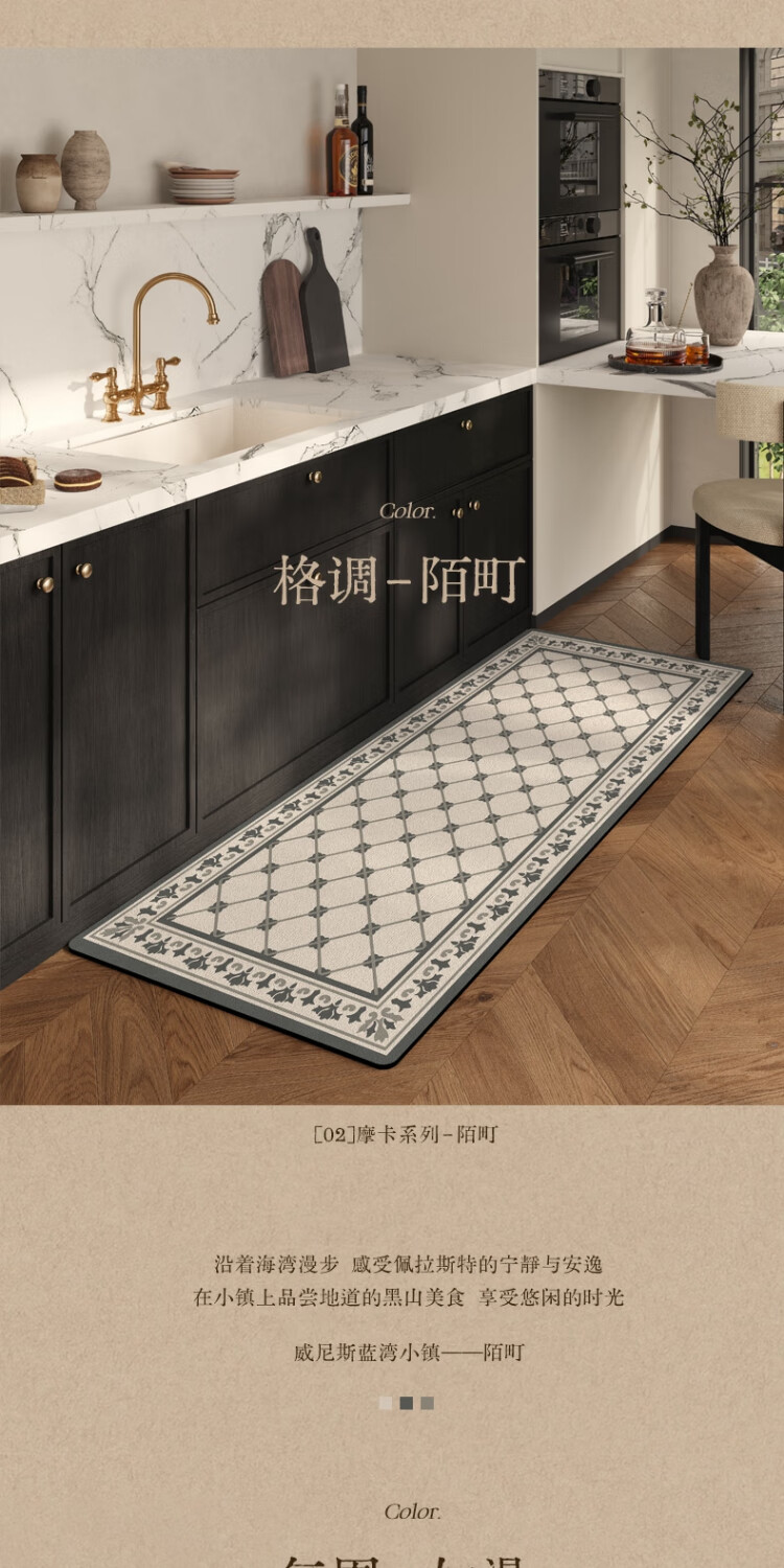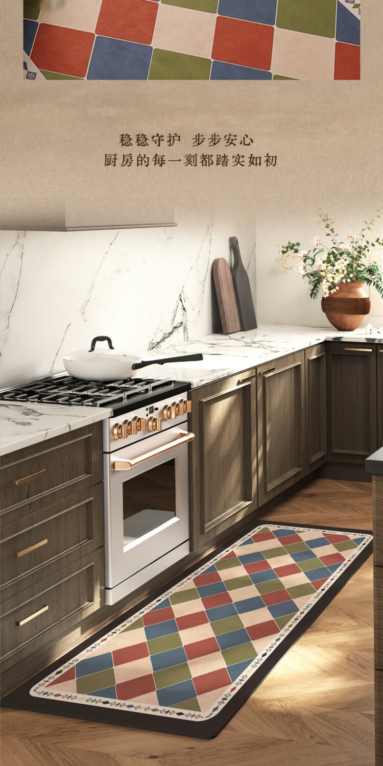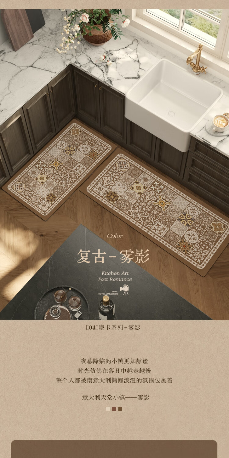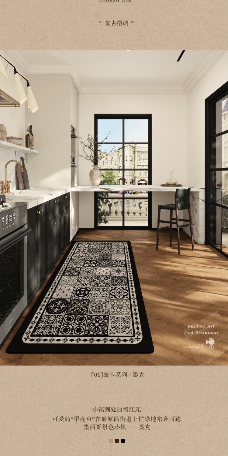 京华厨房防滑防油地垫2025新美式复古风可擦免洗耐脏专用可定制脚垫 雾影 60cm*150cm