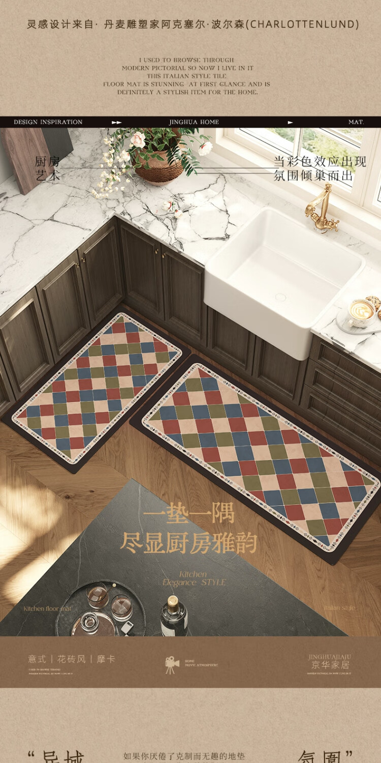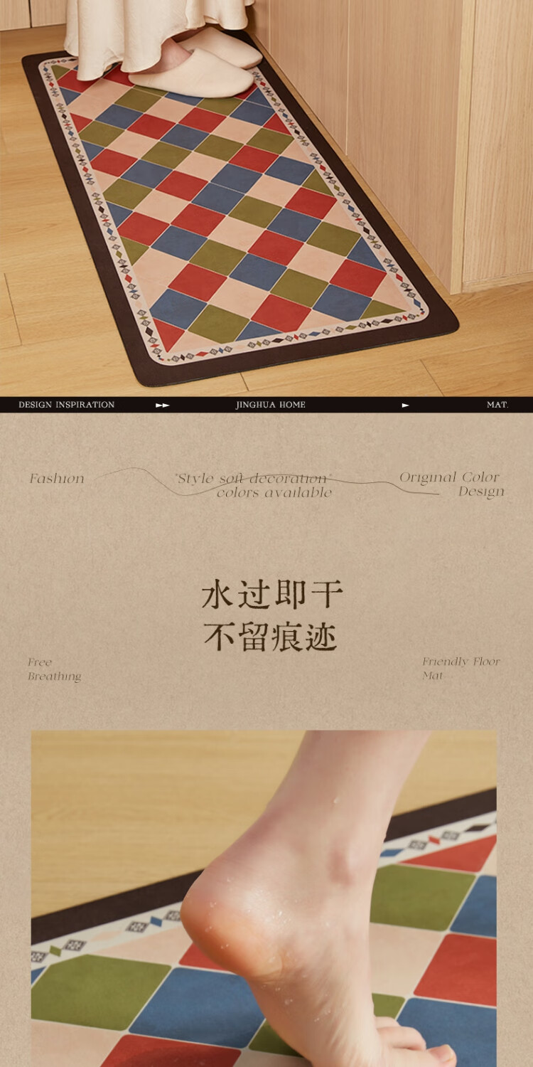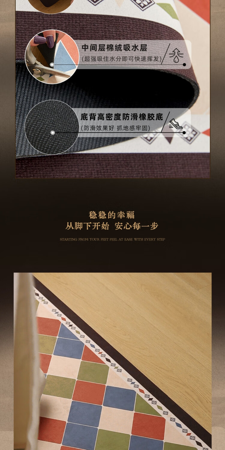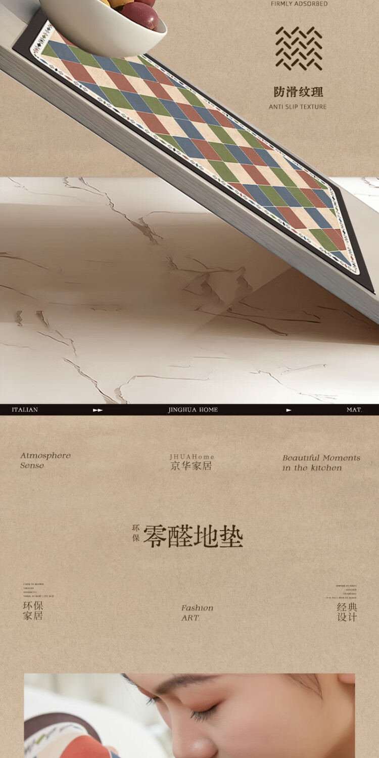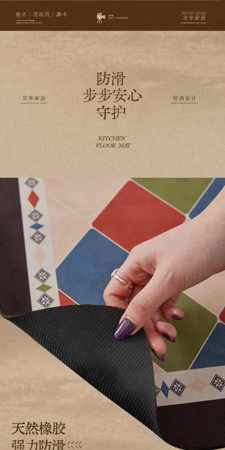 京华厨房防滑防油地垫2025新美式复古风可擦免洗耐脏专用可定制脚垫 雾影 60cm*150cm