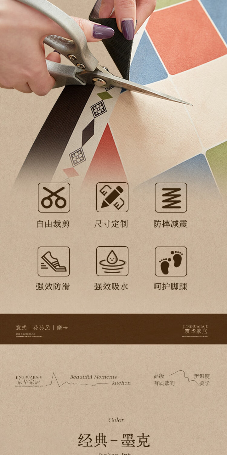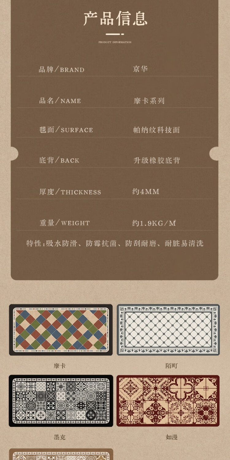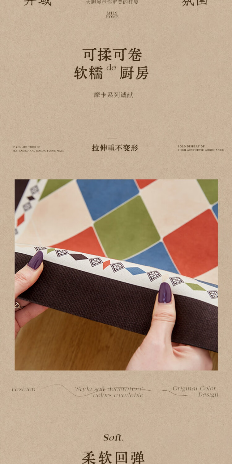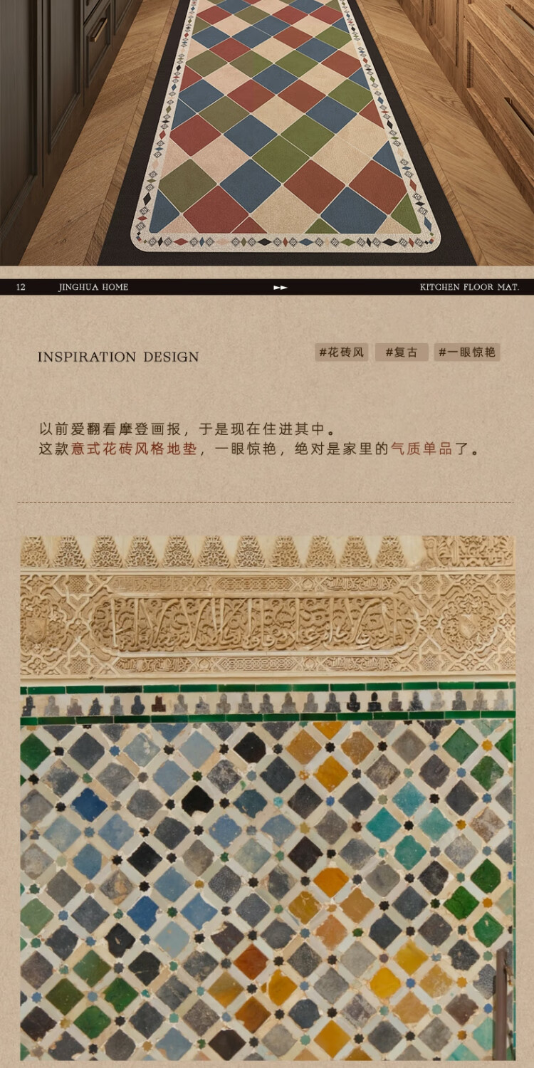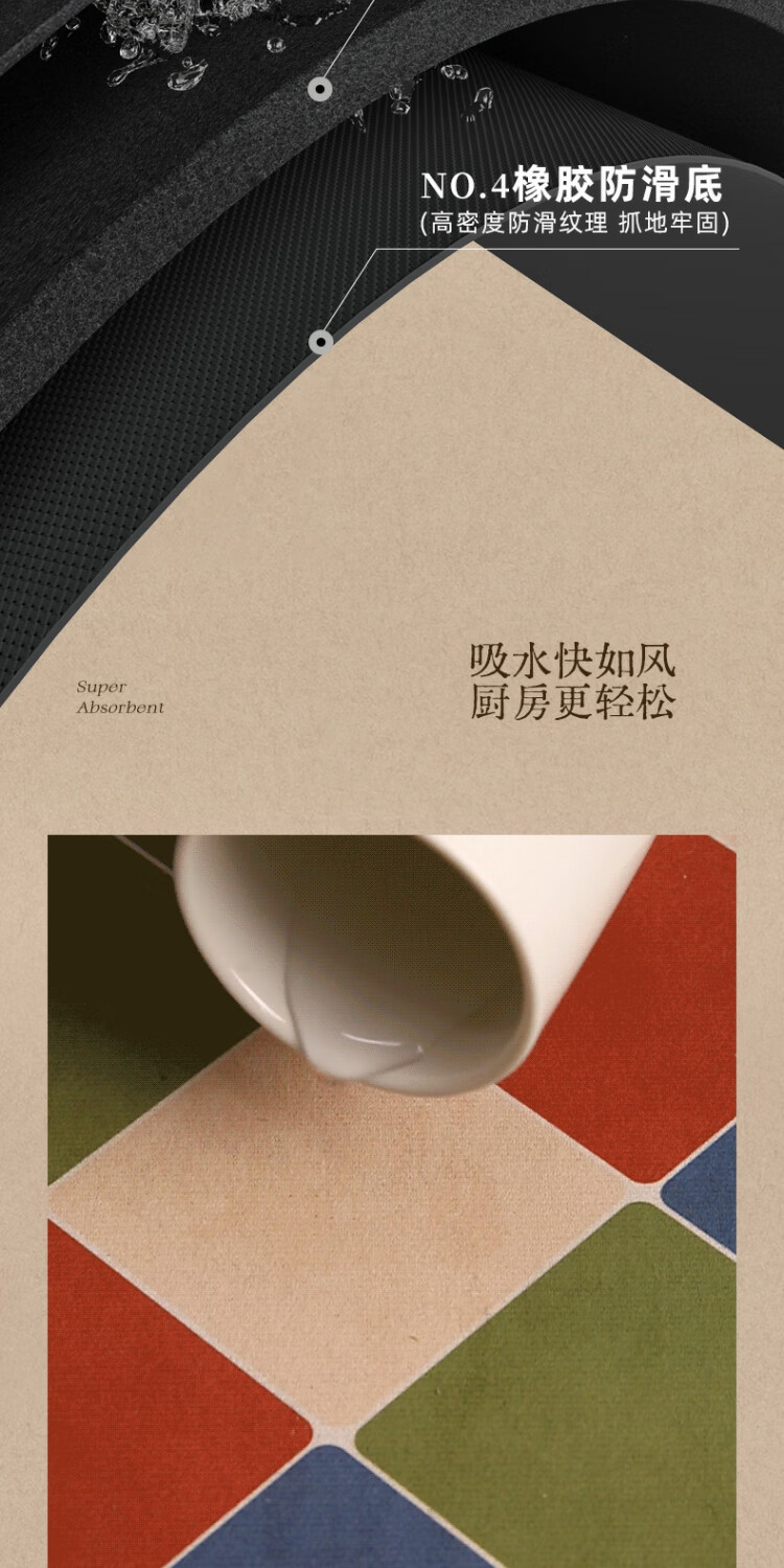 京华厨房防滑防油地垫2025新美式复古风可擦免洗耐脏专用可定制脚垫 雾影 60cm*150cm