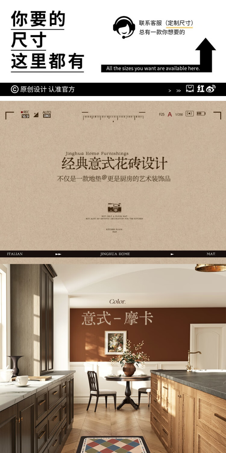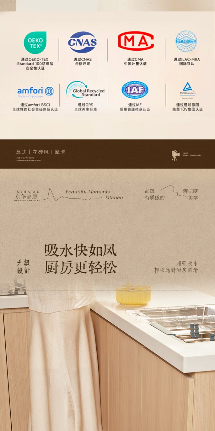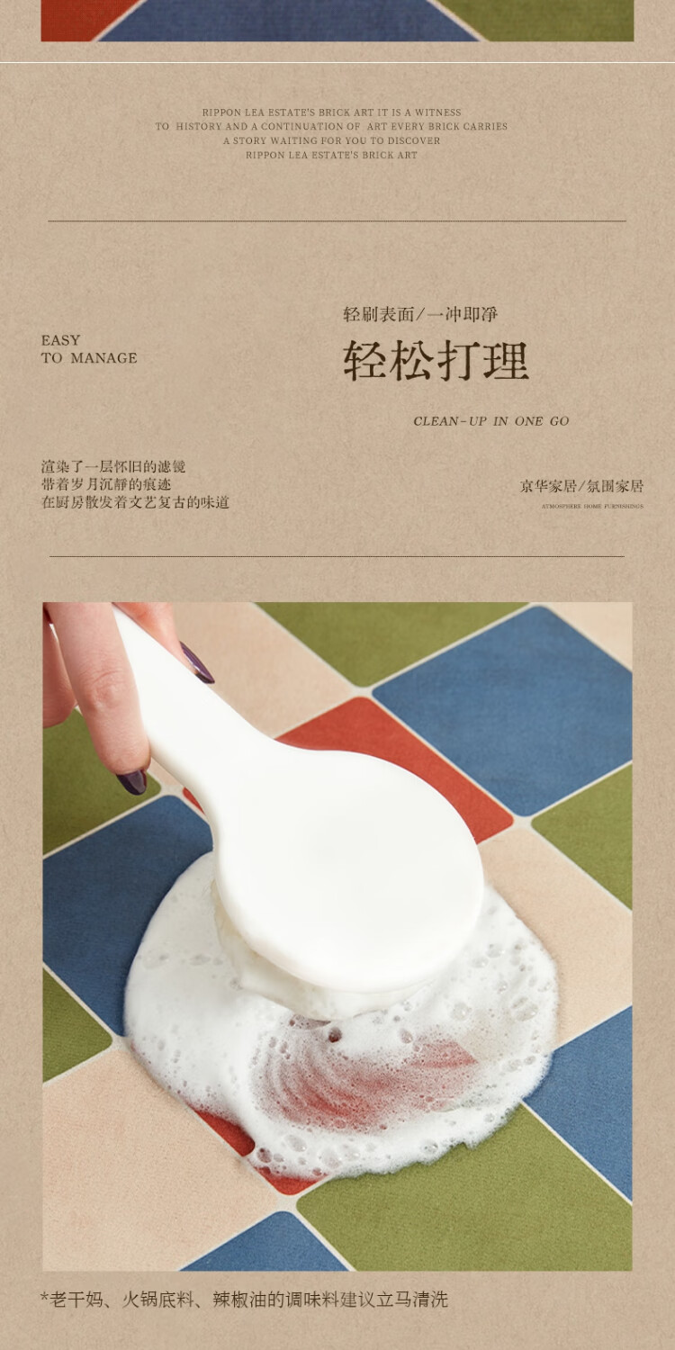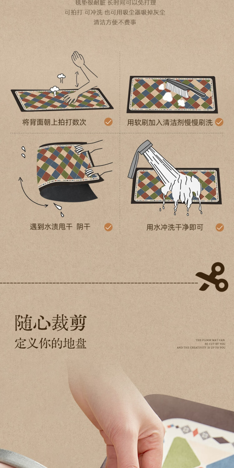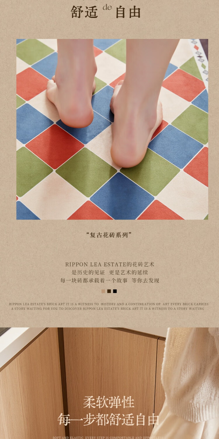 京华厨房防滑防油地垫2025新美式复古风可擦免洗耐脏专用可定制脚垫 雾影 60cm*150cm