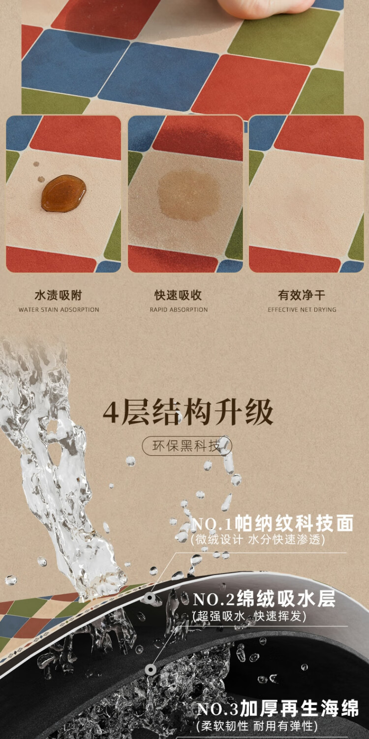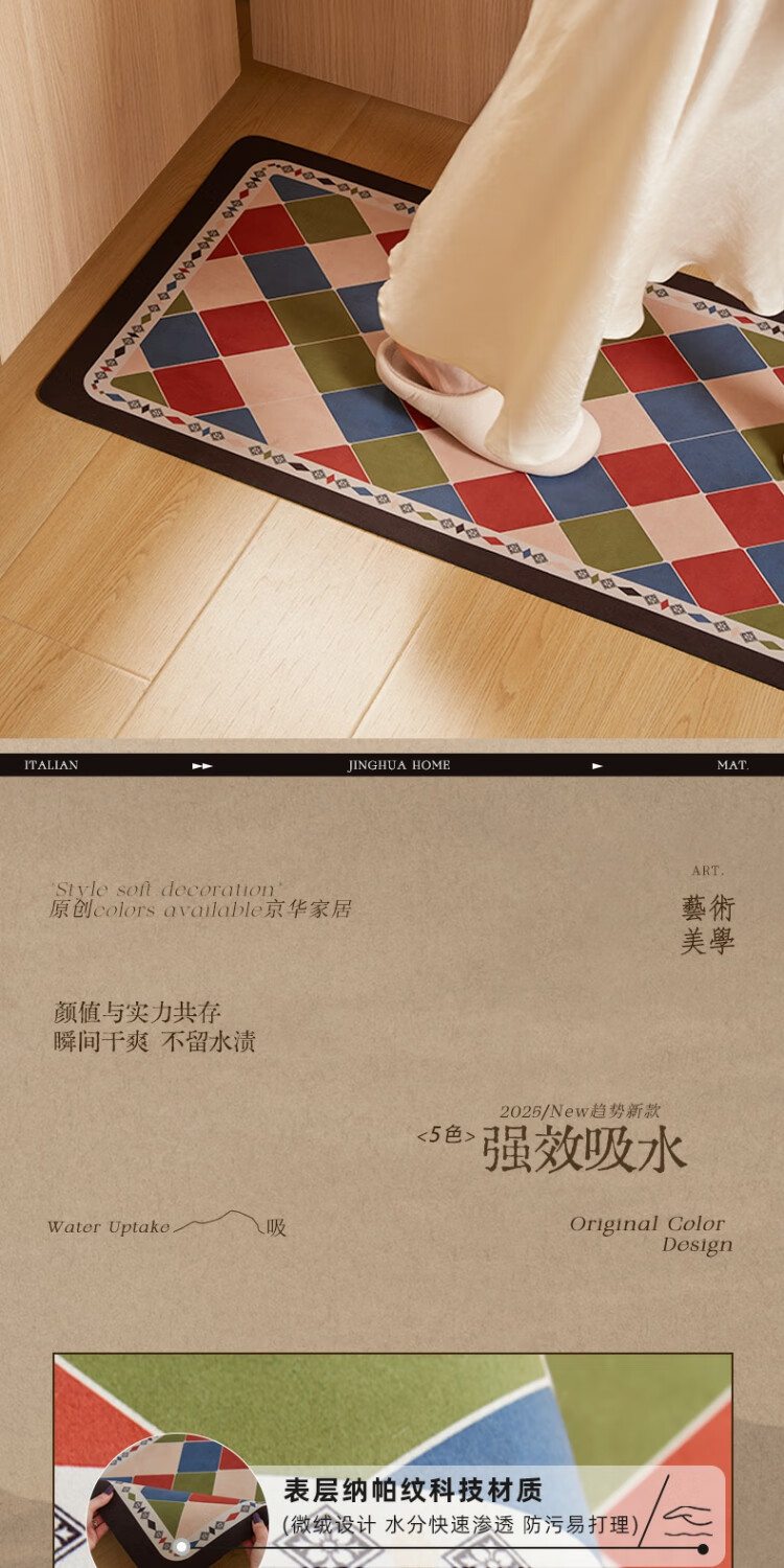 季象浴室地垫科技绒软垫吸水防滑垫卫生间门口脚垫厕所洗手间卫浴垫子 GZN-春山 40x60 cm