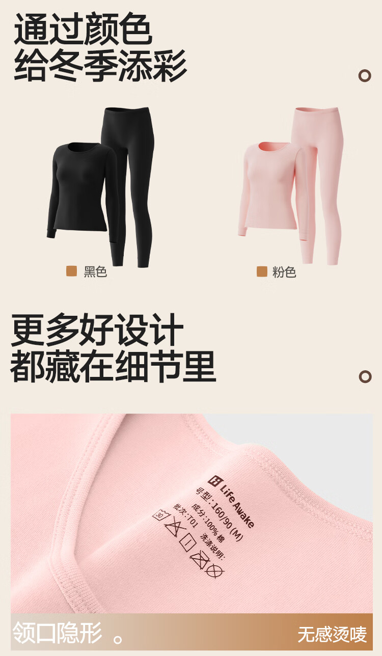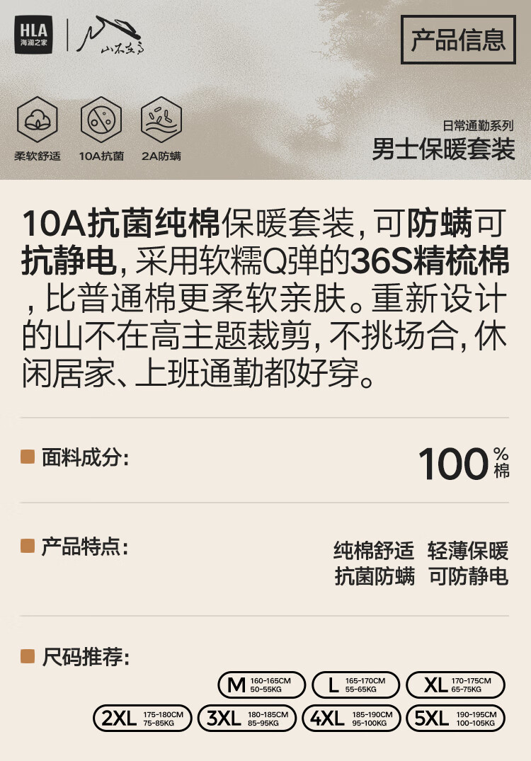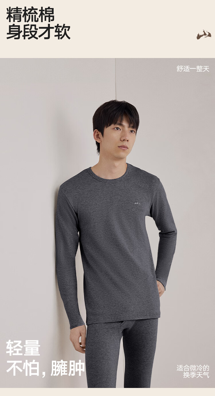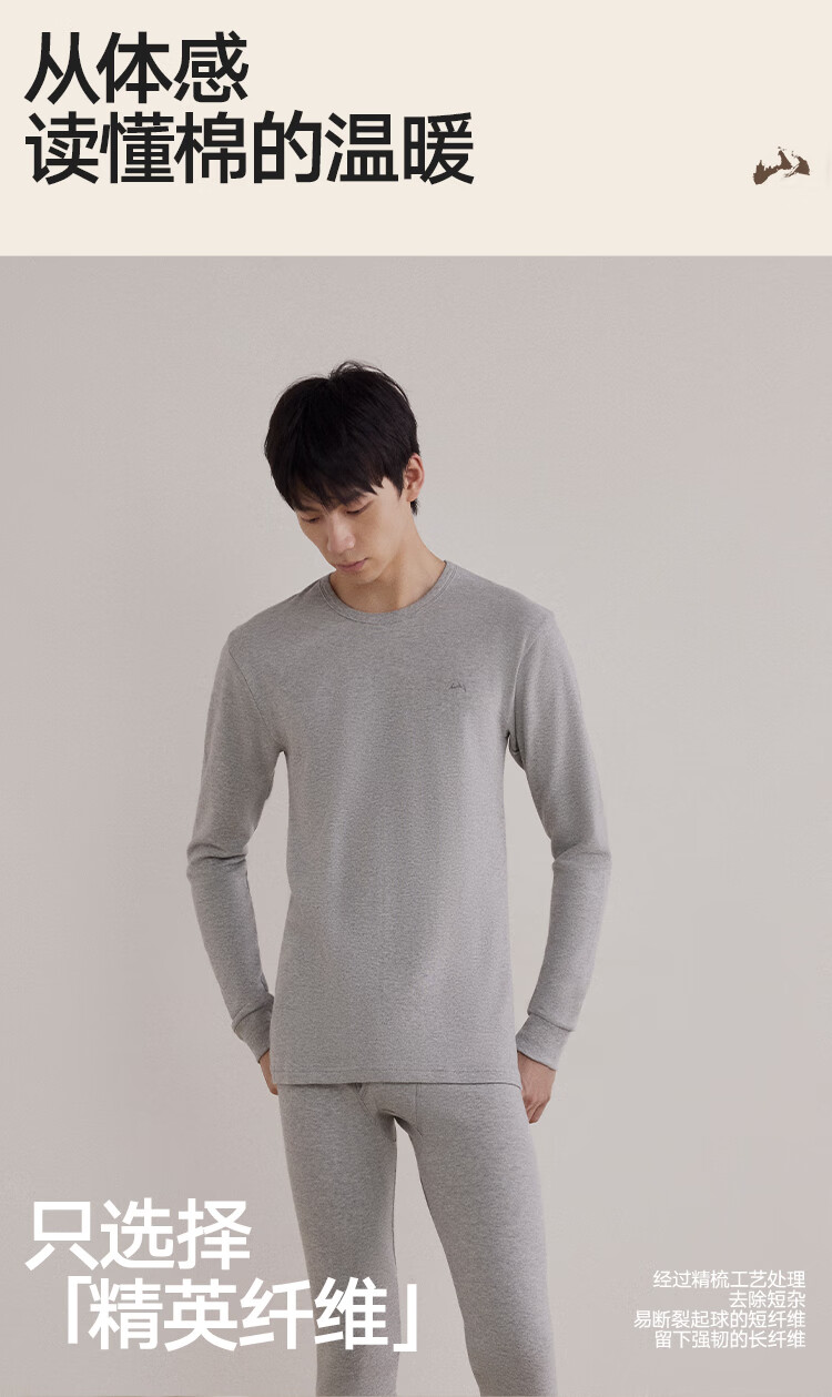 海澜之家【山不在高】秋衣秋裤男女25新品纯棉210g抗菌防螨薄保暖内衣套装