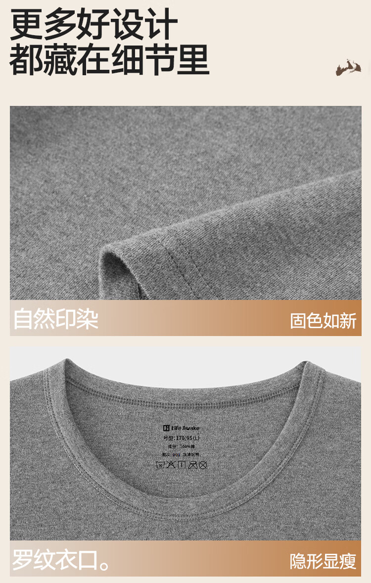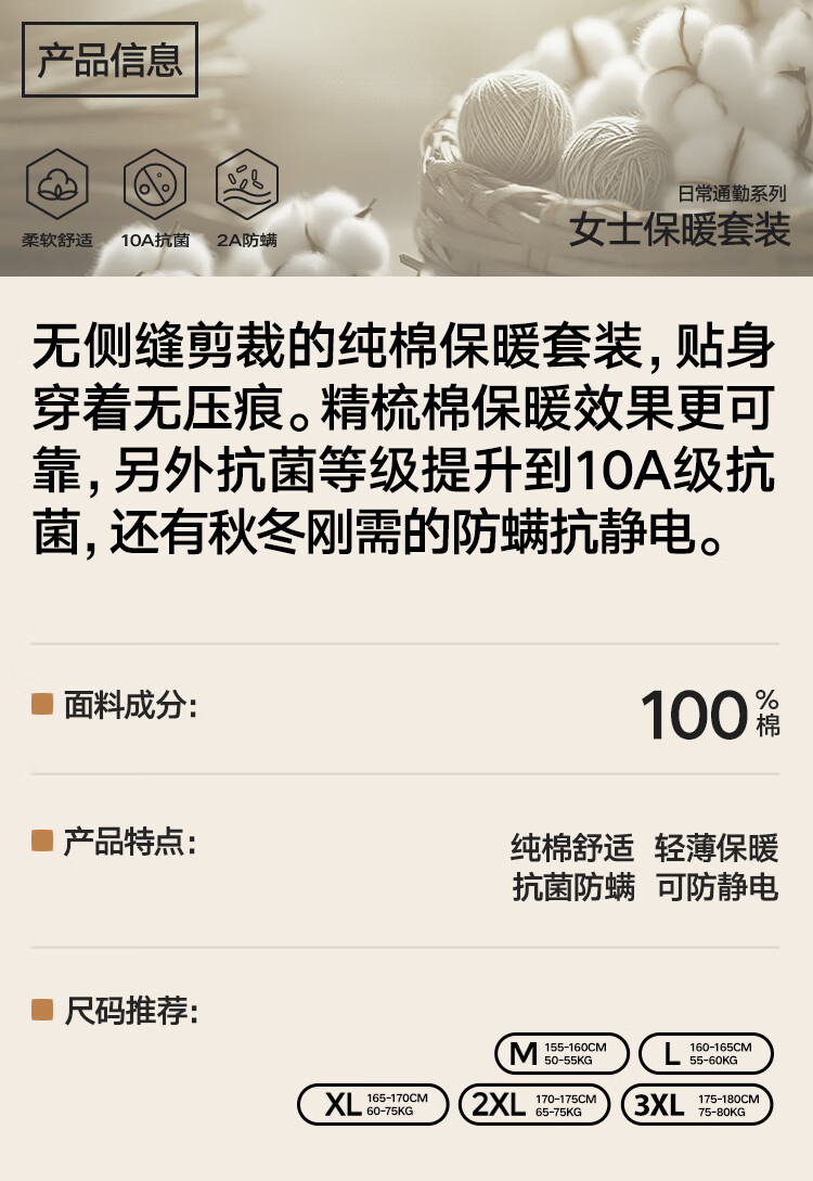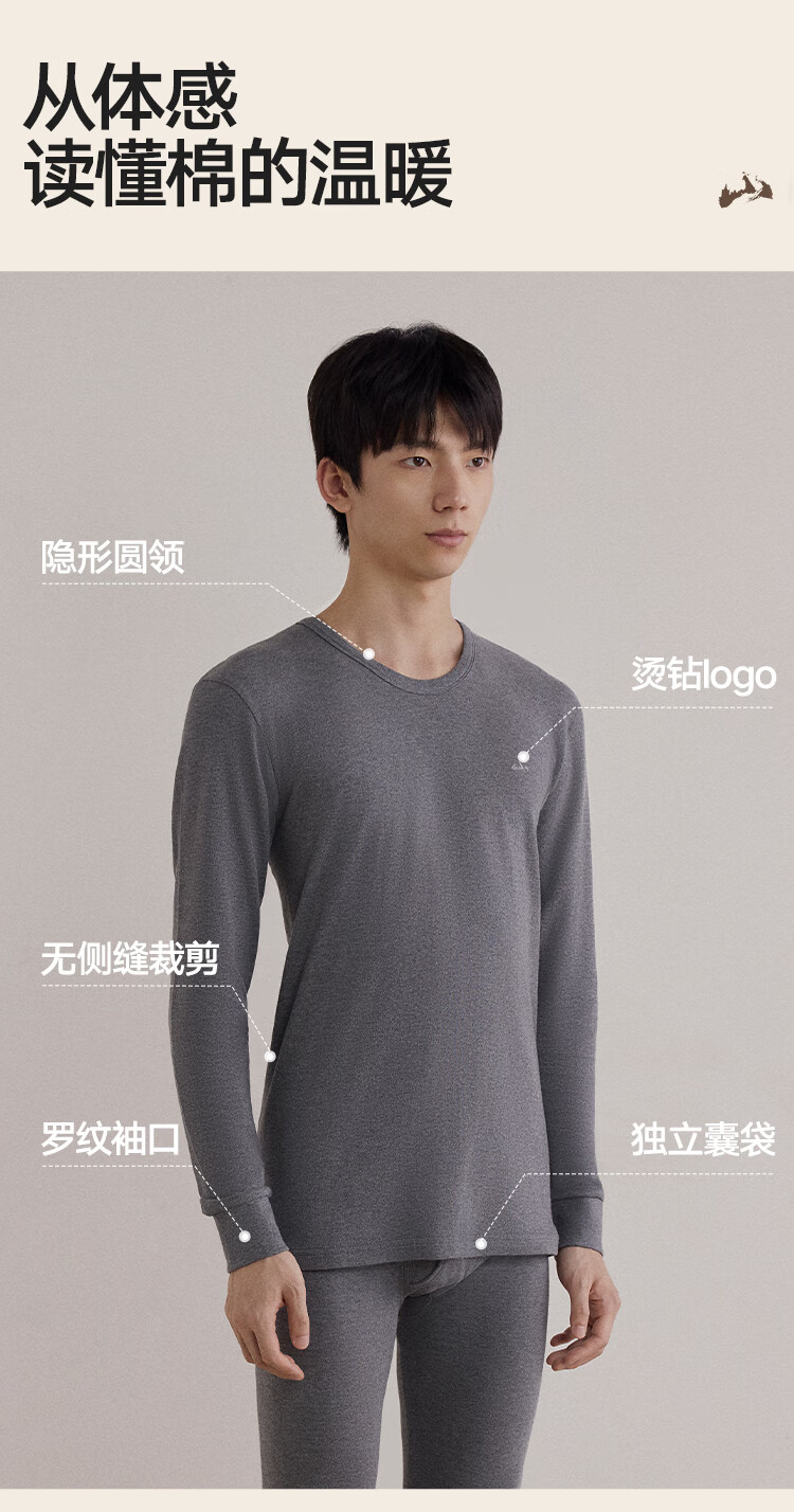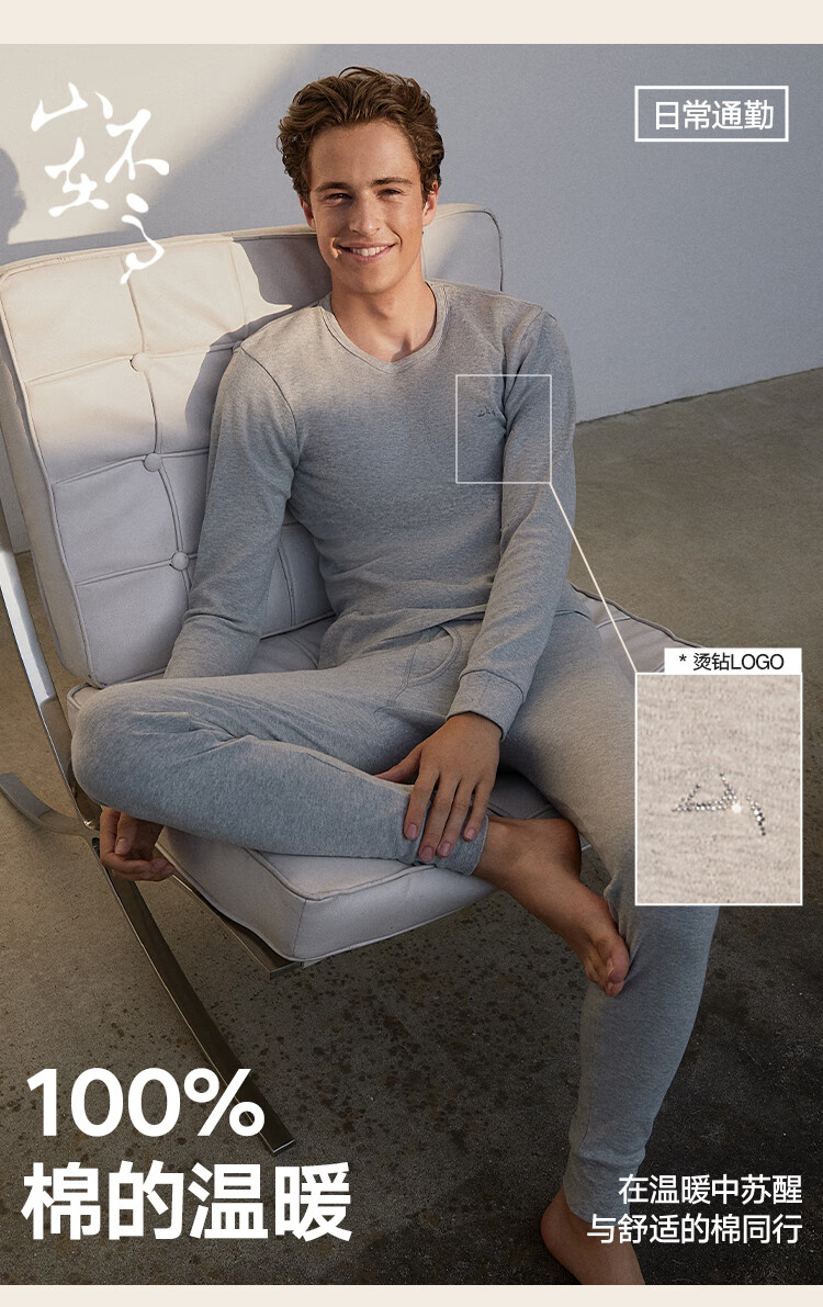 海澜之家【山不在高】秋衣秋裤男女25新品纯棉210g抗菌防螨薄保暖内衣套装