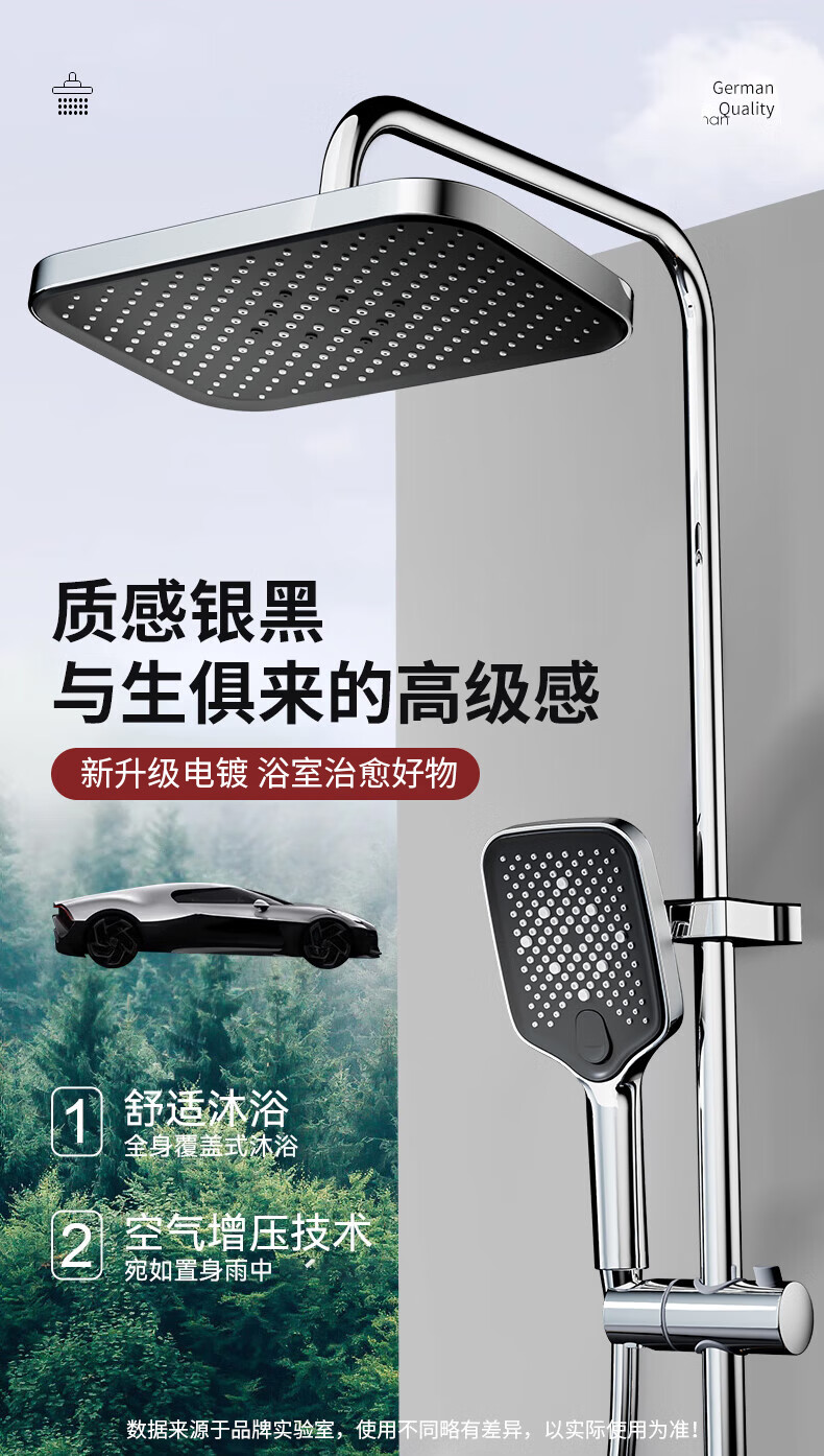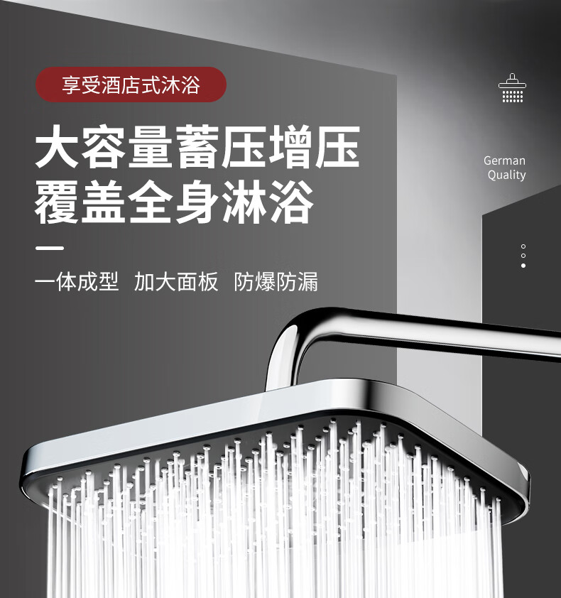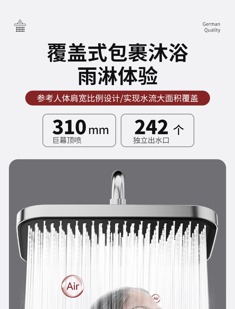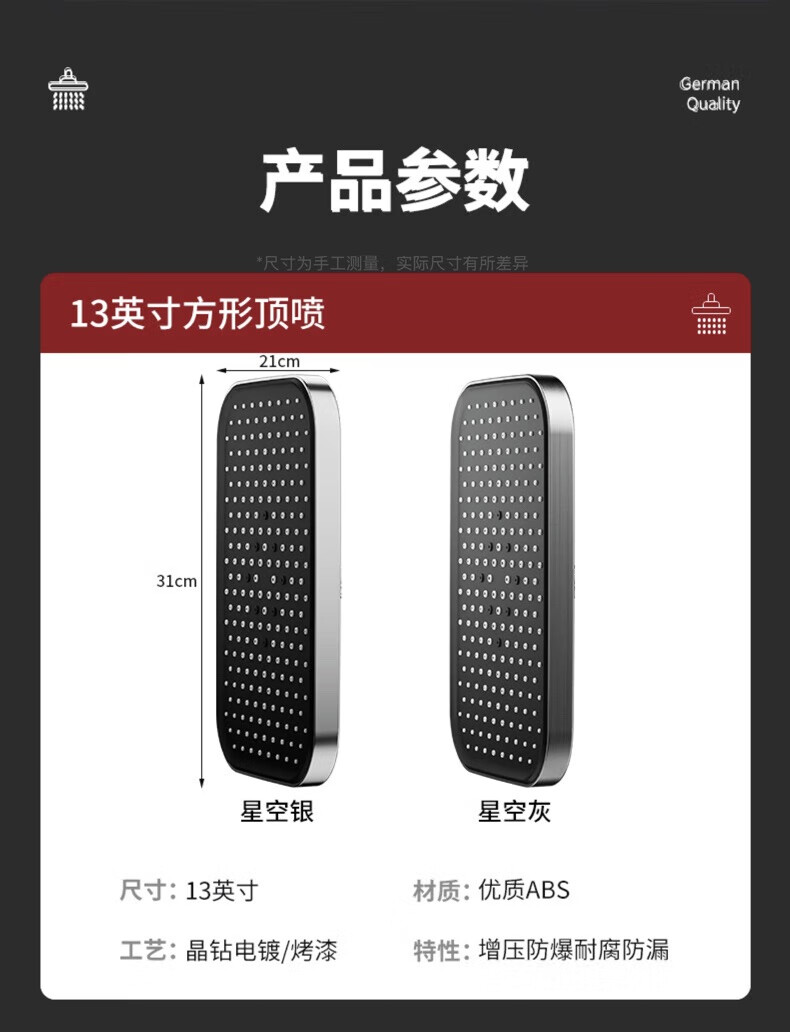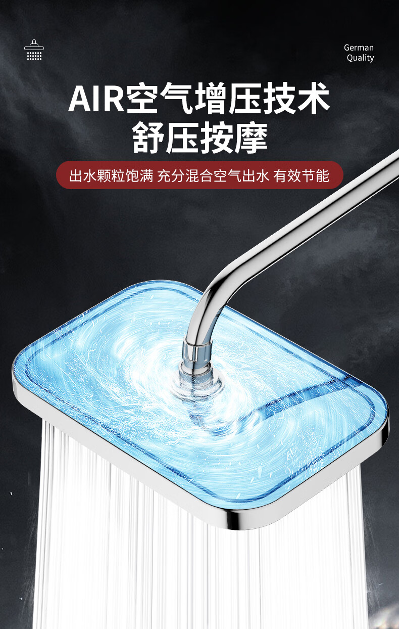 WUZORY【德国】增压花洒顶喷头家用浴室大出水顶喷花洒淋浴喷头大花洒头 方形增压大出水【13英寸】亮银 AIR空气增压丨覆盖式雨淋体验