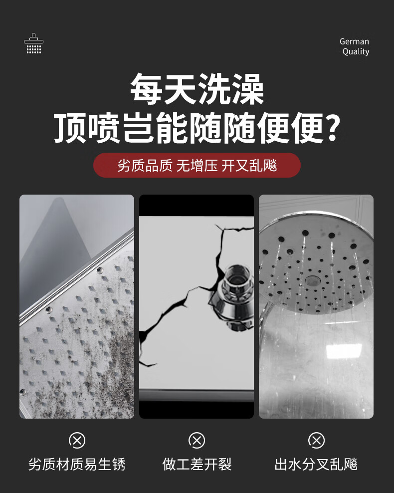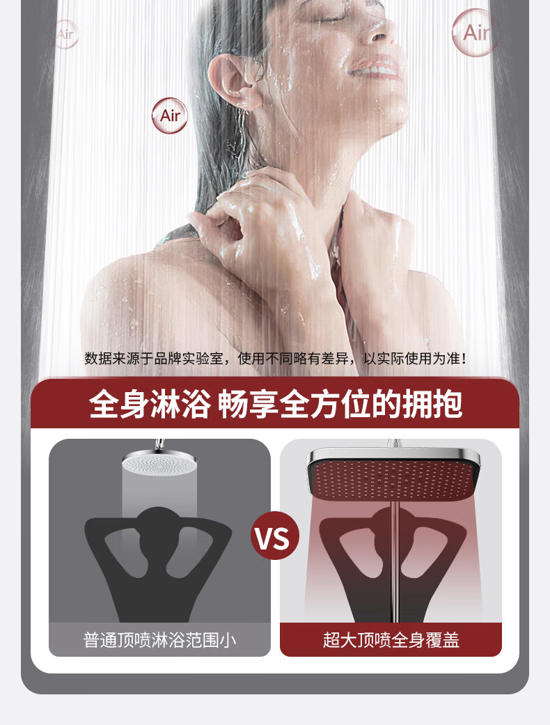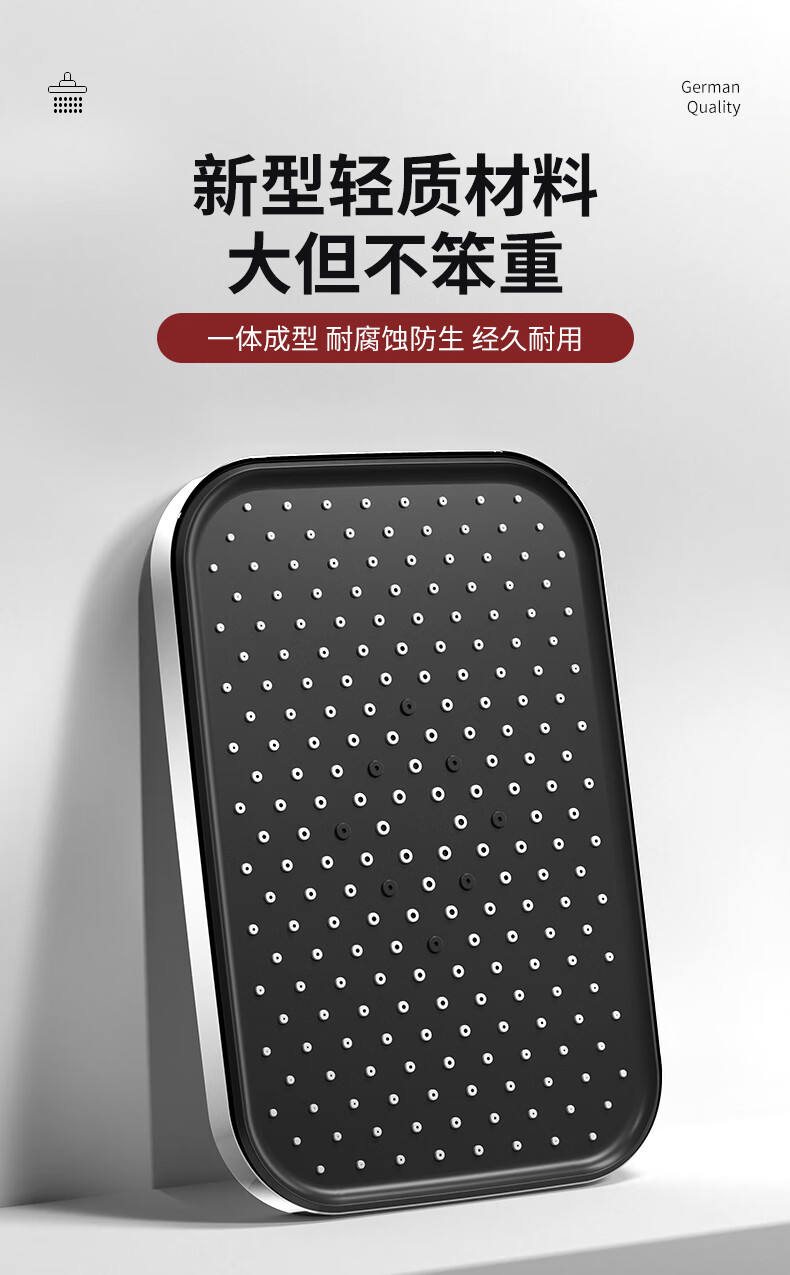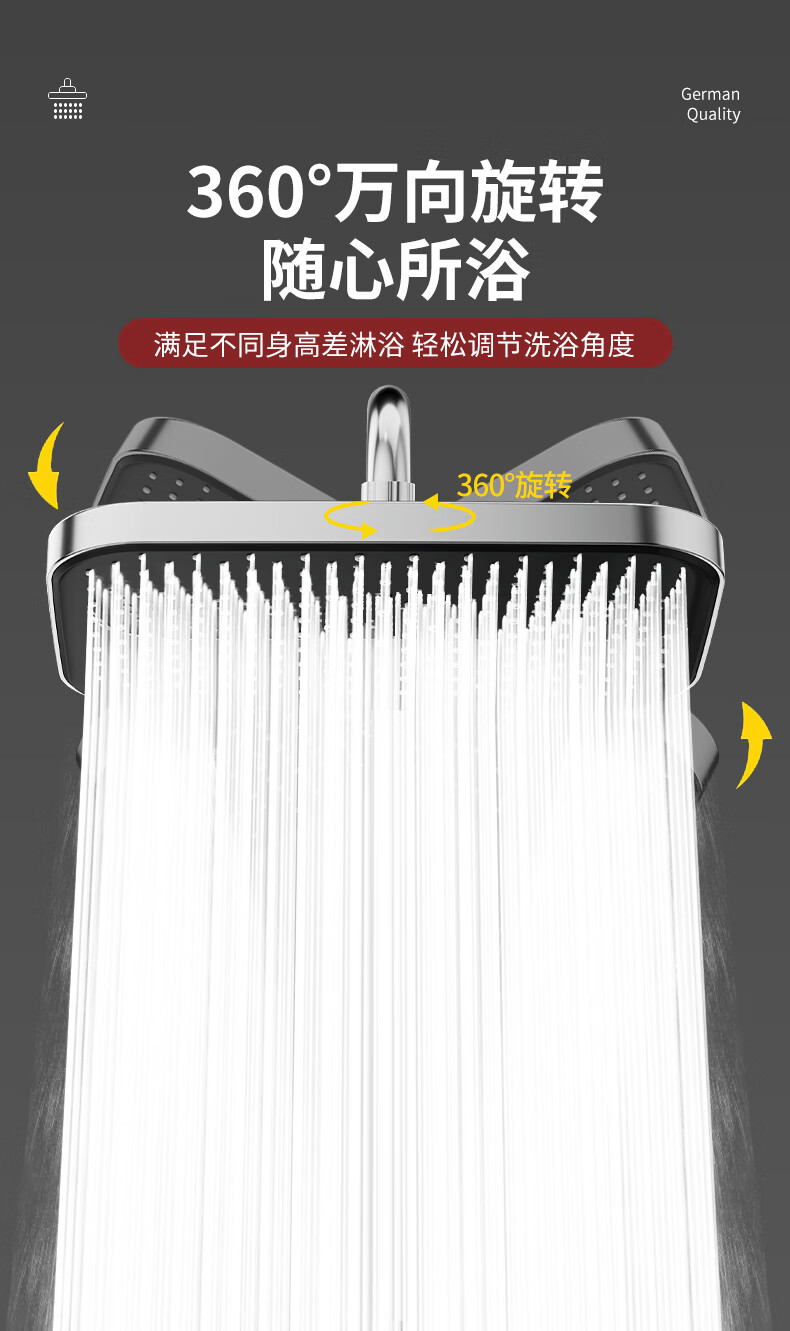 WUZORY【德国】增压花洒顶喷头家用浴室大出水顶喷花洒淋浴喷头大花洒头 方形增压大出水【13英寸】亮银 AIR空气增压丨覆盖式雨淋体验