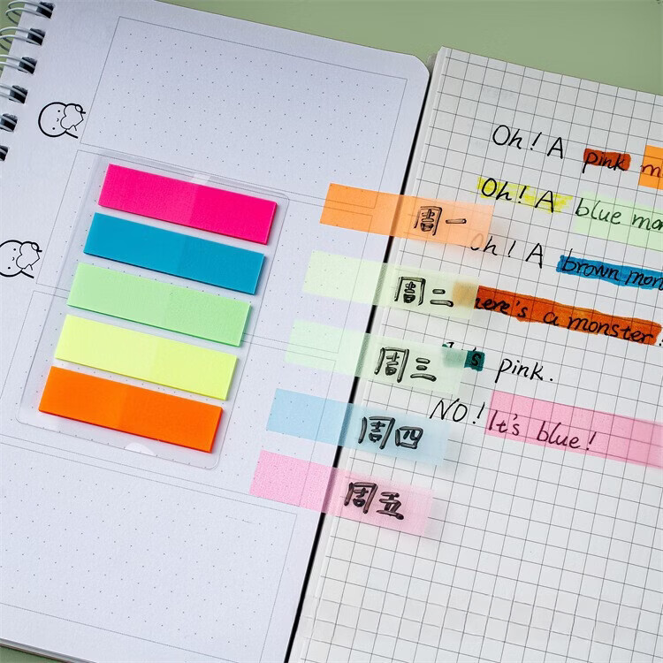 【优选直发】现货透明便利贴透视贴白色pet创意ins记事贴学生笔记便签贴 荧光平头