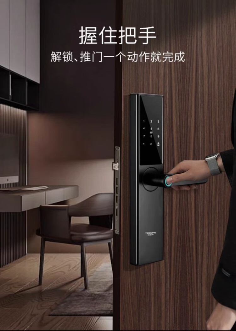 特畅恒一握开半自动智能锁家用防盗门木门公寓民宿出租房电子指纹密码锁 a53d+感应锁体 上门安装