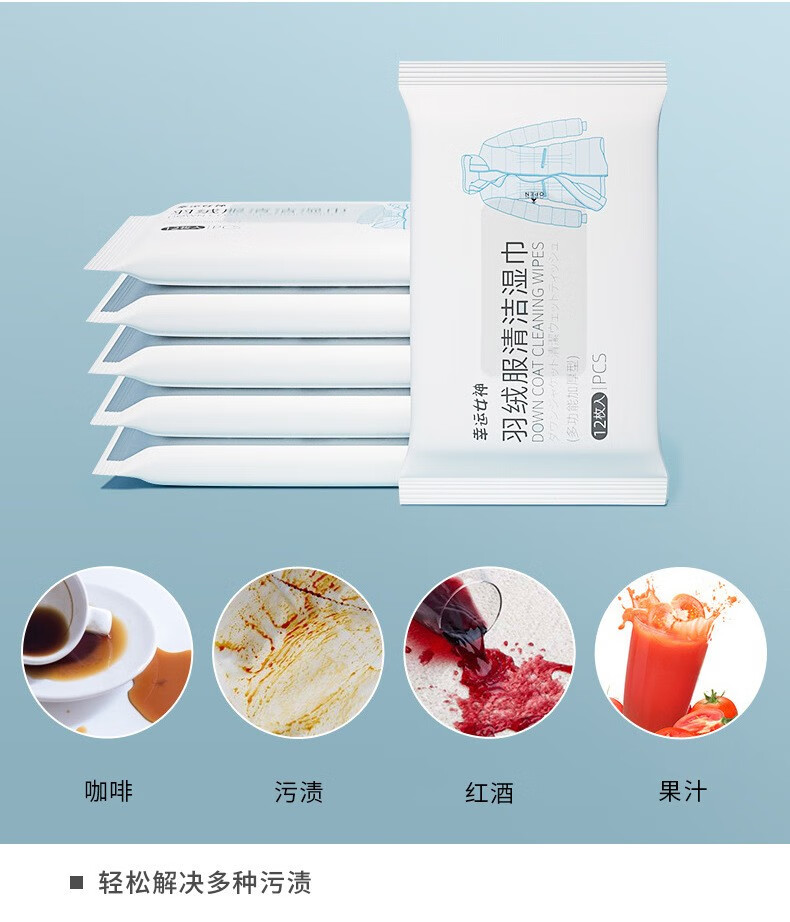 倩挥羽绒服清洁湿巾免水洗擦拭去污去油渍洗涤剂洗神器衣物湿纸巾干洗 【家庭装】羽绒服清洁湿巾12片*20包