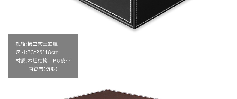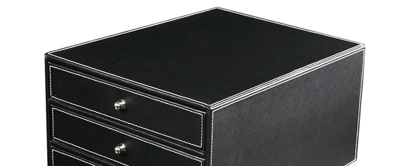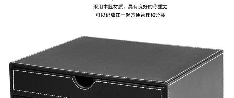 利蓝(LEADLAND)办公室桌面文件柜文具用品抽屉式商务A4文件管理箱皮革资料收纳盒财务会计整理箱 黑色三抽屉A008