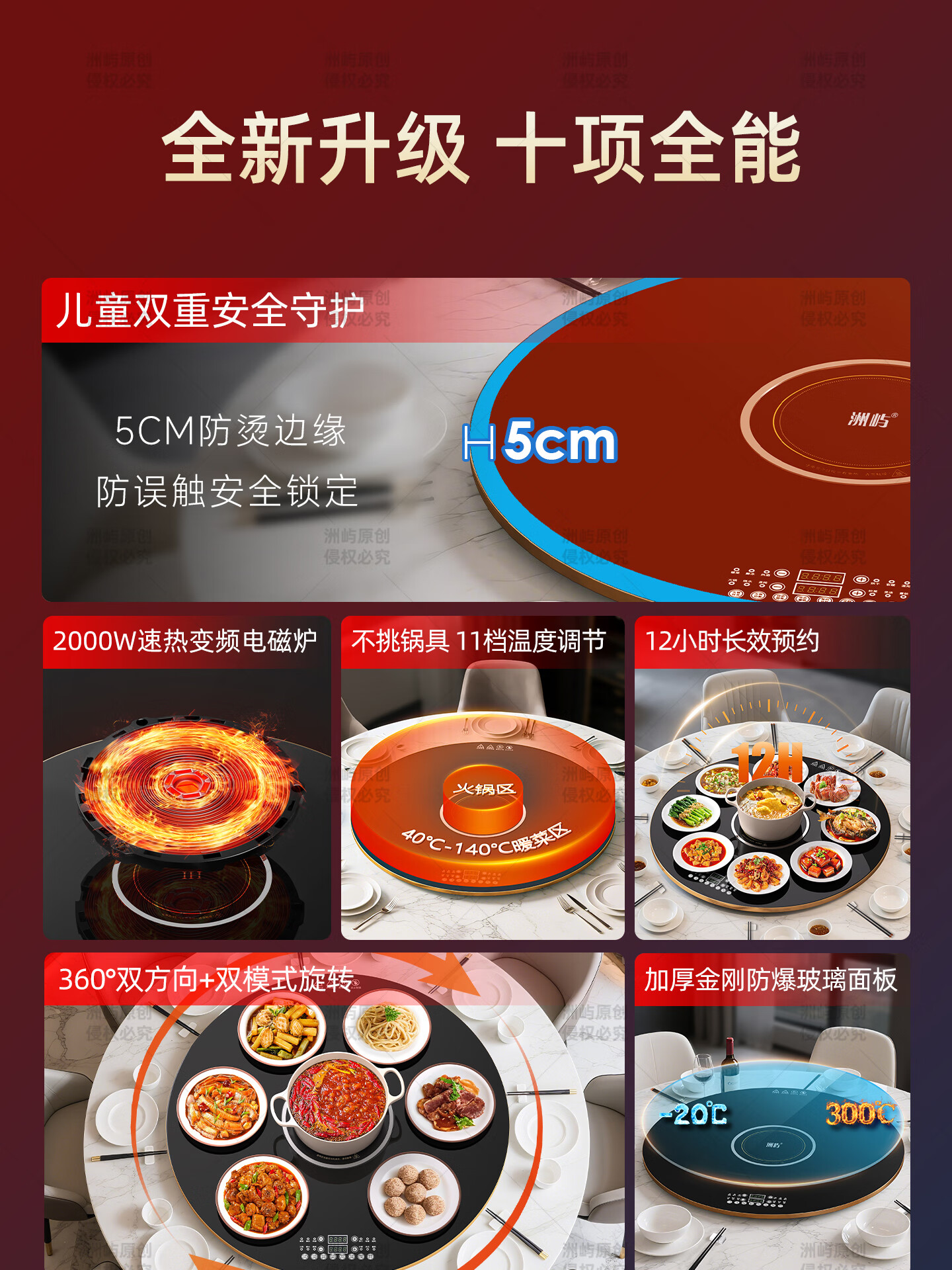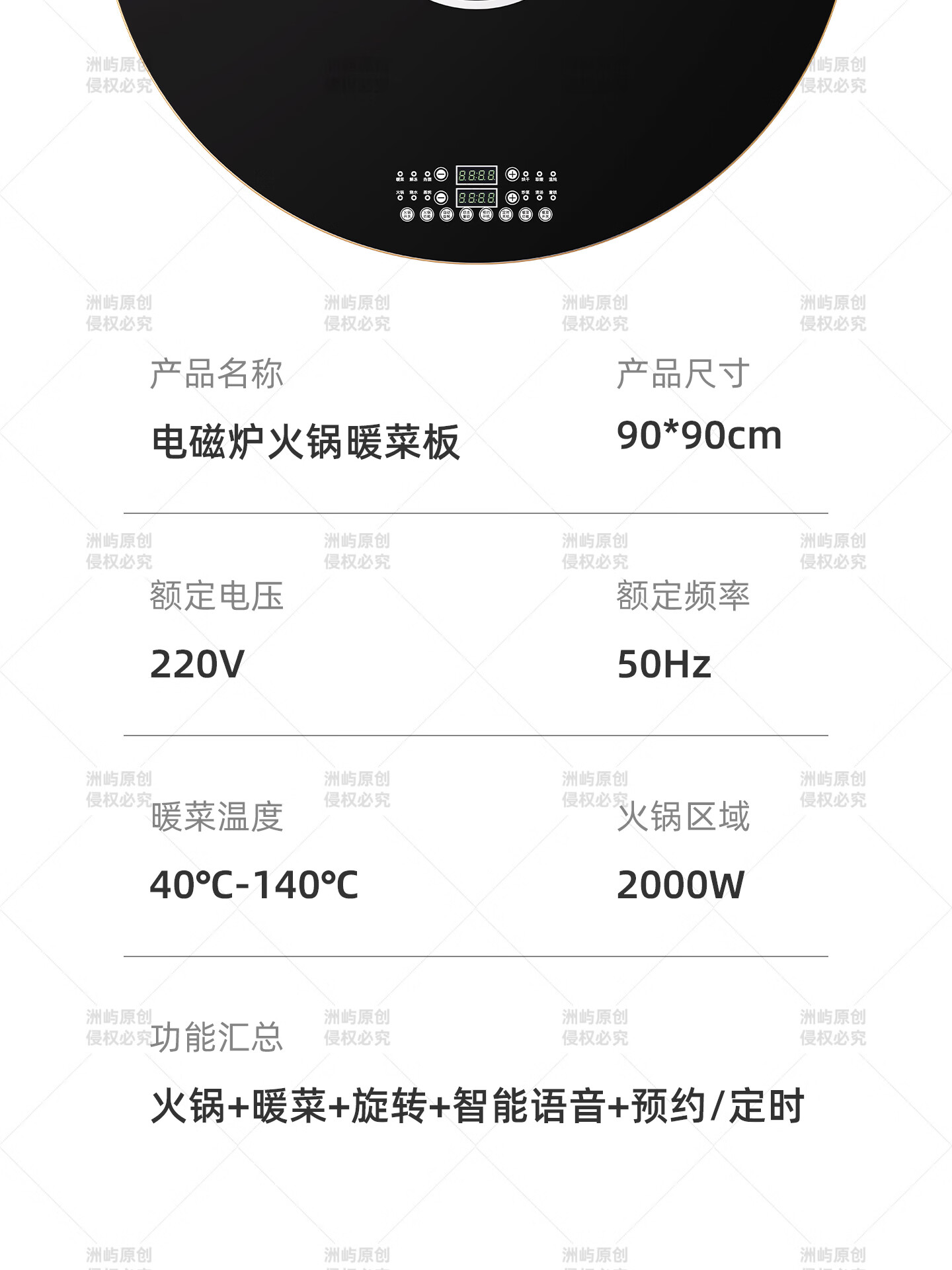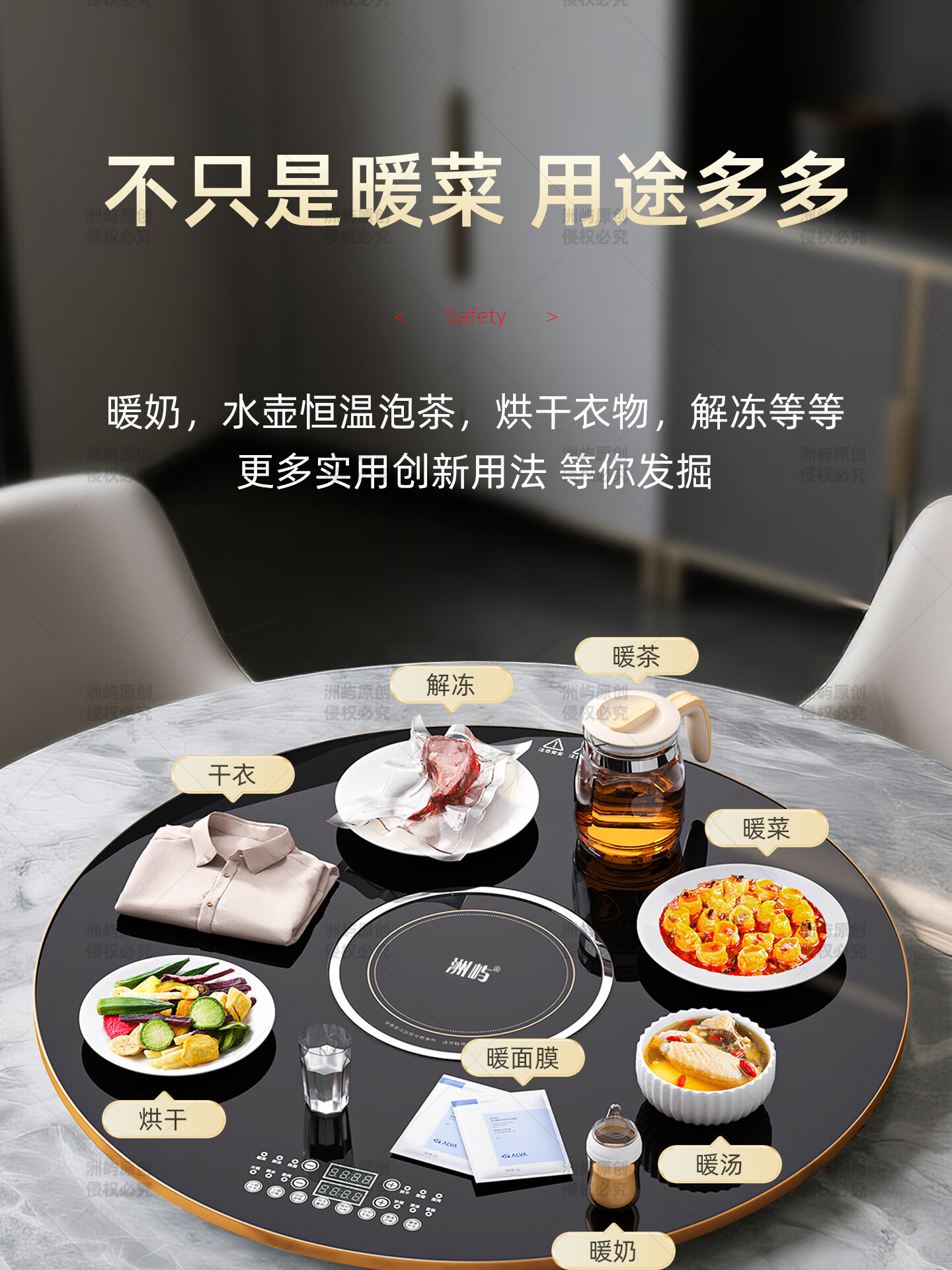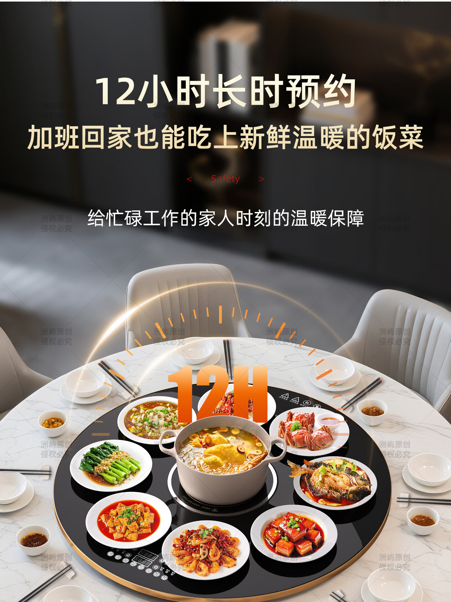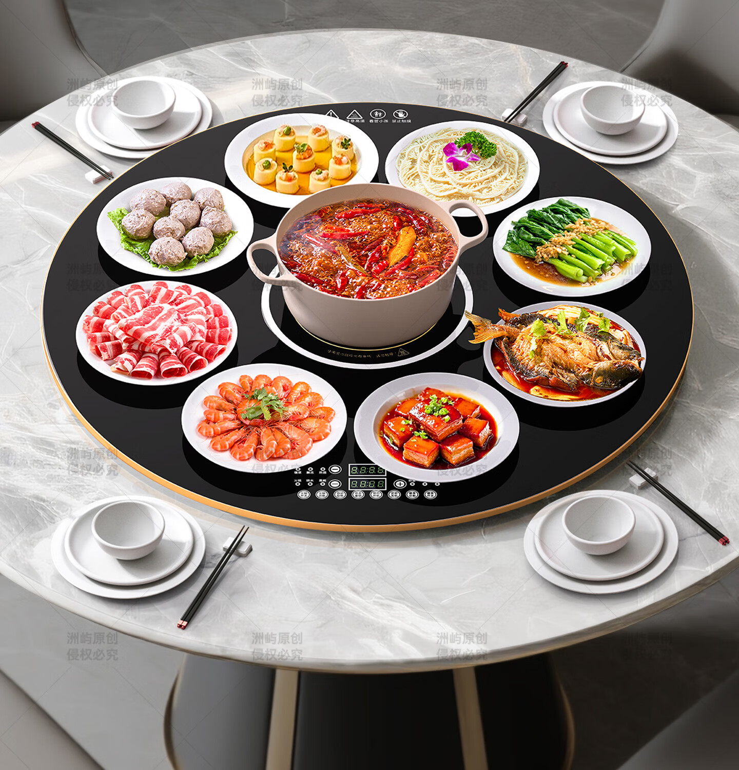洲屿饭菜保温板暖菜板带电磁炉火锅2000w餐桌饭桌自动电动转盘加热保暖智能语音加热桌垫调温不挑锅具 80cm | 黑-电磁炉+电动旋转+儿童安全锁