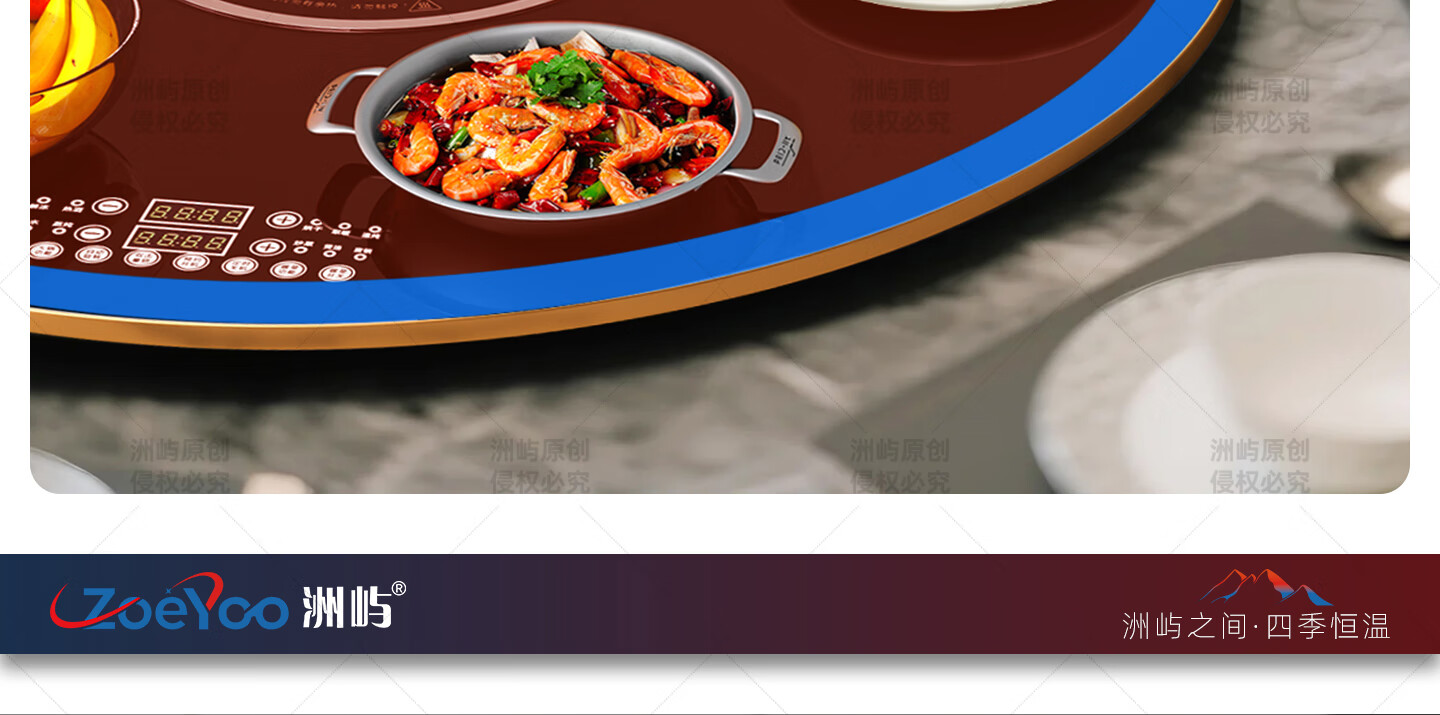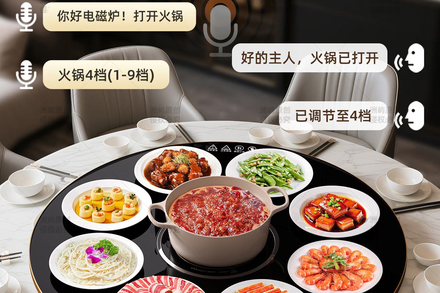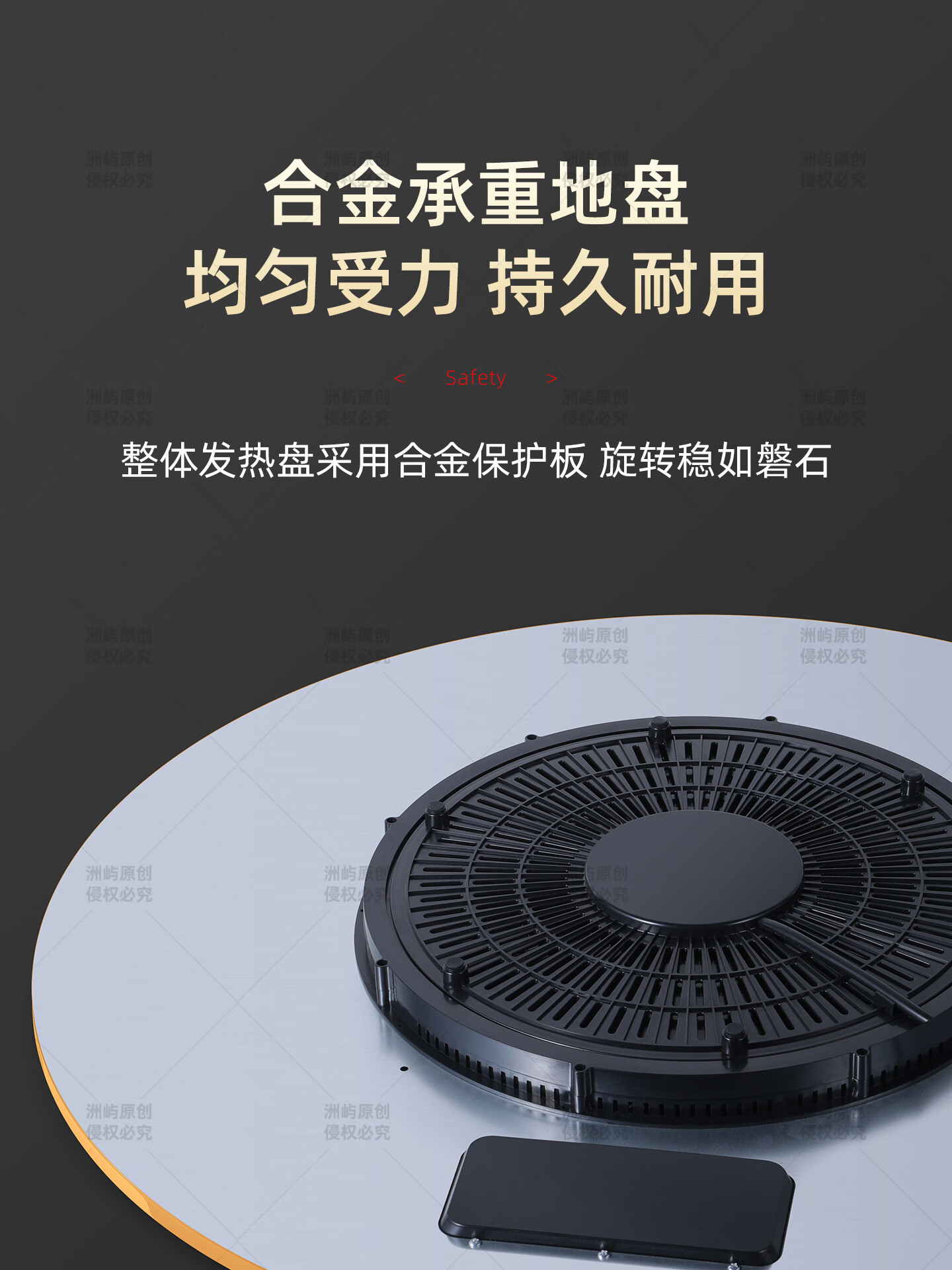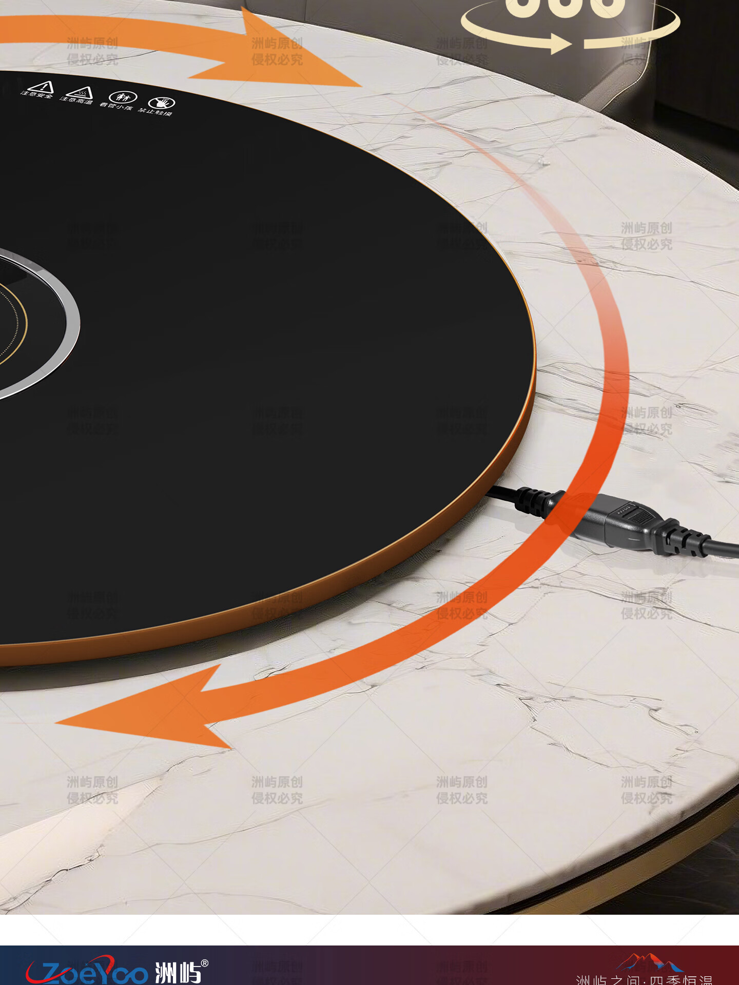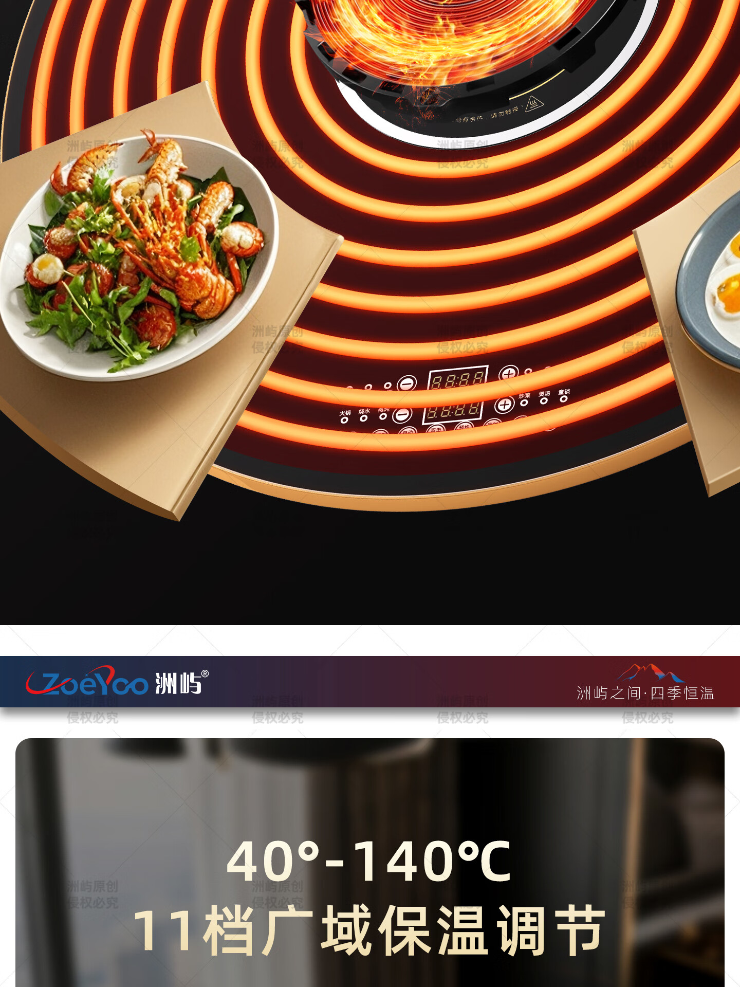 洲屿饭菜保温板暖菜板带电磁炉火锅2000w餐桌饭桌自动电动转盘加热保暖智能语音加热桌垫调温不挑锅具 80cm | 黑-电磁炉+电动旋转+儿童安全锁