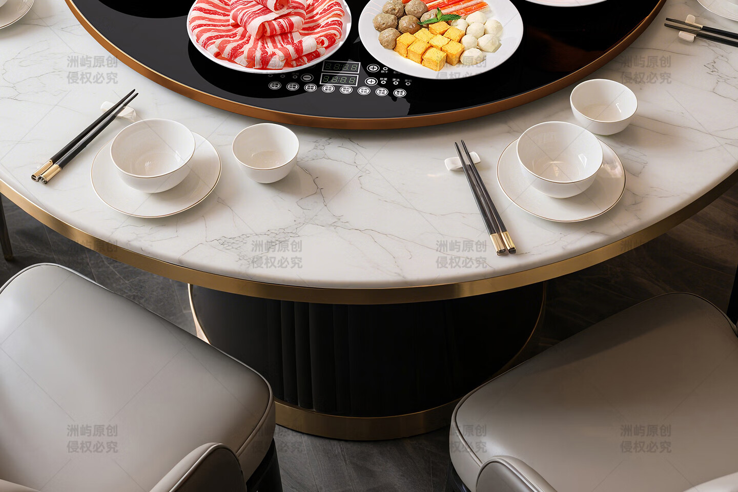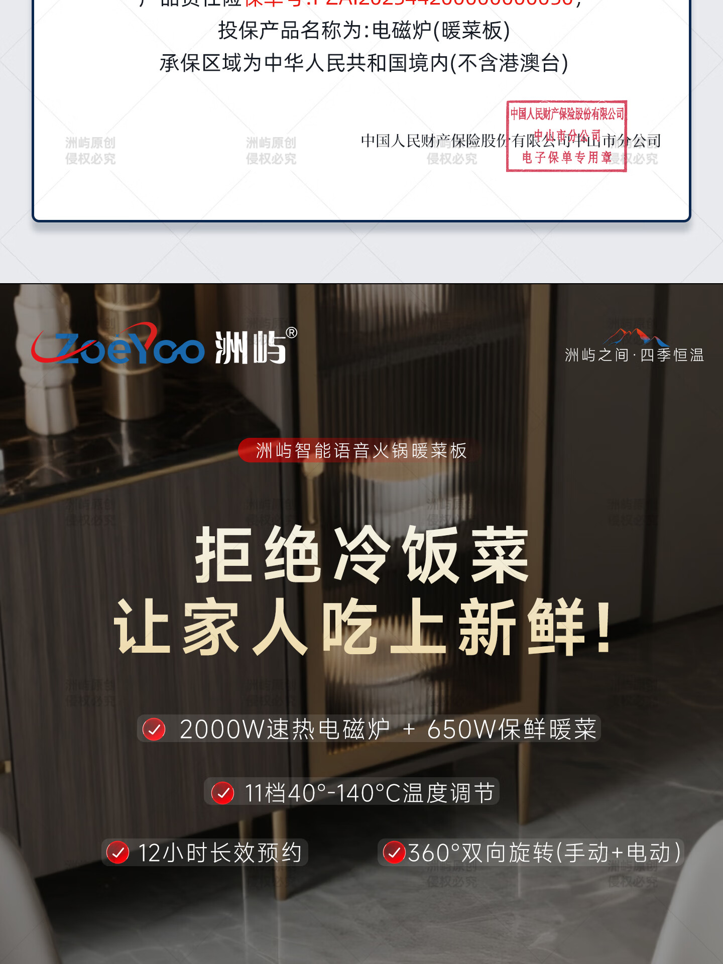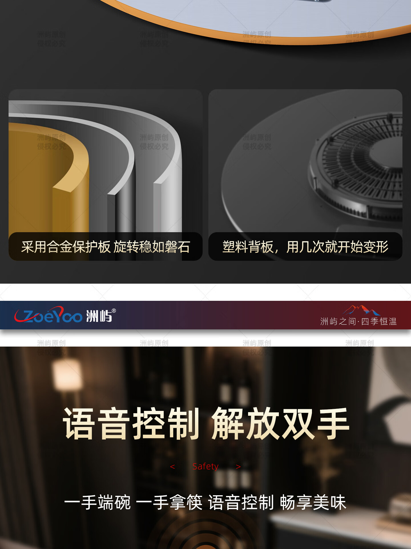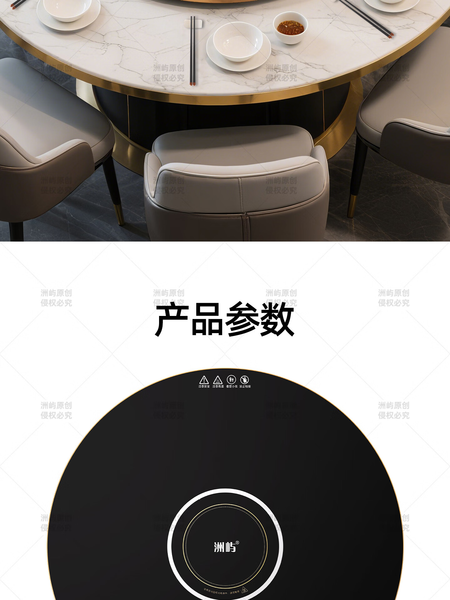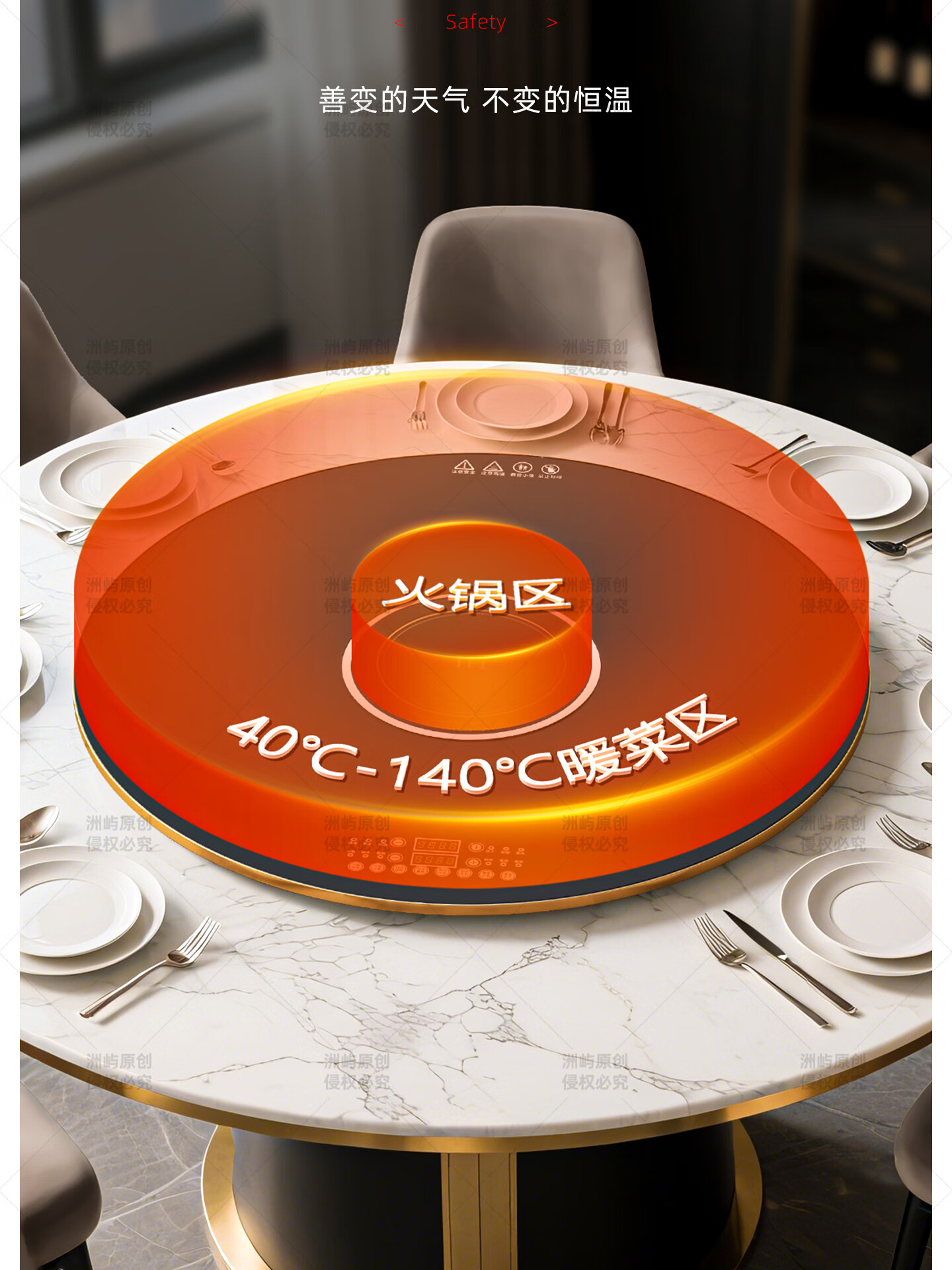 洲屿饭菜保温板暖菜板带电磁炉火锅2000w餐桌饭桌自动电动转盘加热保暖智能语音加热桌垫调温不挑锅具 80cm | 黑-电磁炉+电动旋转+儿童安全锁