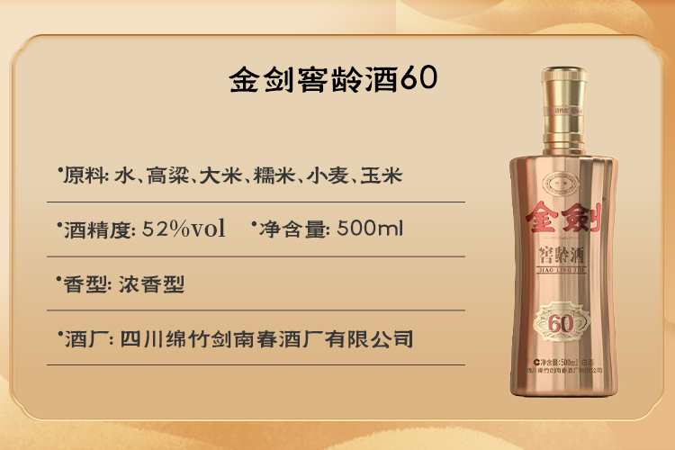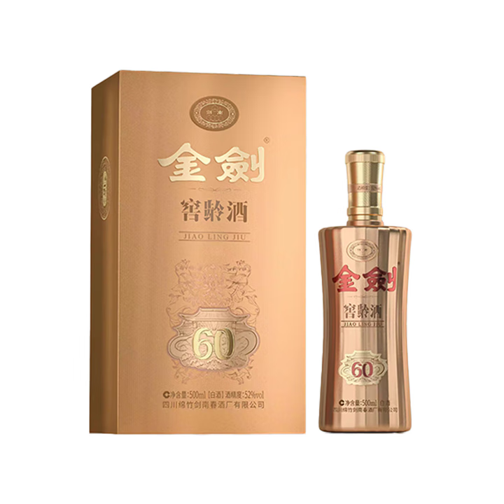 剑南春金剑窖龄酒 浓香型白酒 高度酒 礼盒装 送礼 聚餐 自饮 招待A 52度 500mL 2瓶 【剑南春·金剑窖龄酒60 2瓶配礼袋】