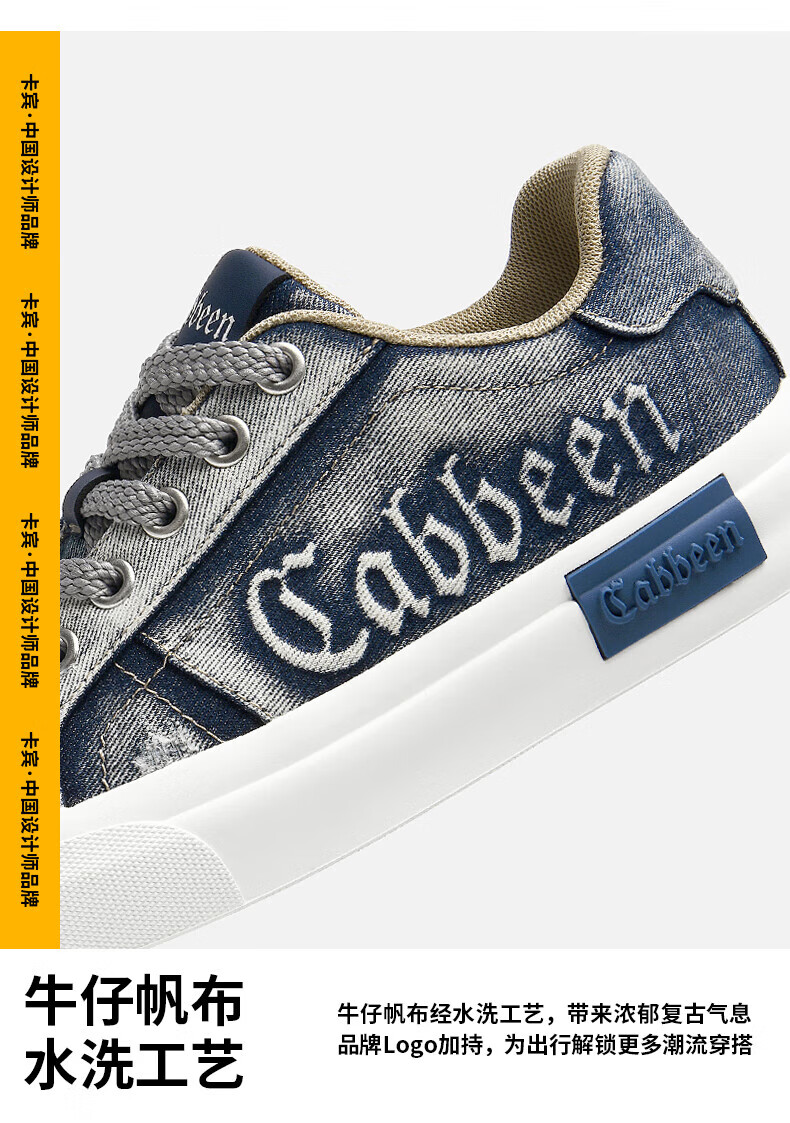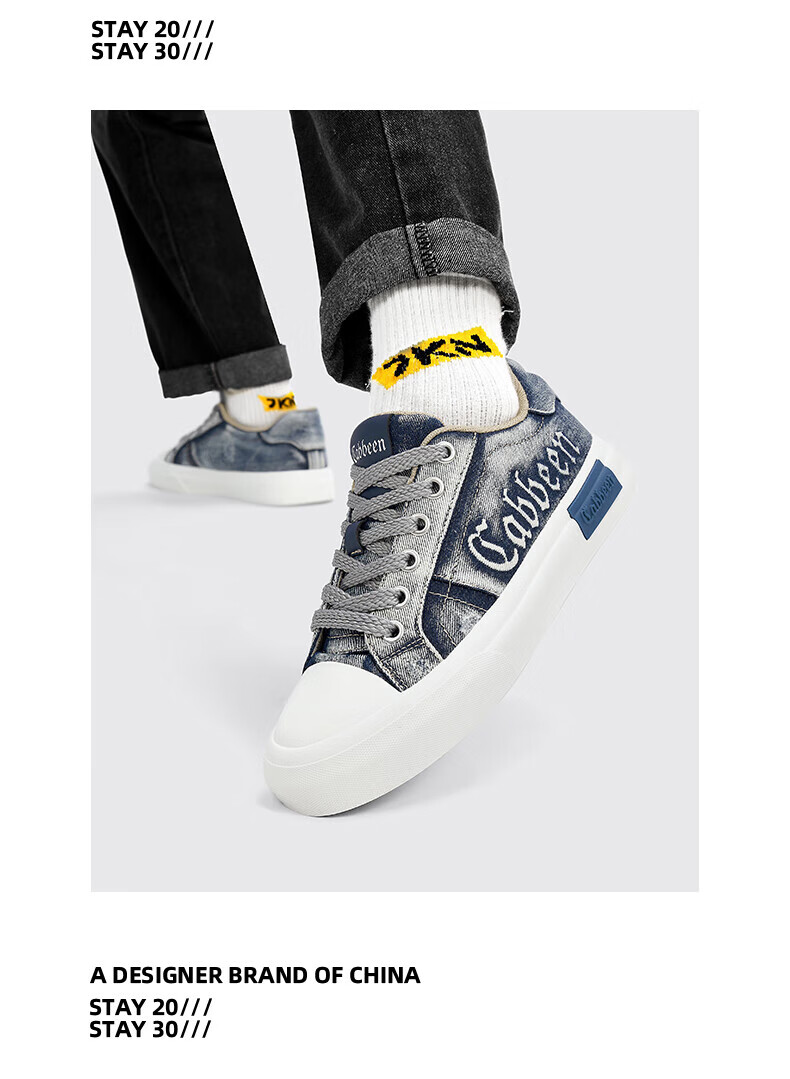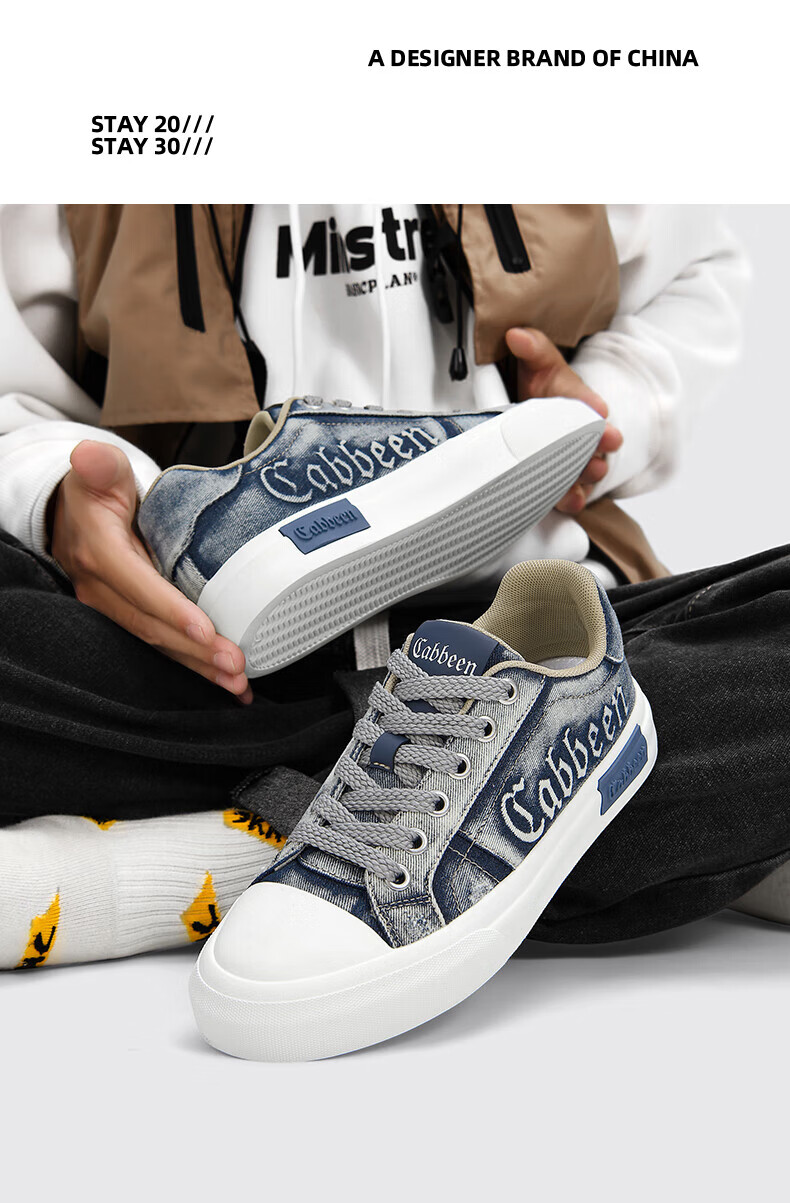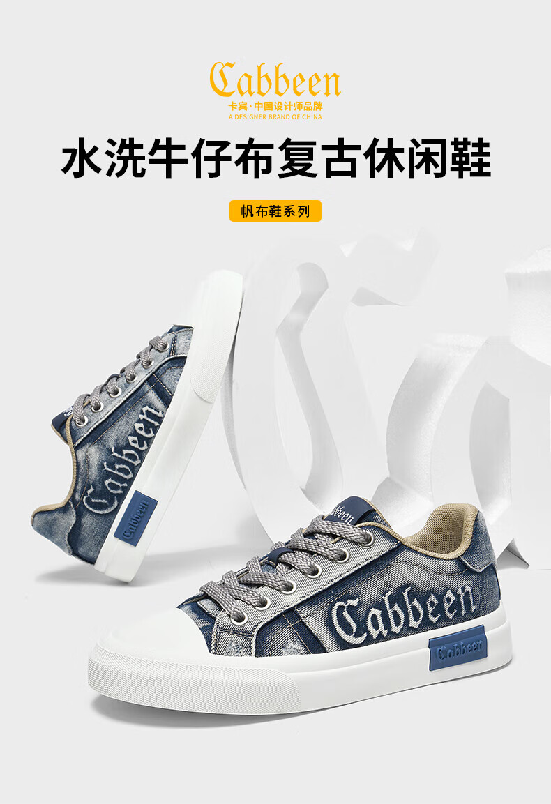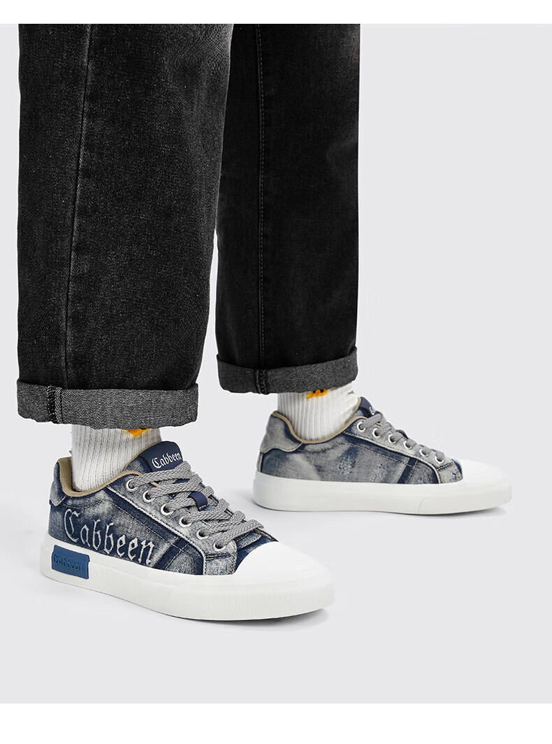 卡宾男鞋秋冬新款低帮帆布鞋男百搭休闲板鞋男潮流复古水洗设计鞋子男 蓝色 41 【=运动鞋42码】