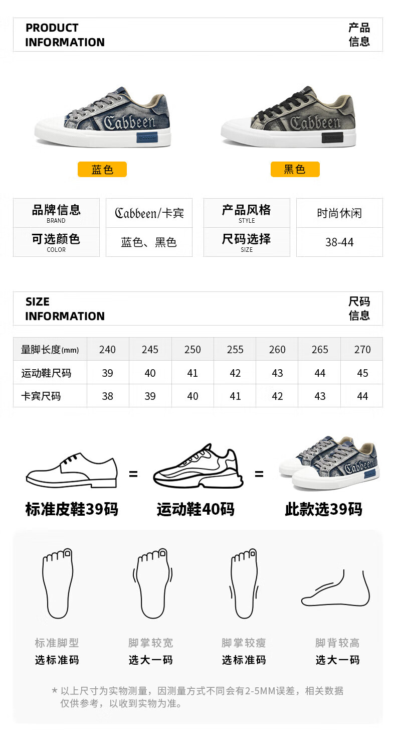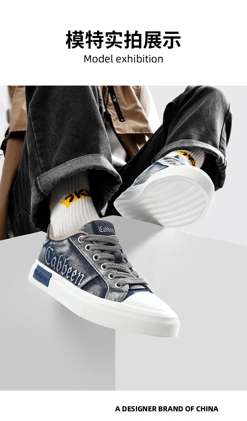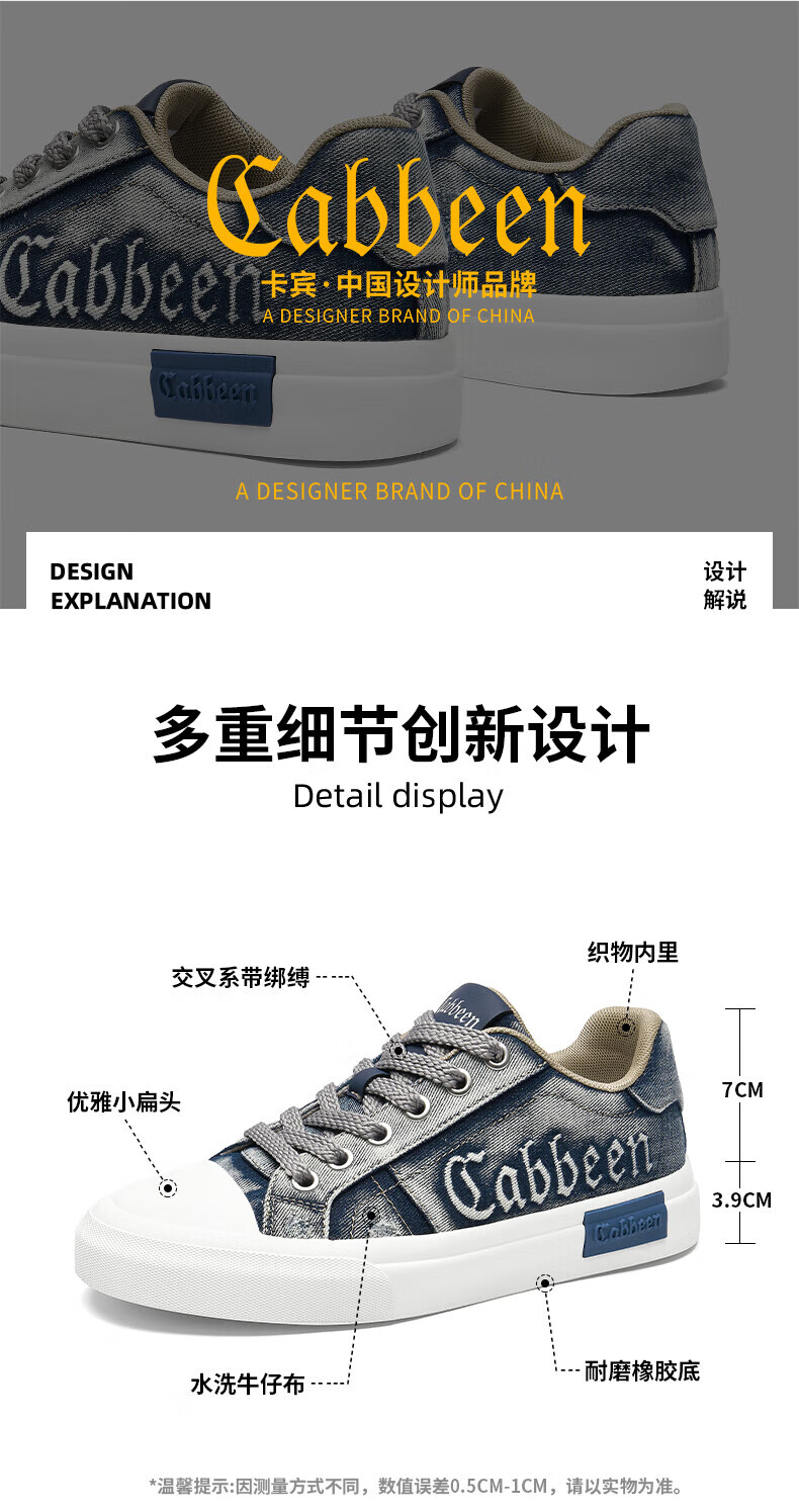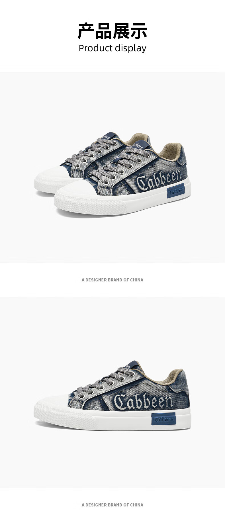 卡宾男鞋秋冬新款低帮帆布鞋男百搭休闲板鞋男潮流复古水洗设计鞋子男 蓝色 41 【=运动鞋42码】