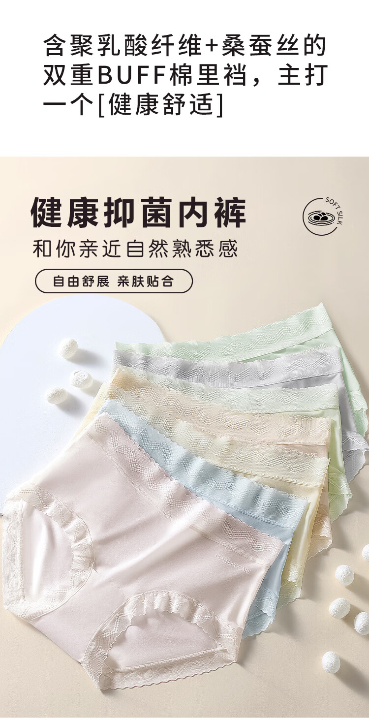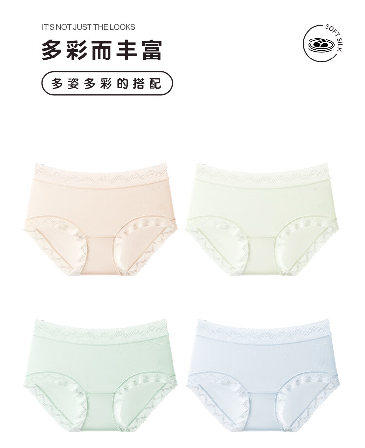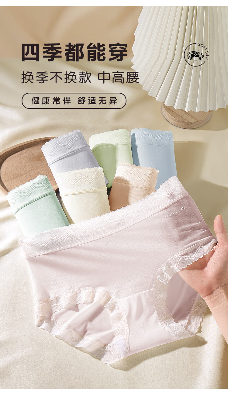 芬腾可安7条【含桑蚕丝聚乳酸抑菌里料】超弹无痕中高腰三角女士内裤女 组合一(浅肤,蓝色,草绿,浅粉,浅灰,绿色,嫩黄) XL (110-130斤) ((码数偏小,建议拍大一码)