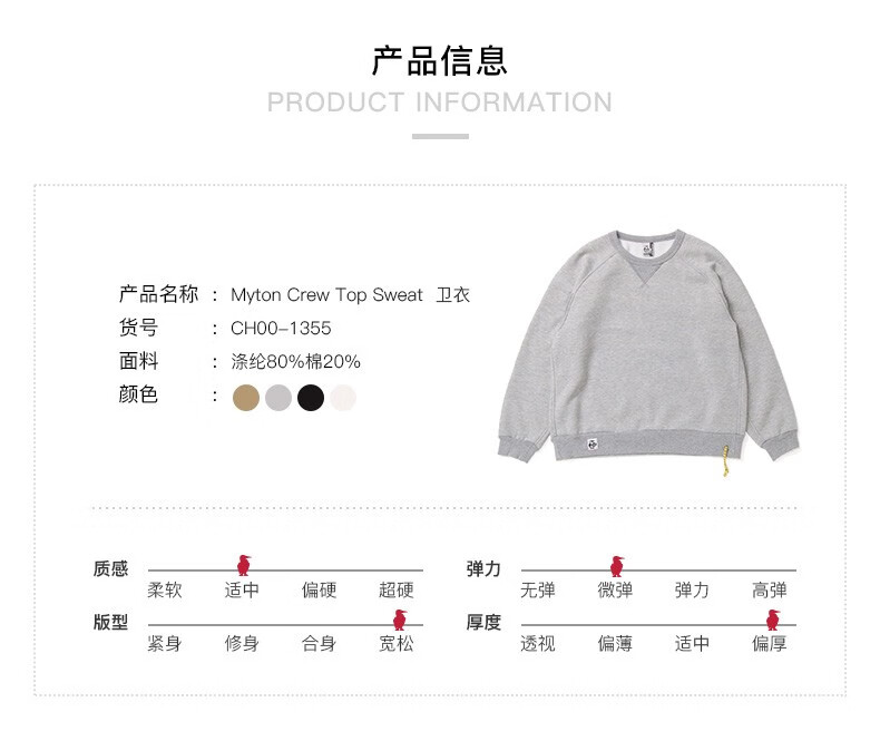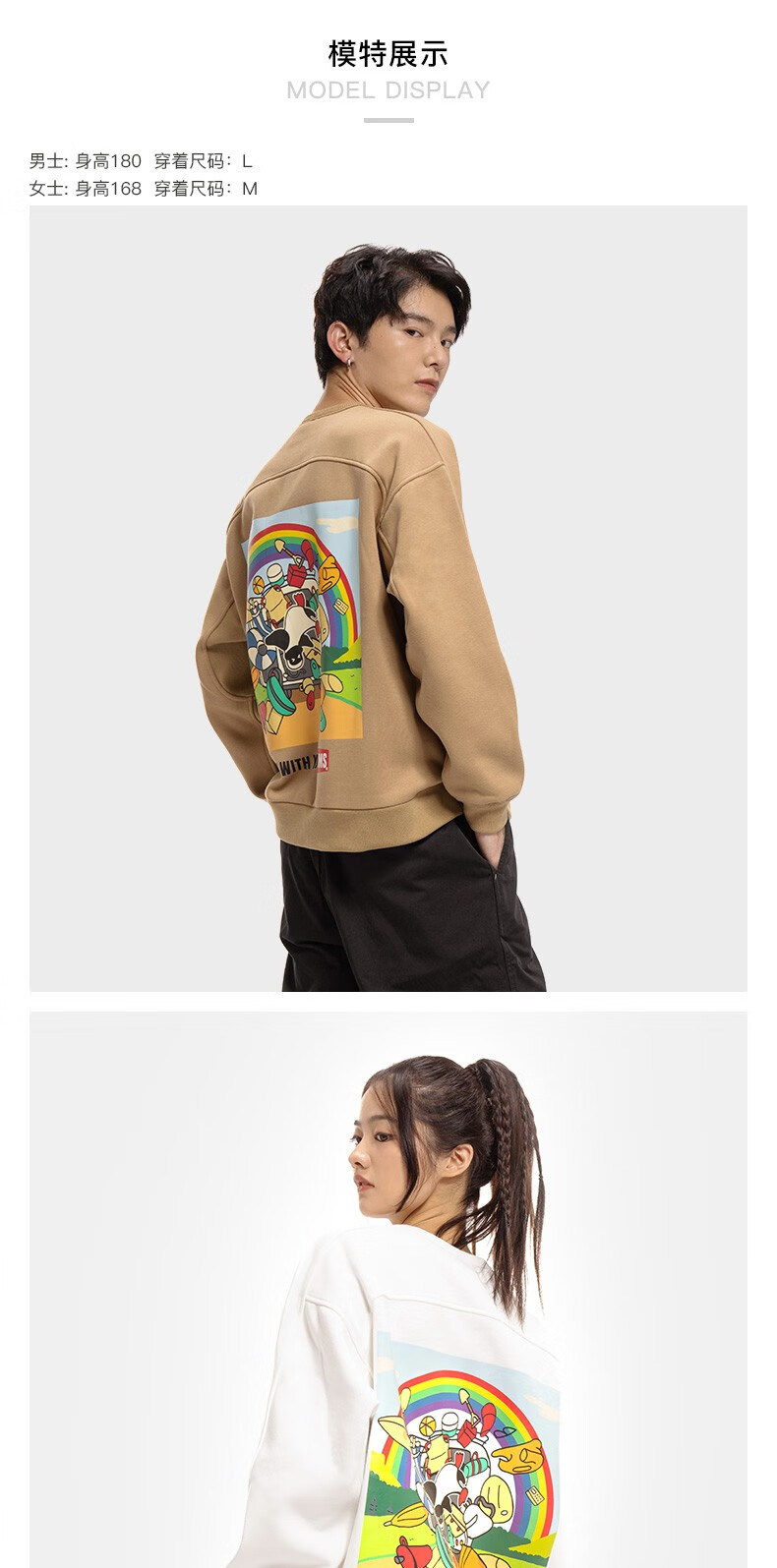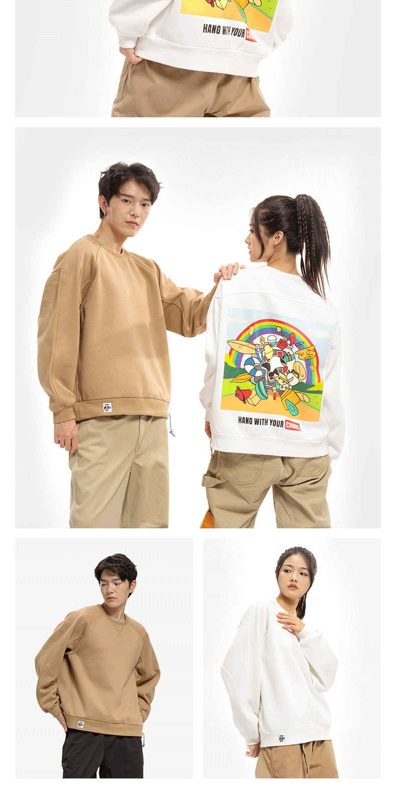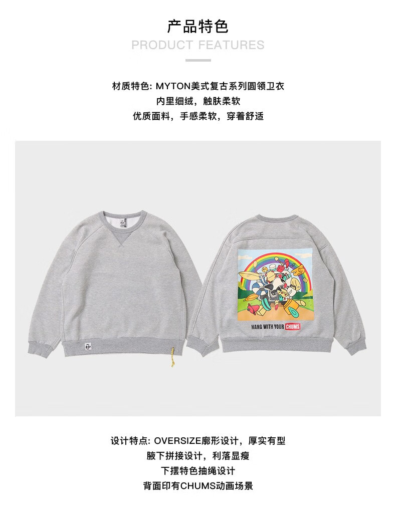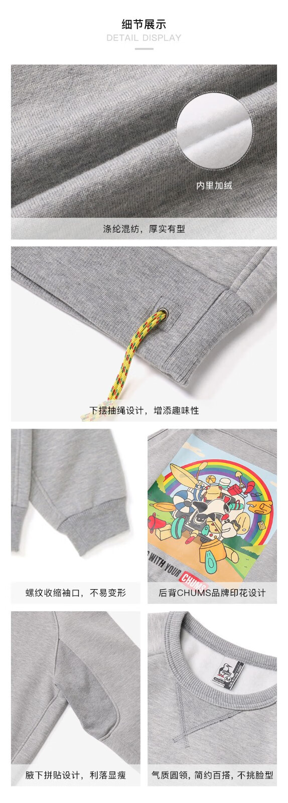 CHUMS洽洽鸟 美式复古情侣款圆领印花宽松加绒保暖卫衣CH00-1355 白色W001 XS