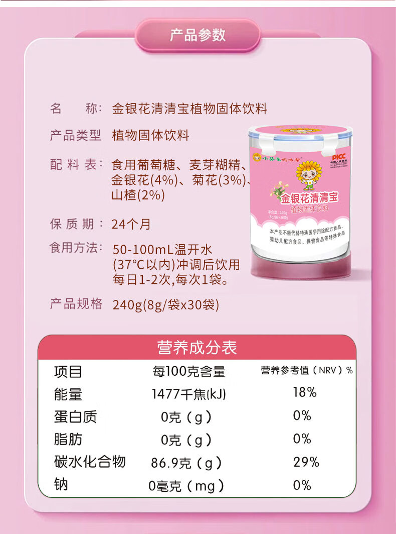 小葵花妈妈咪帮金银花清清宝婴儿1-3岁降宝宝火脾胃清火宝成人药京自東药营 一盒【体验装】