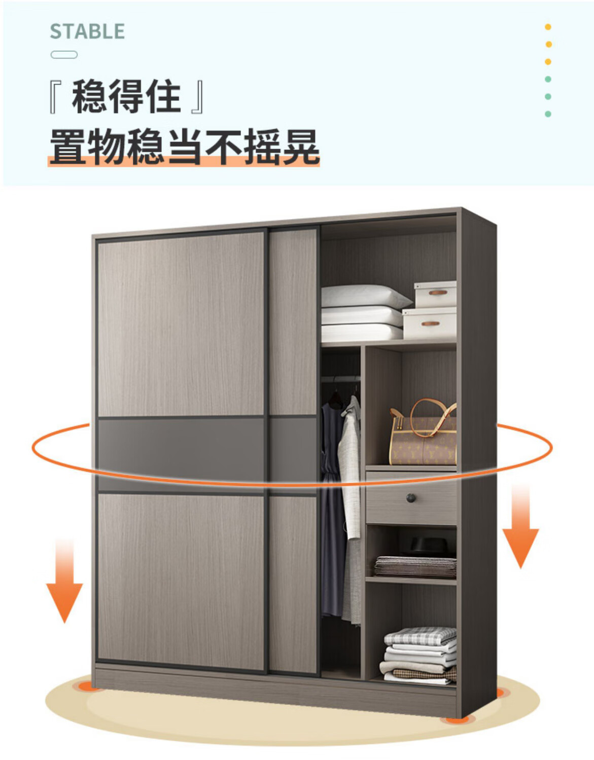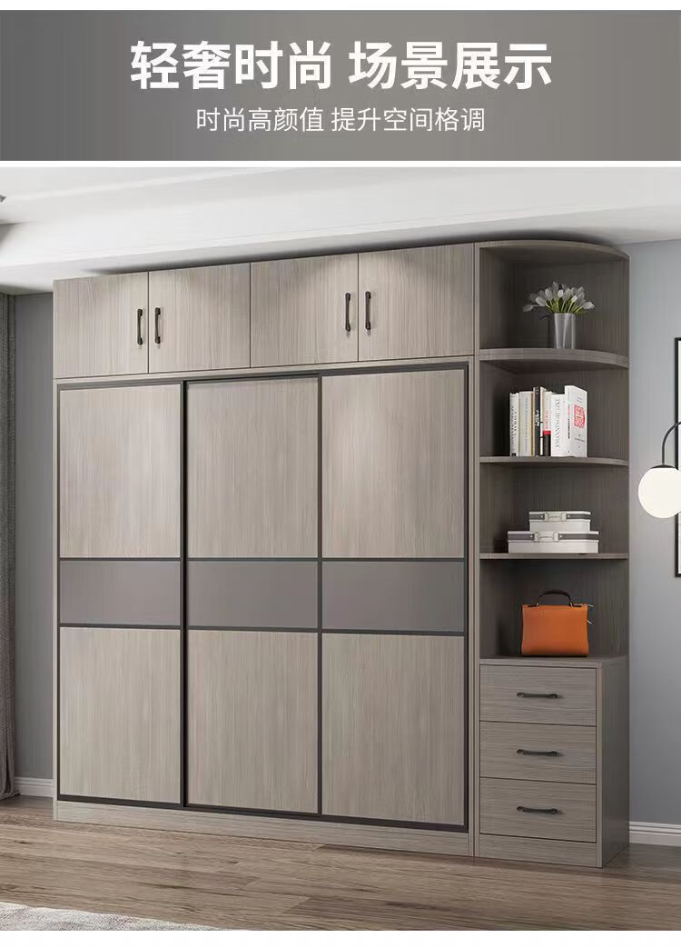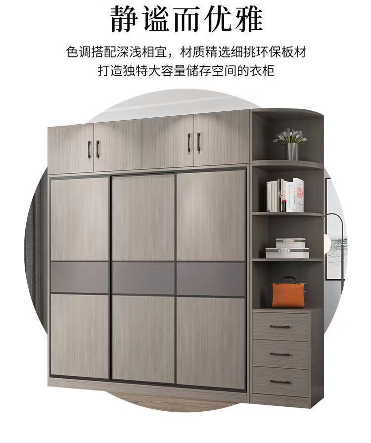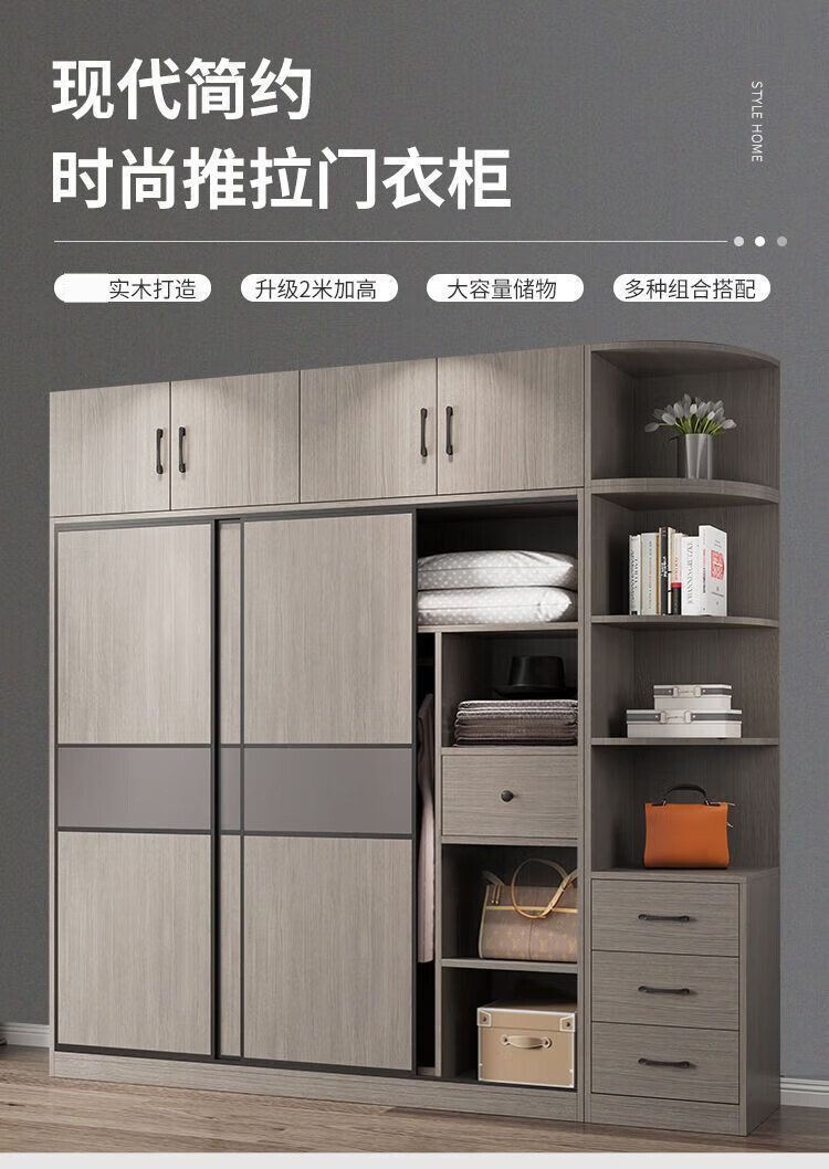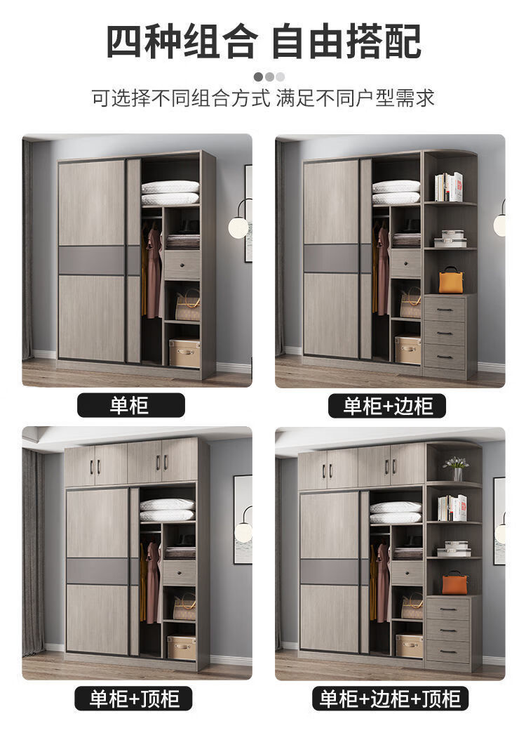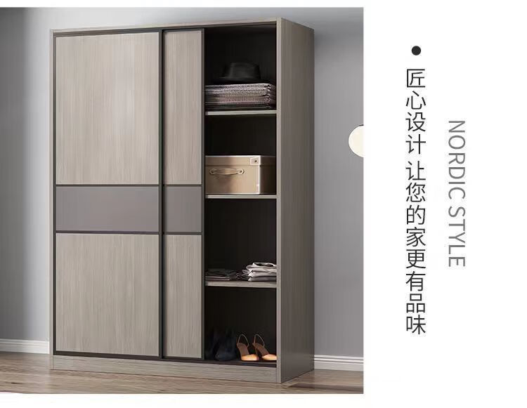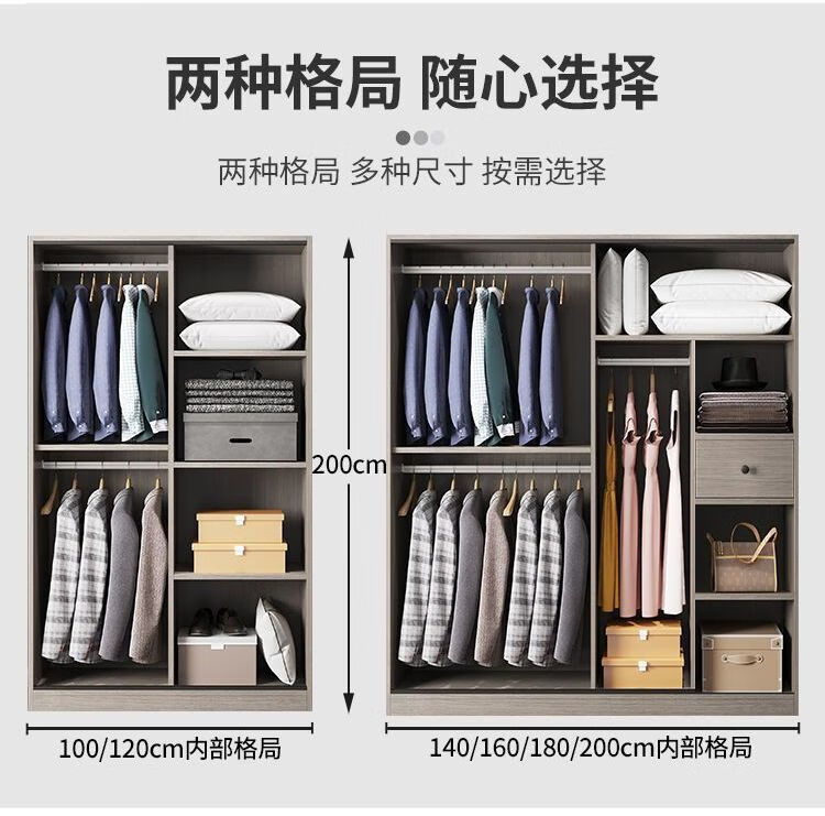 布卡格2025新款木推拉门衣柜家用卧室组装小户型出租房用实木收纳衣橱 送货入户[升级加厚] 100单柜[升级板材]