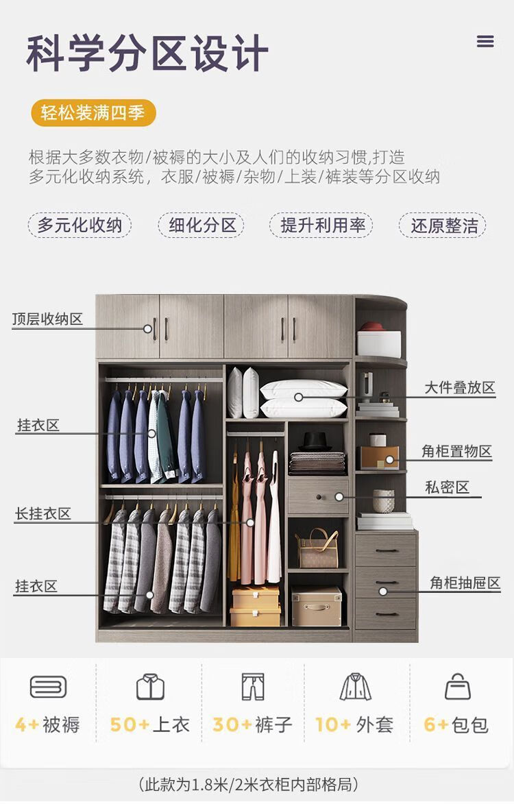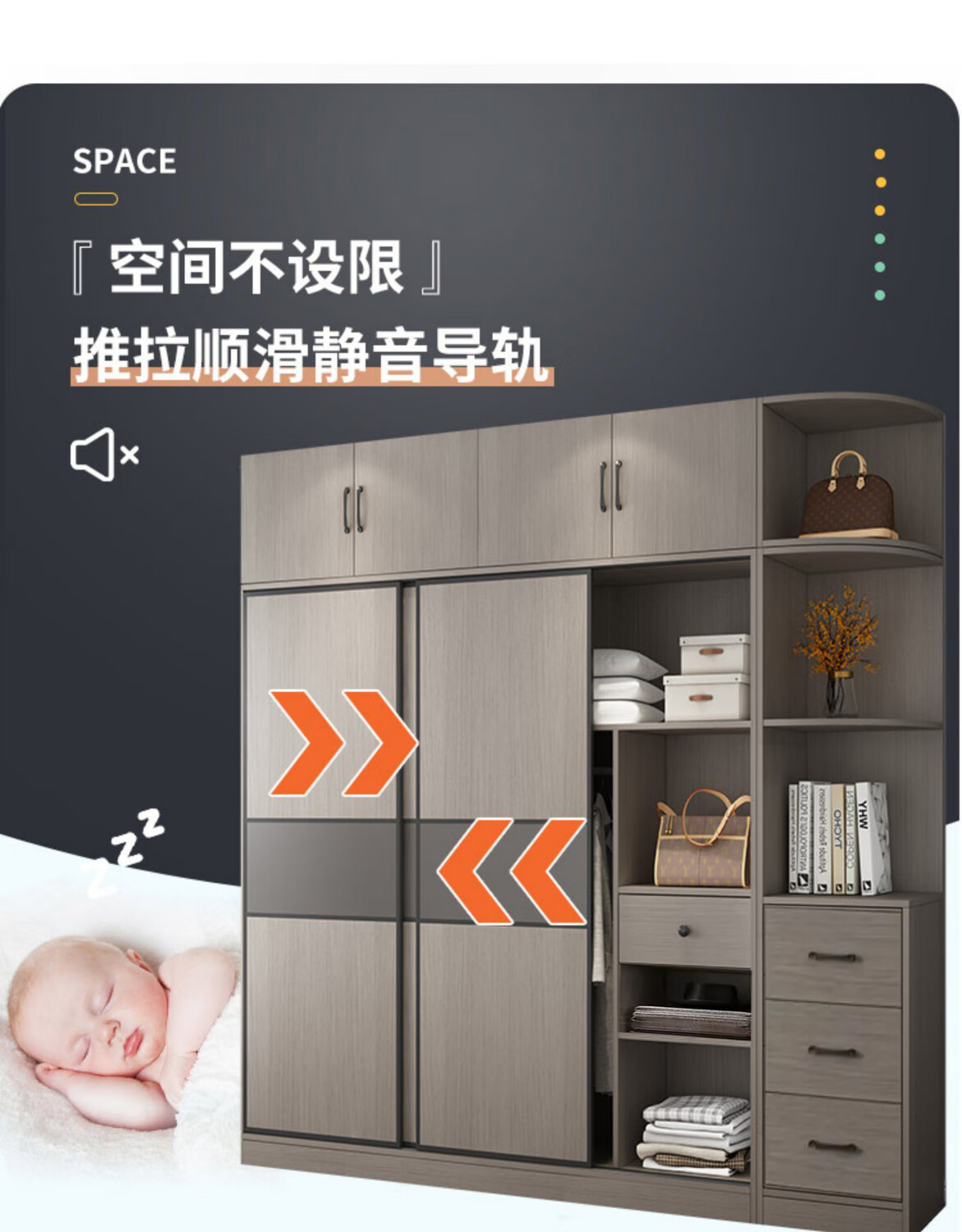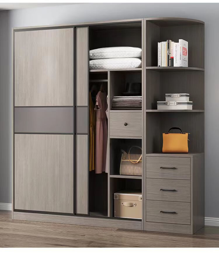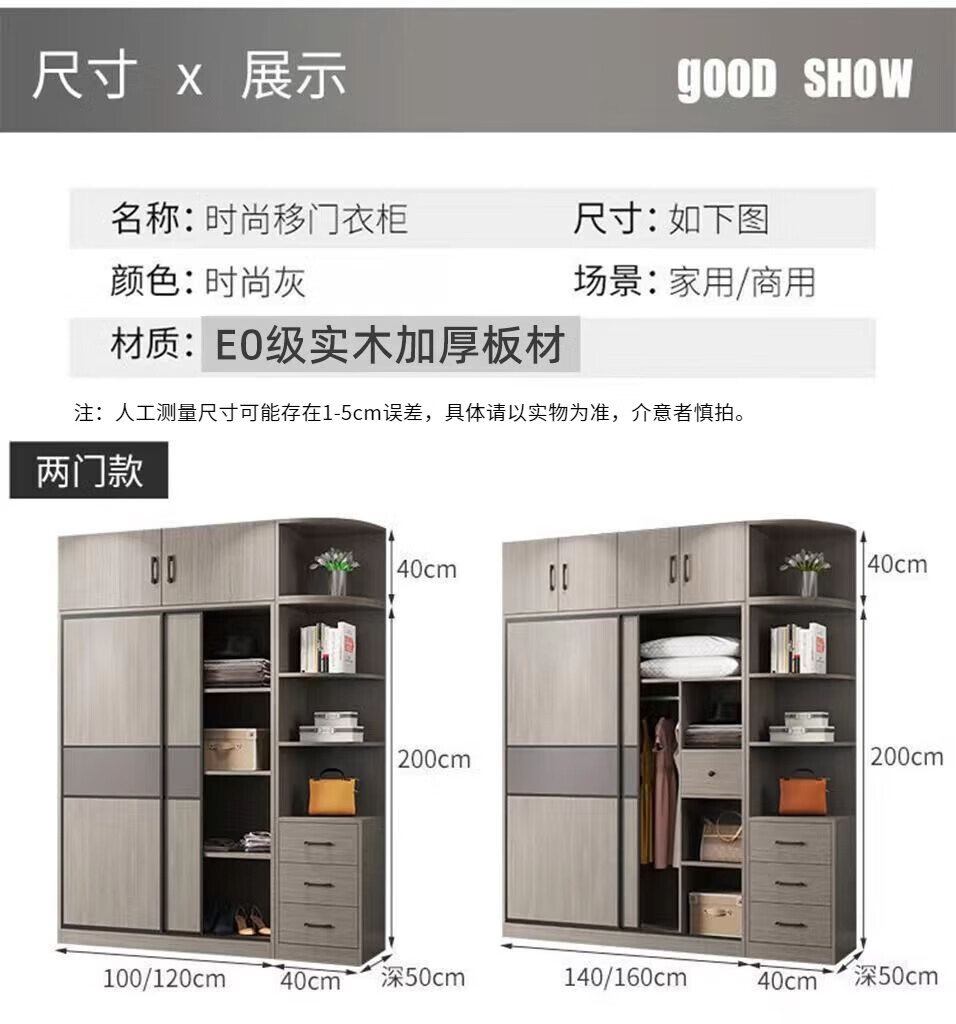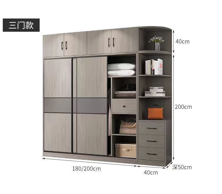 布卡格2025新款木推拉门衣柜家用卧室组装小户型出租房用实木收纳衣橱 送货入户[升级加厚] 100单柜[升级板材]